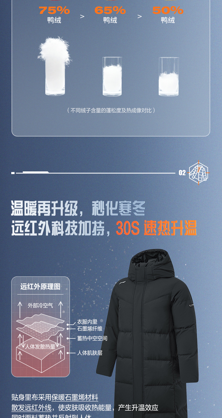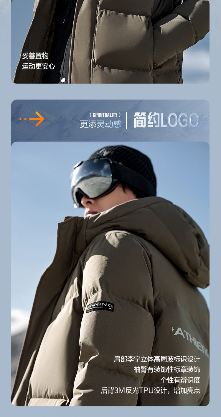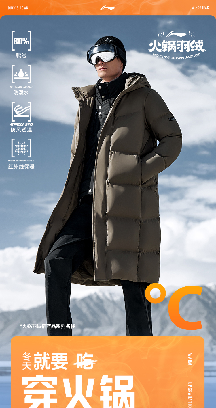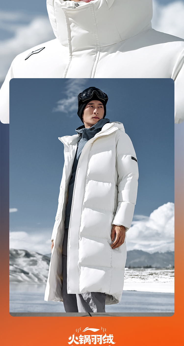 Li Ning Hot Pot Down jacket Men Long Water-repellent Winter New arrival Hooded Heattech Duck Down thickened Sports Outwear