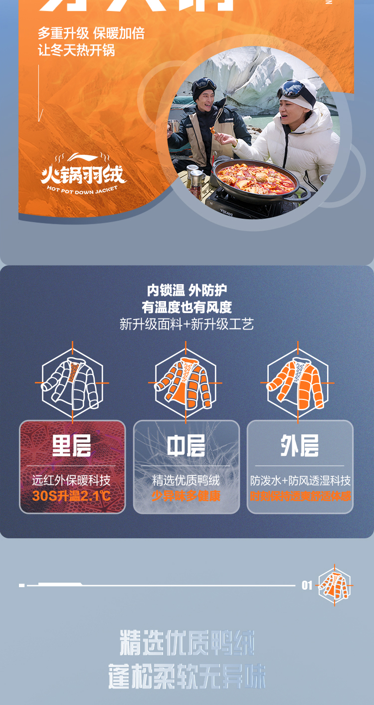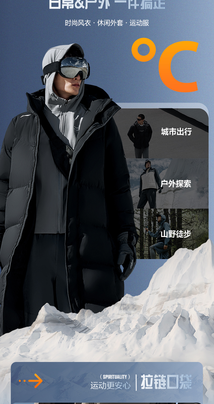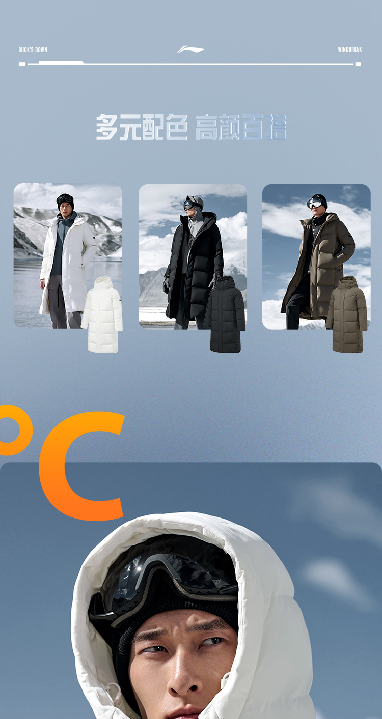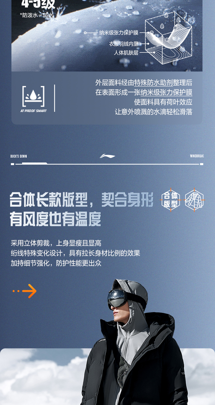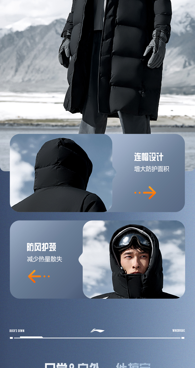 Li Ning Hot Pot Down jacket Men Long Water-repellent Winter New arrival Hooded Heattech Duck Down thickened Sports Outwear