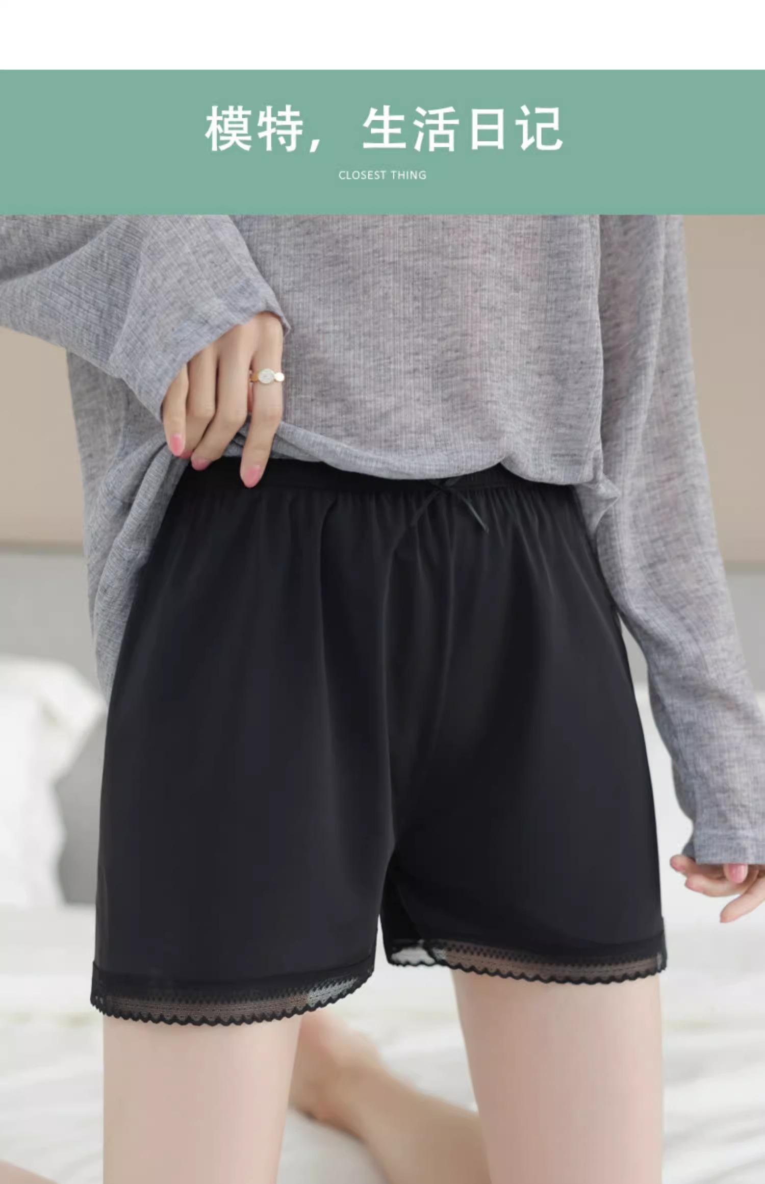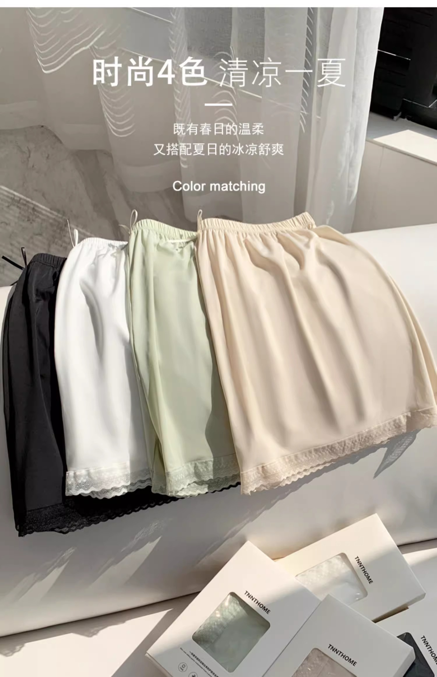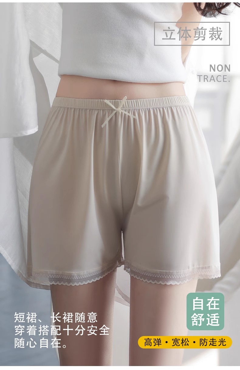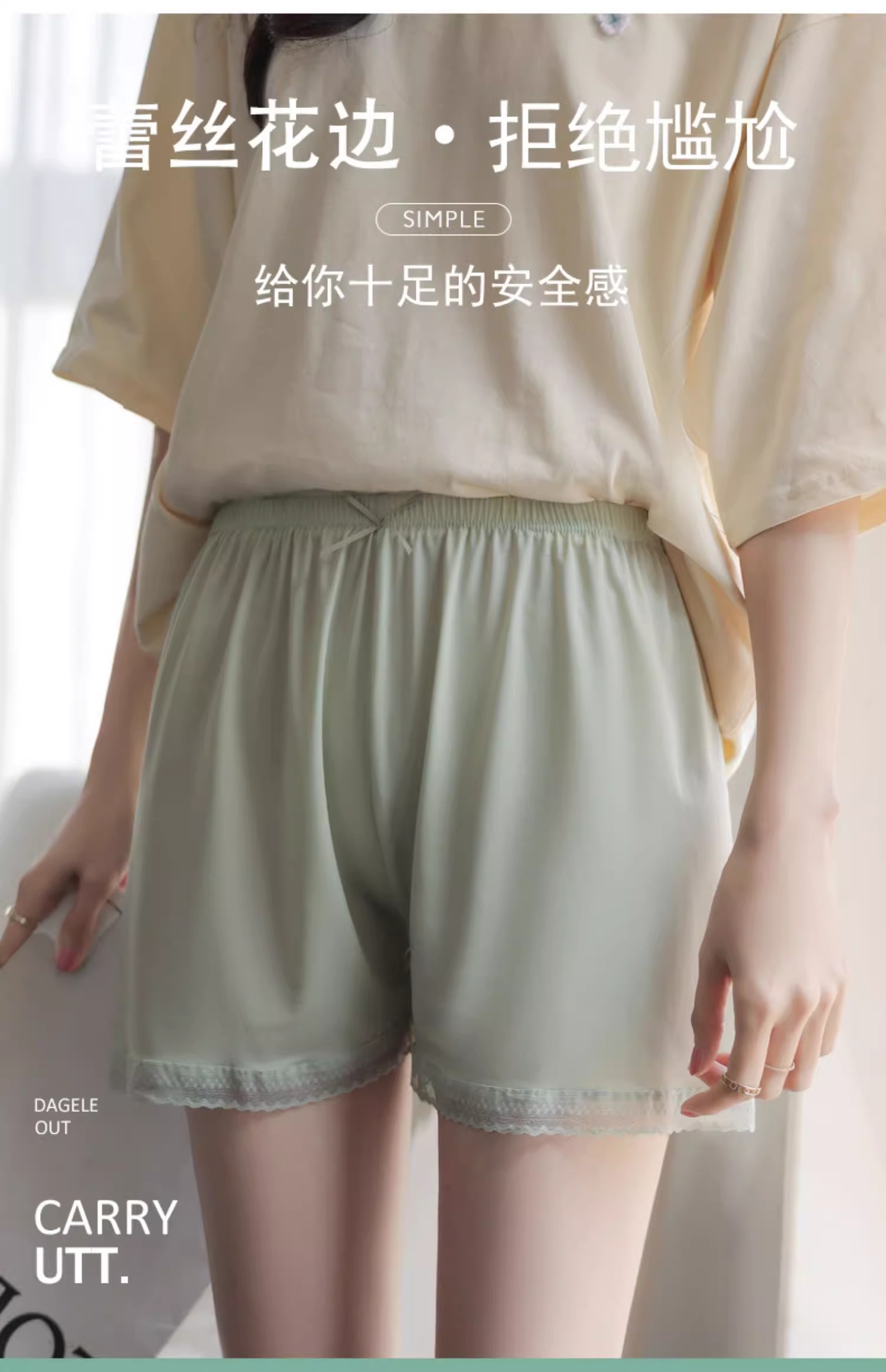 Ice Silk Safety Shorts for Women, Summer Thin Style, Can Be Worn Outside, Lace Loose Safety Shorts, Anti-Exposure, Non-Curling, Base Shorts