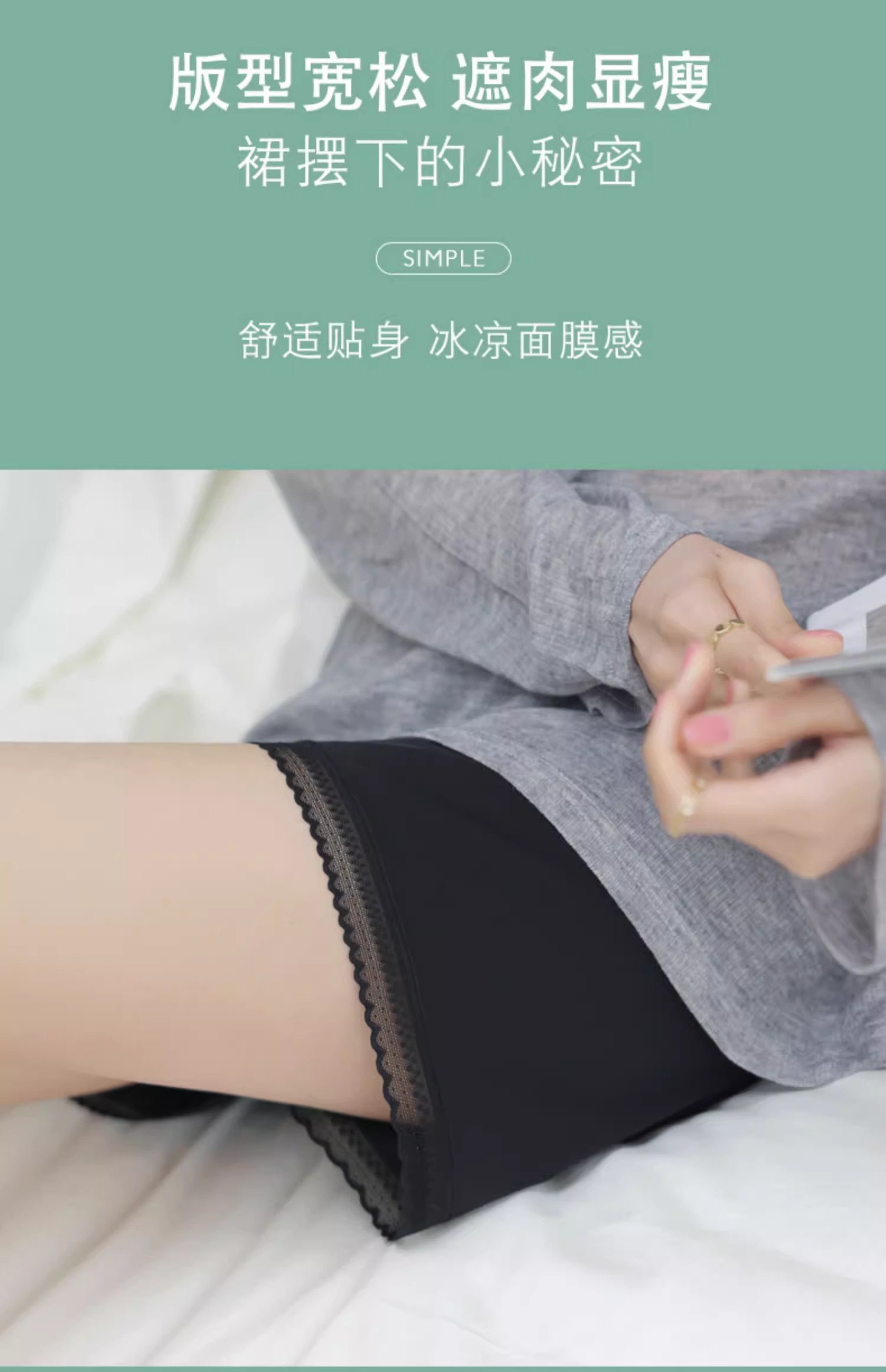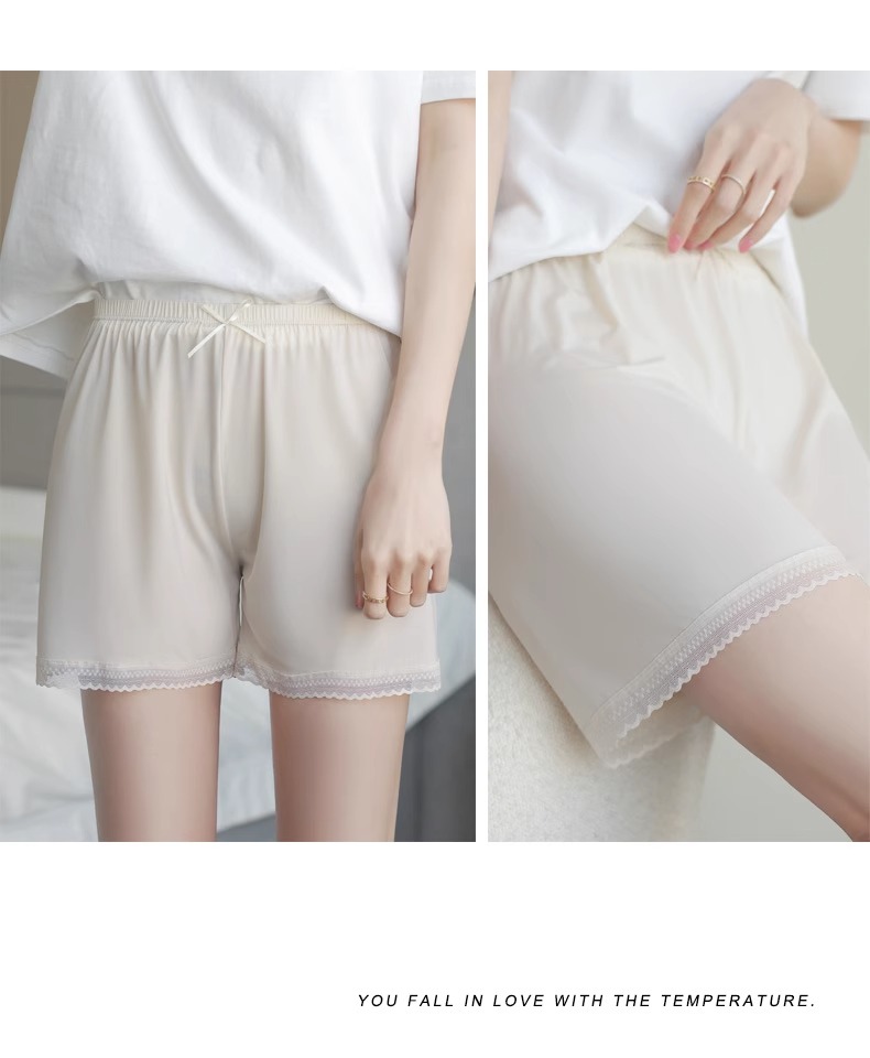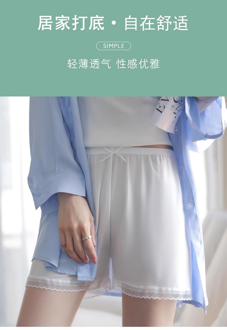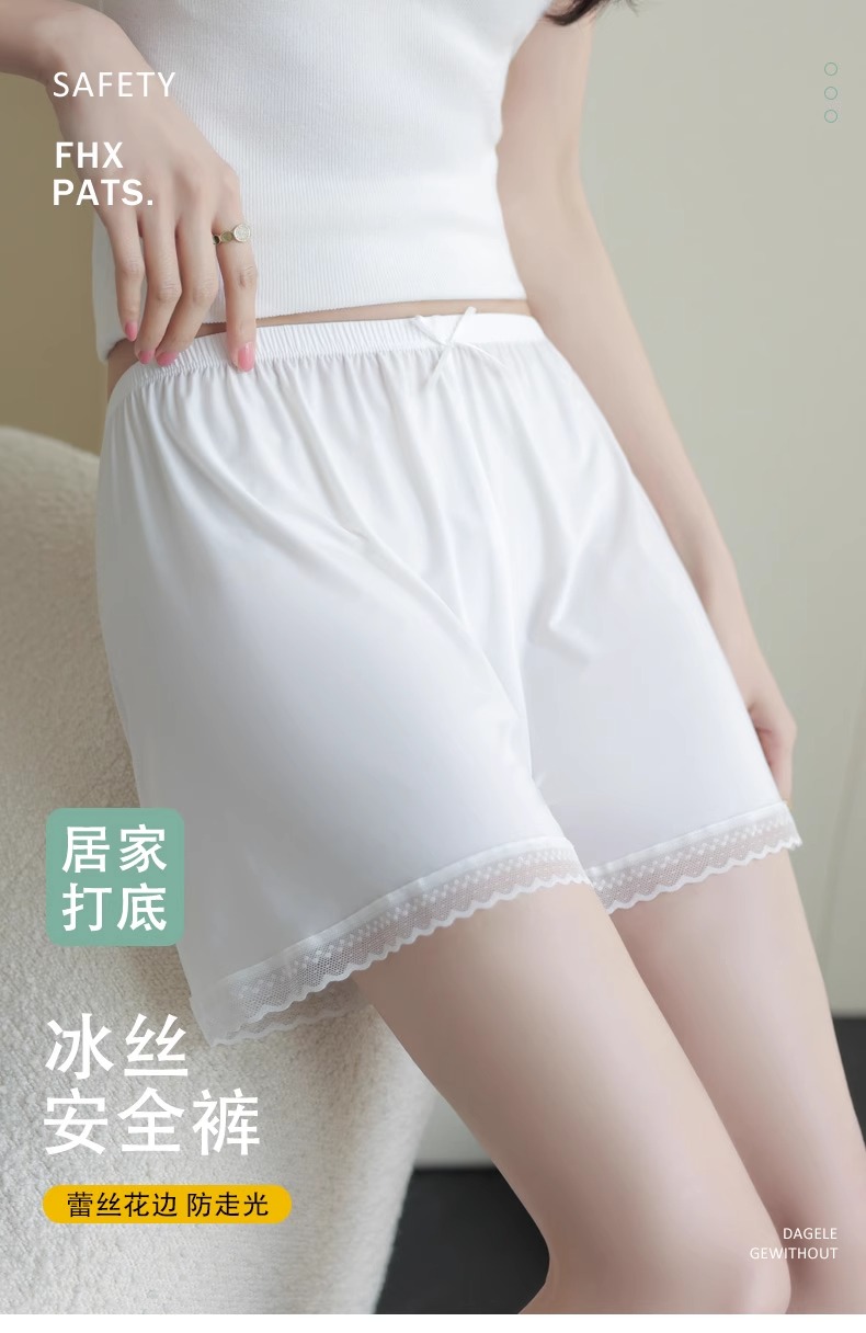 Ice Silk Safety Shorts for Women, Summer Thin Style, Can Be Worn Outside, Lace Loose Safety Shorts, Anti-Exposure, Non-Curling, Base Shorts