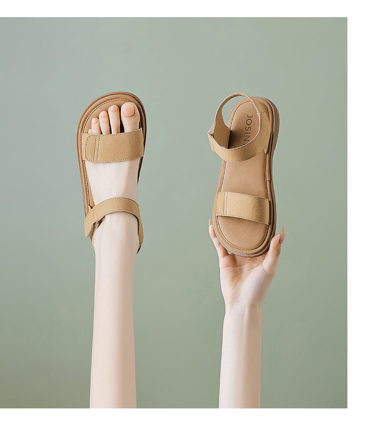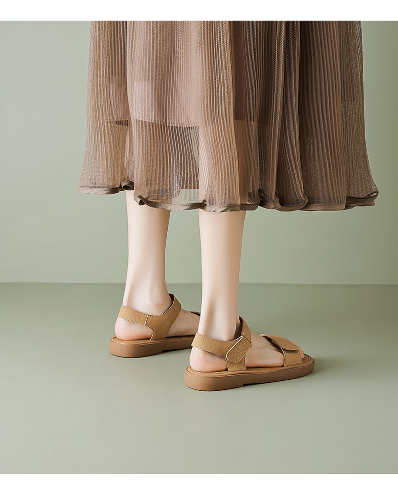 Zhuoshini Flat Sandals for Women 2025 New Summer Velcro Beach Shoes Soft Sole Non-Slip Maternity Shoes for Mothers