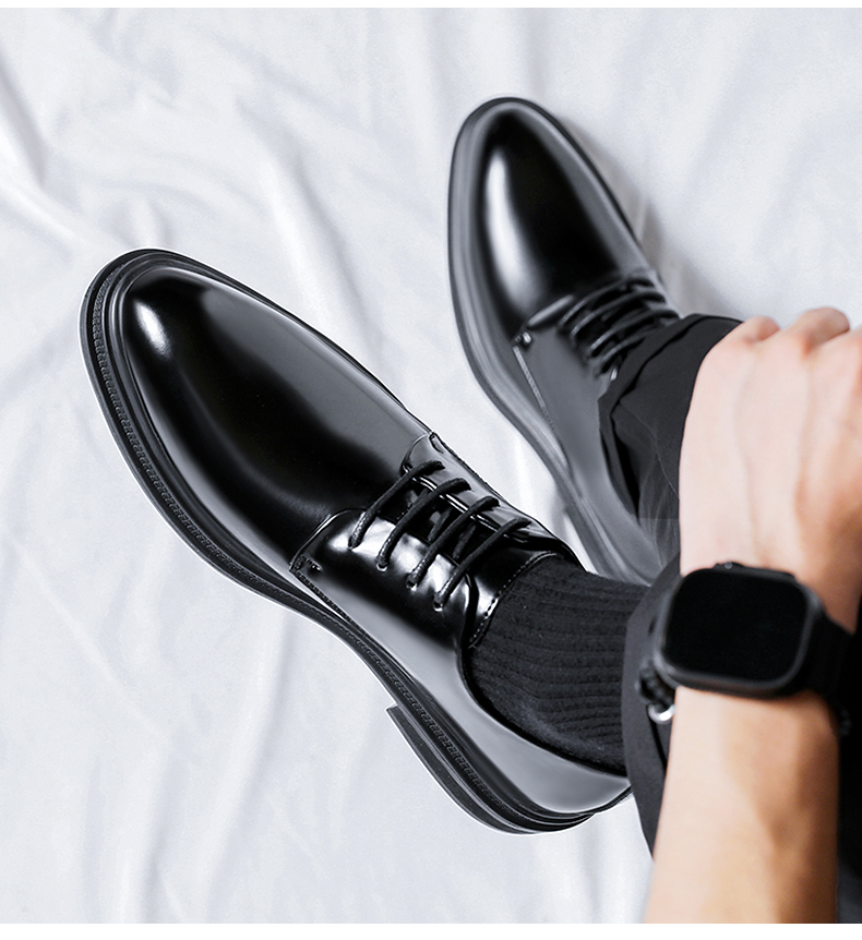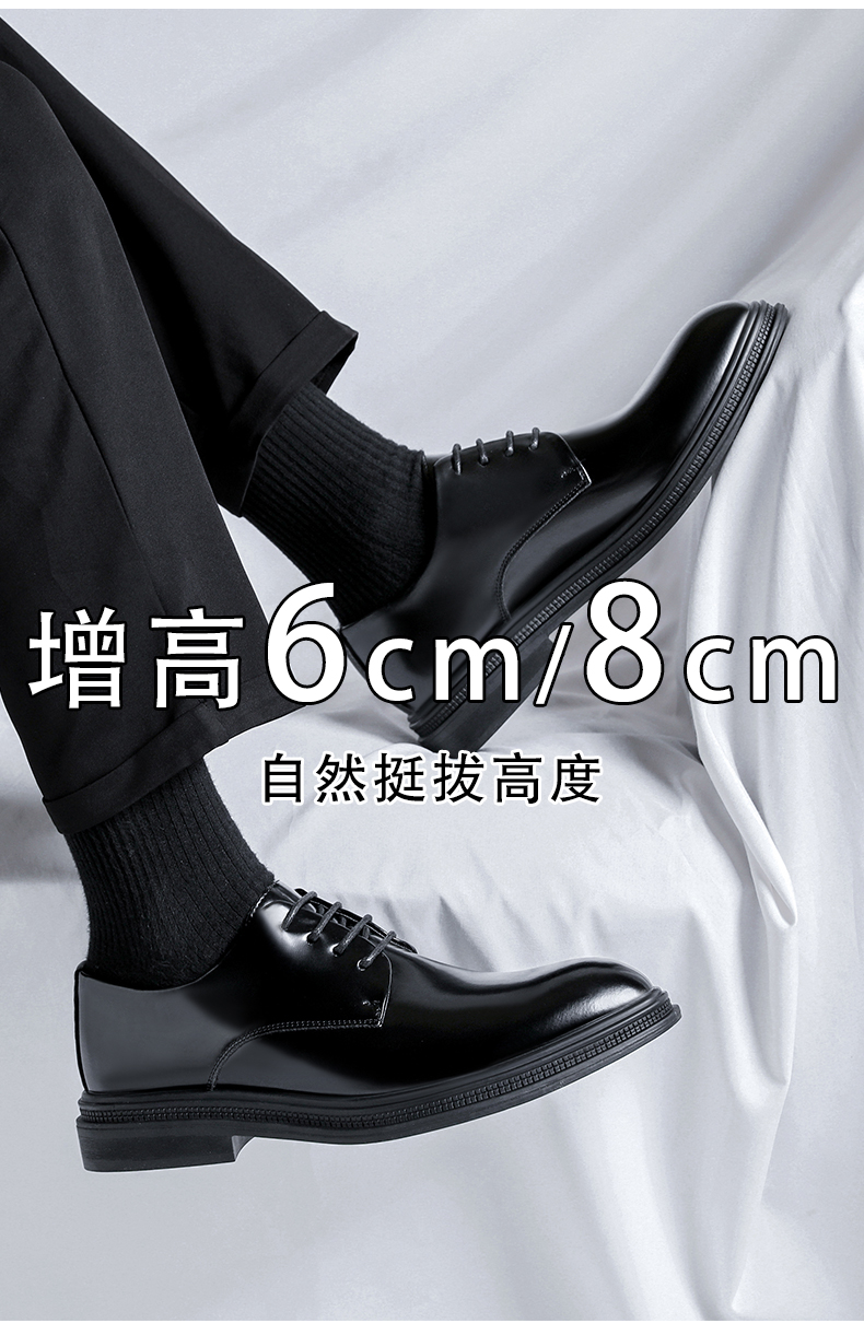 Men's Height-Increasing Leather Shoes 8cm Business Formal Invisible Height-Increasing Shoes Men's Genuine Leather Pointed Toe Groom Wedding Shoes