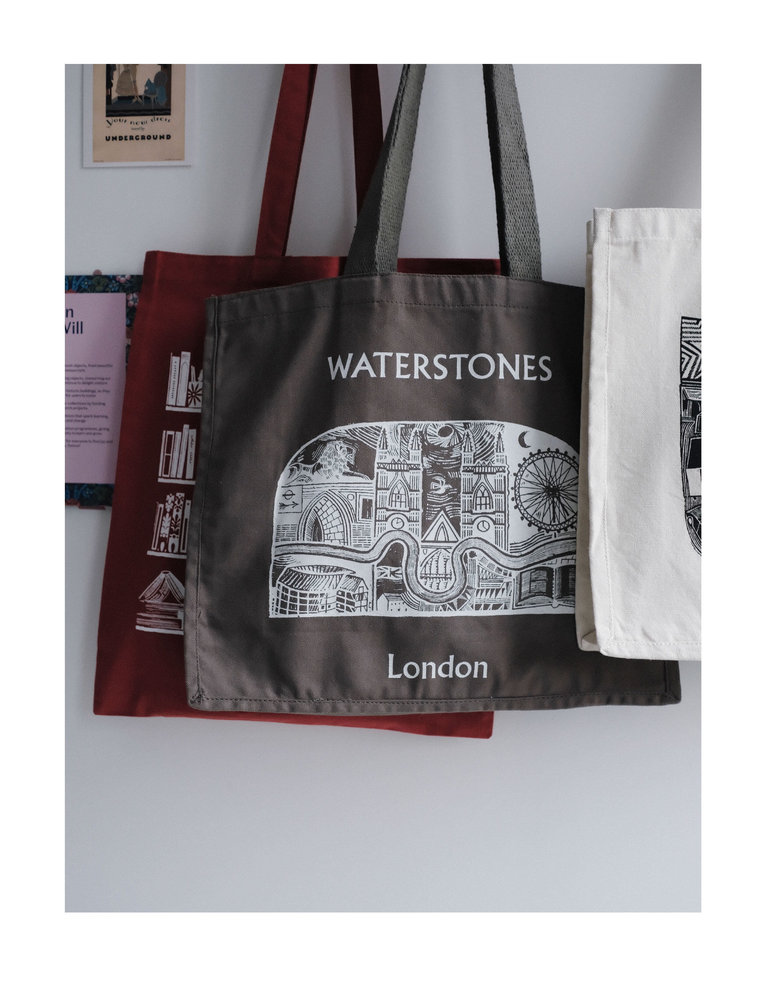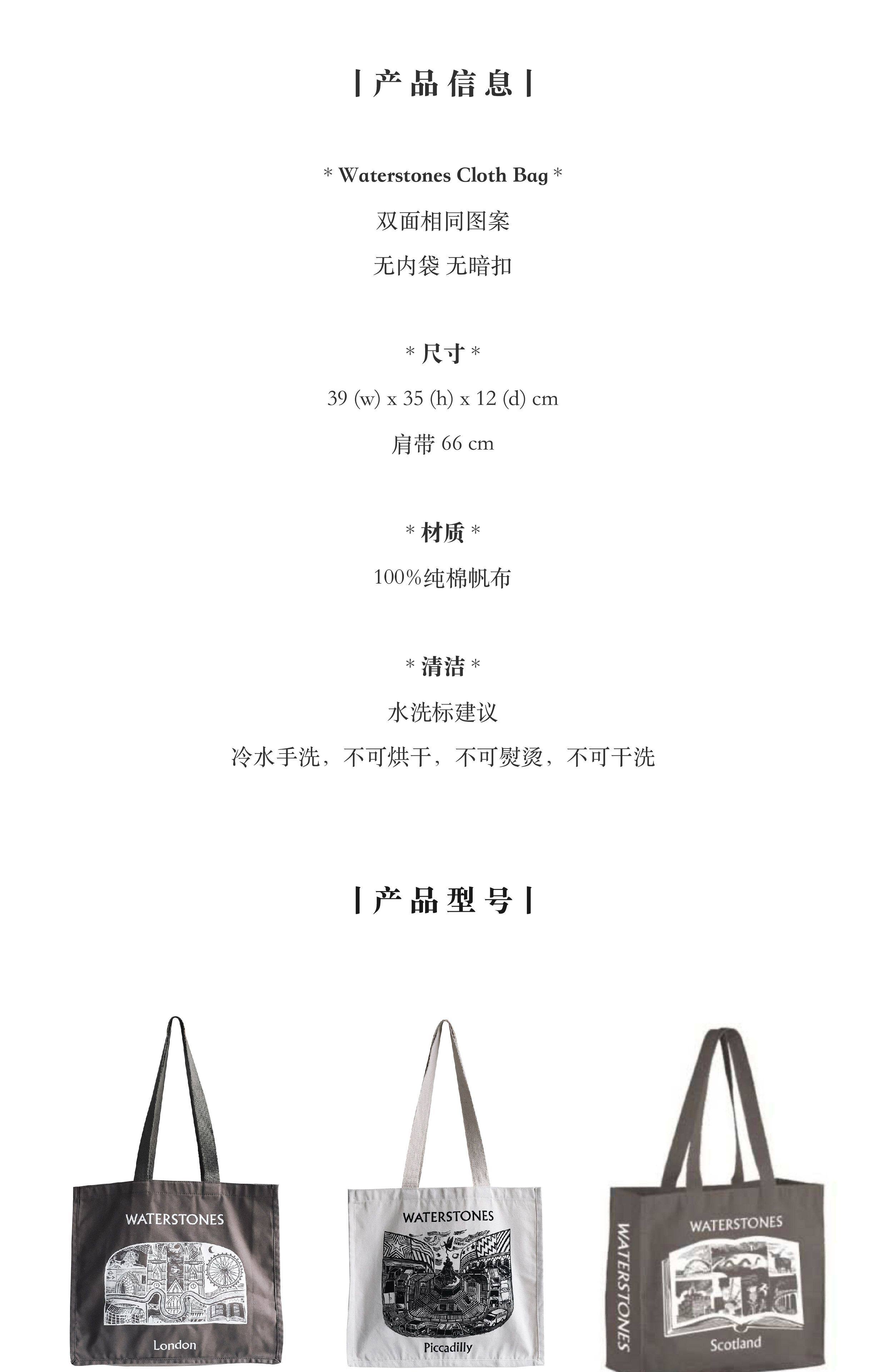 Authentic in Stock|Waterstones Uk Waterstones Bookstore London Series Classic Canvas Bag Illustrations