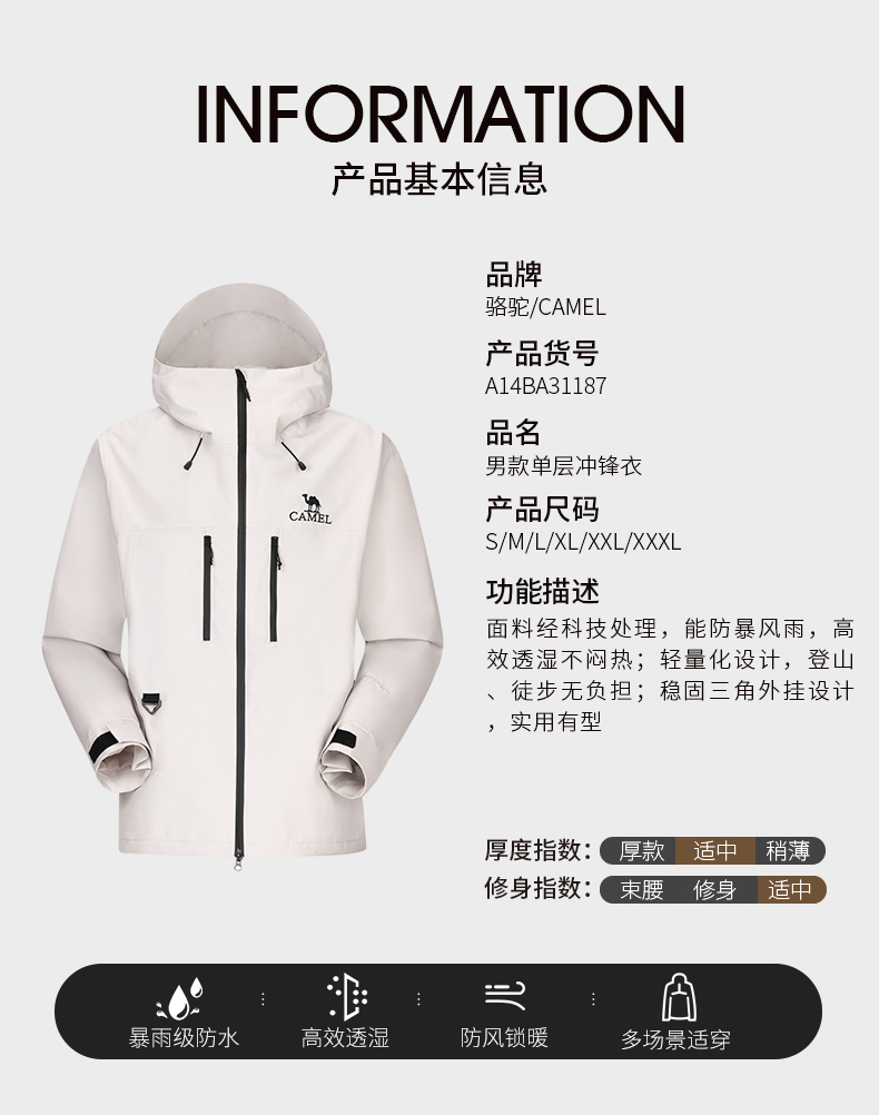 温馨提示,A14BA31187/A14BA31187C 与A24BA31188/A24BA31188A A24BA31188C/A24BA31188B 是情侣款单层冲锋衣,因批次不同,仓库随机发货,骆驼粉丝们介意慎拍!祝骆驼粉丝们购物愉快!~~