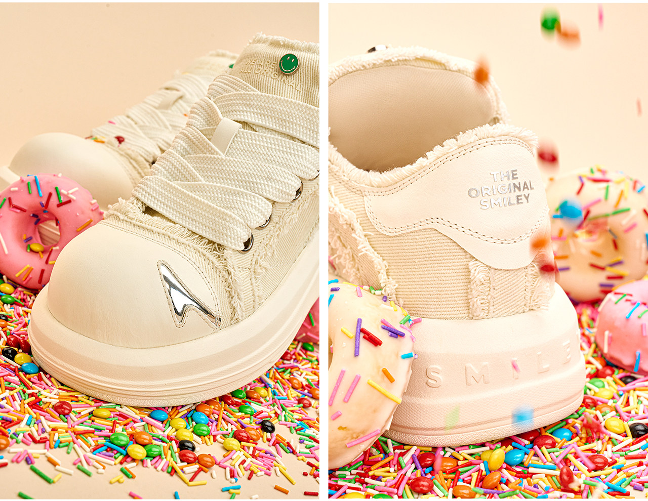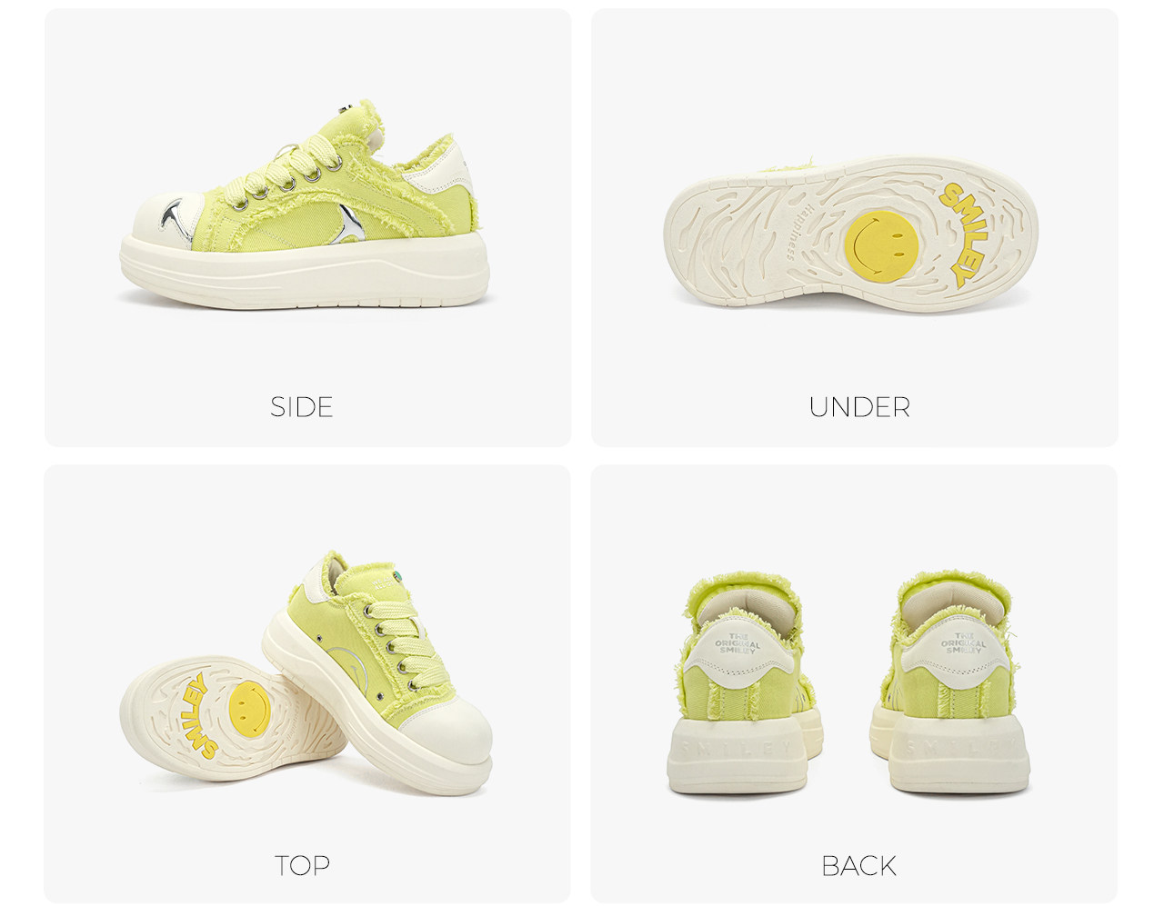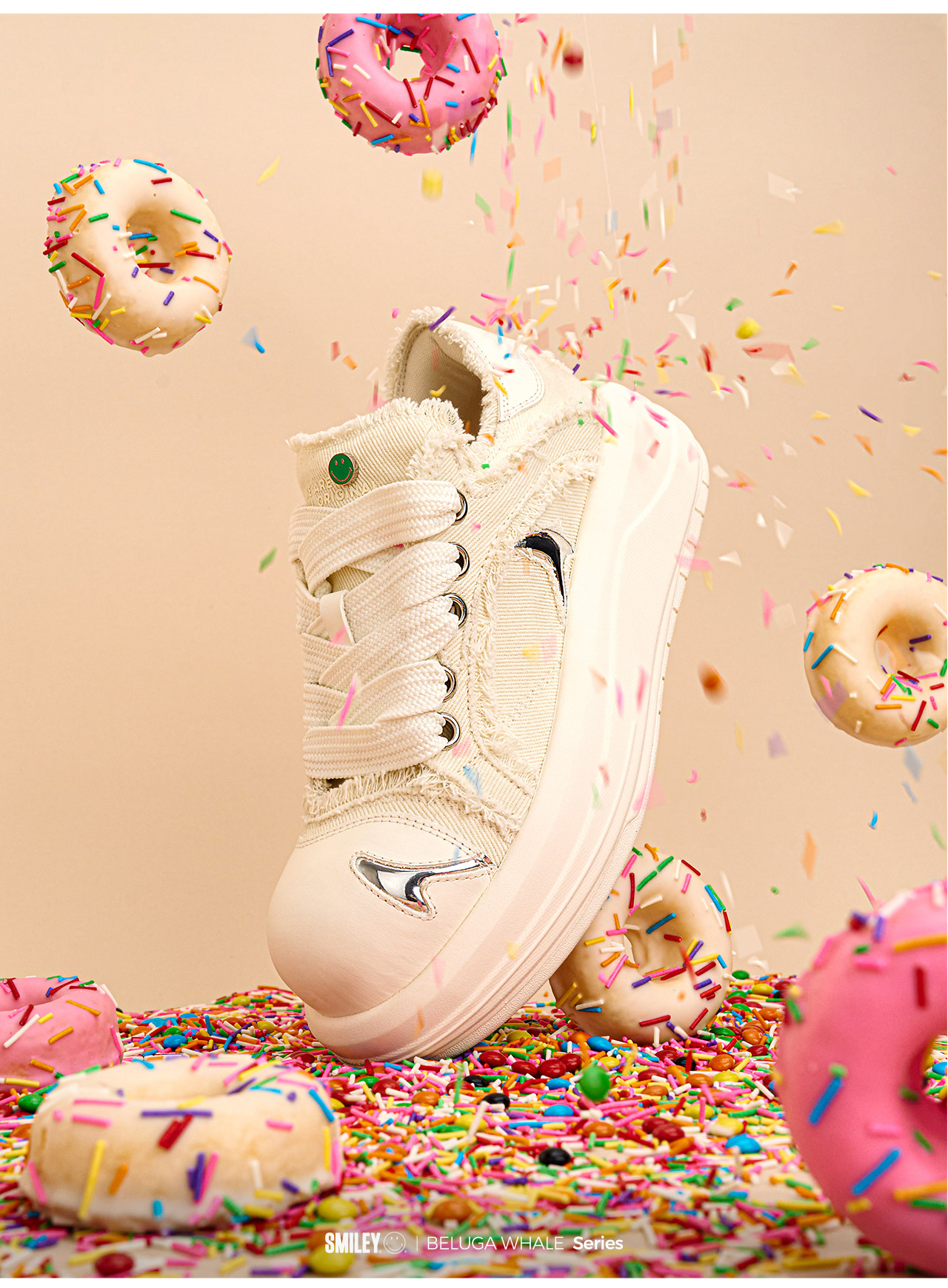 [Same Style as He Jiong] Smiley Smiling White Whale White Couple's Thick-Soled Height-Increasing Casual Canvas Sneakers for Men and Women