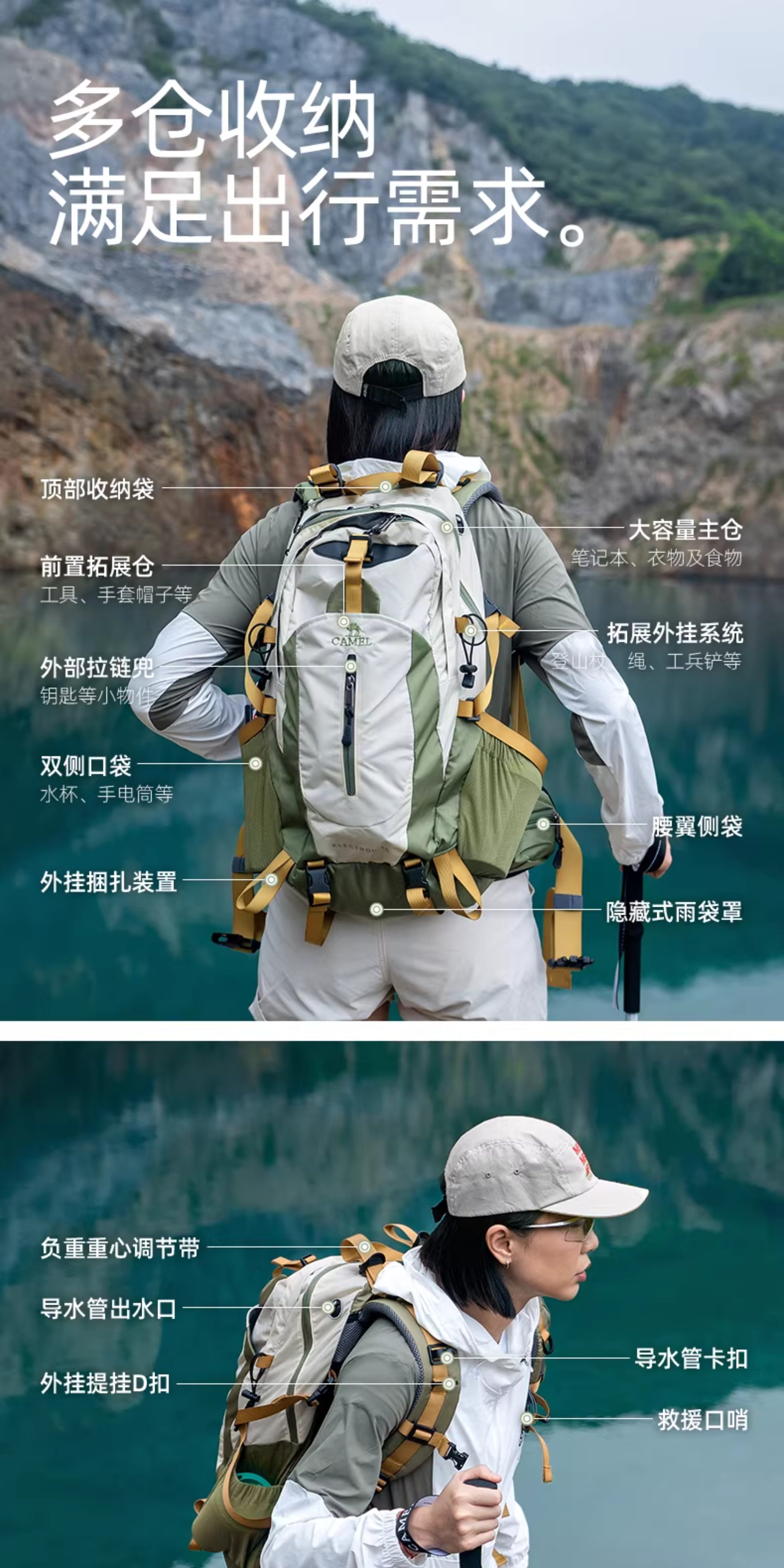 Camel Large-Capacity Outdoor Lightweight Mountaineering Bag Professional Hiking Equipment Women's Hiking Sports Travel Backpack Backpack