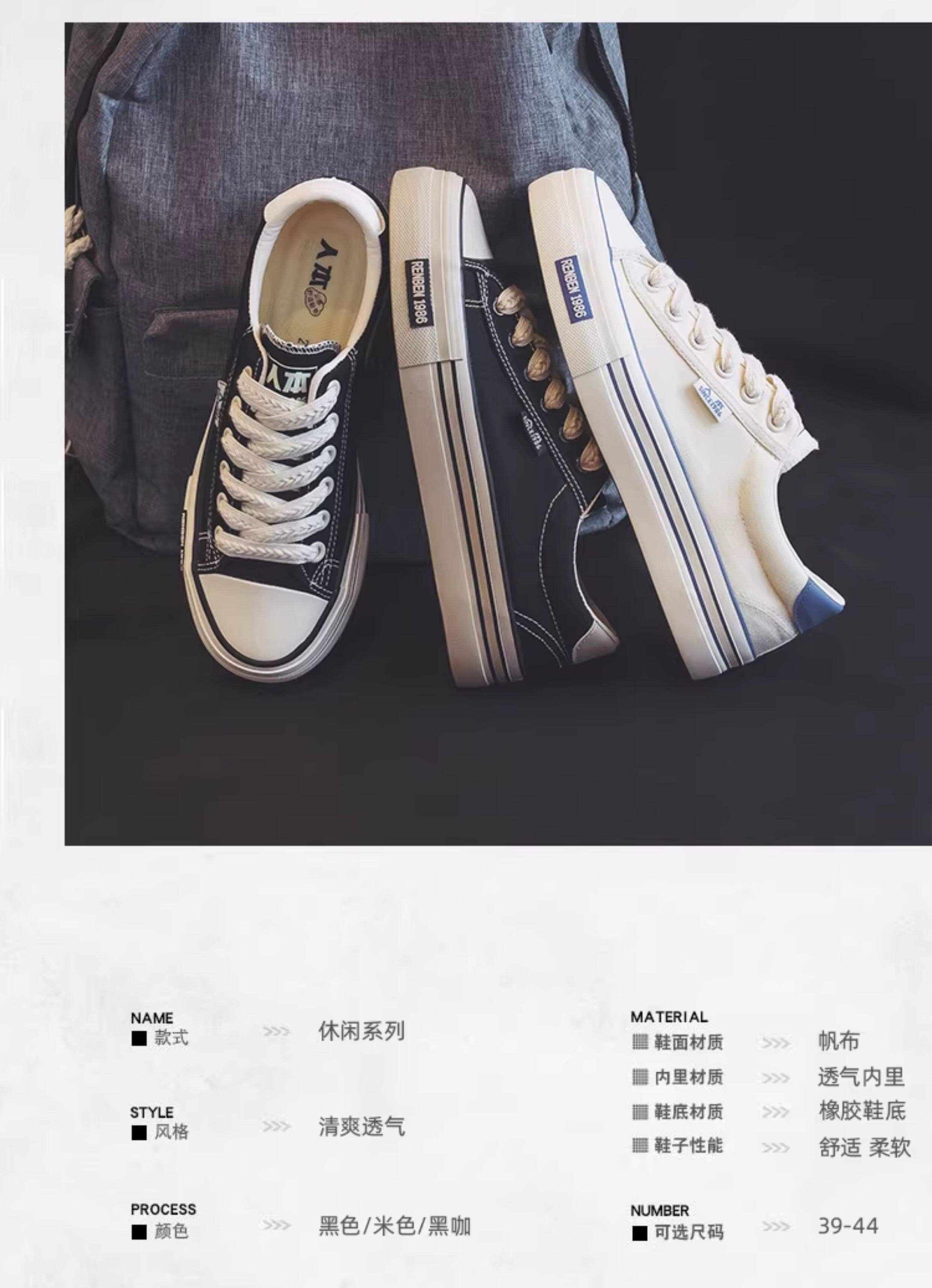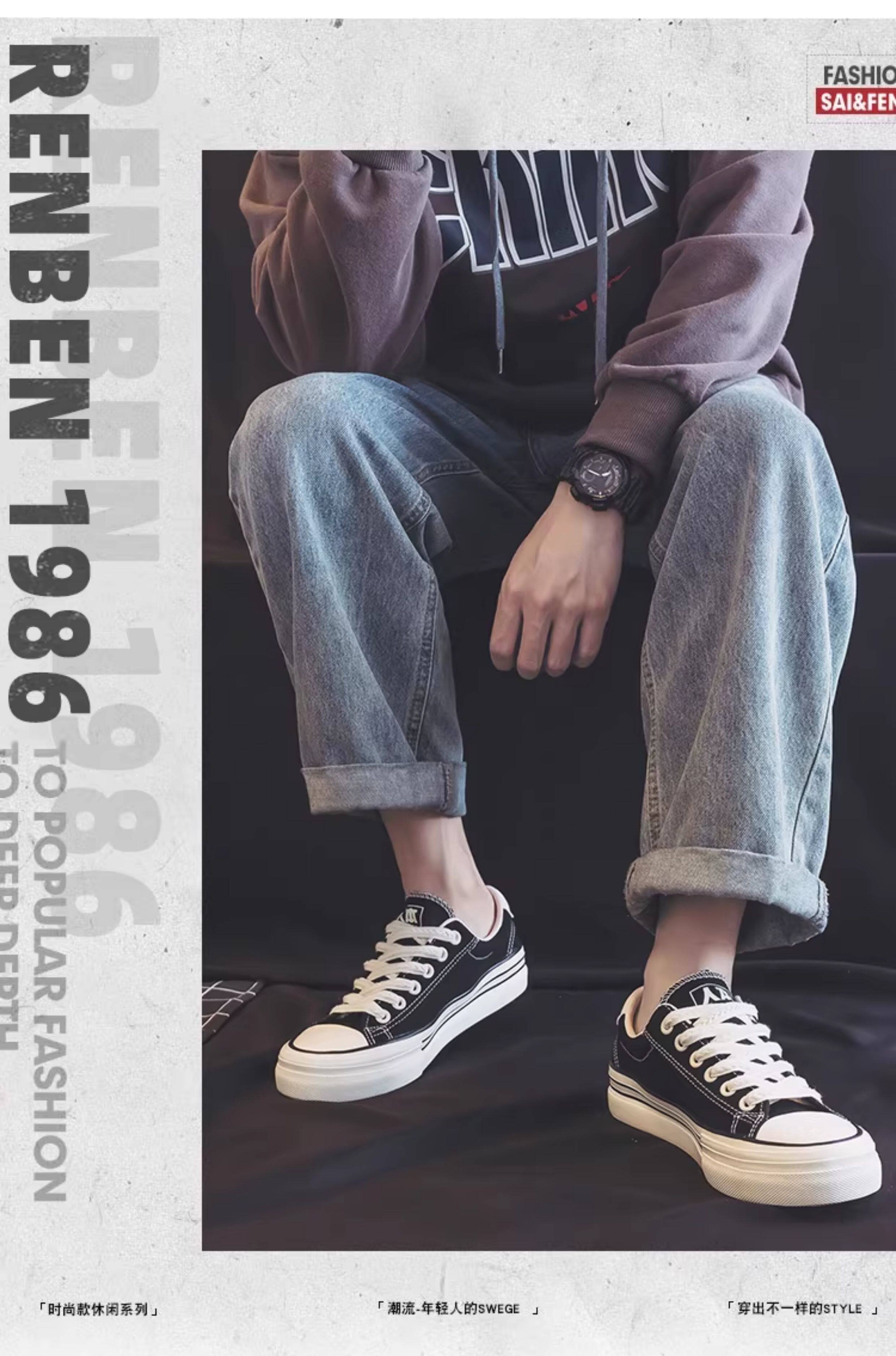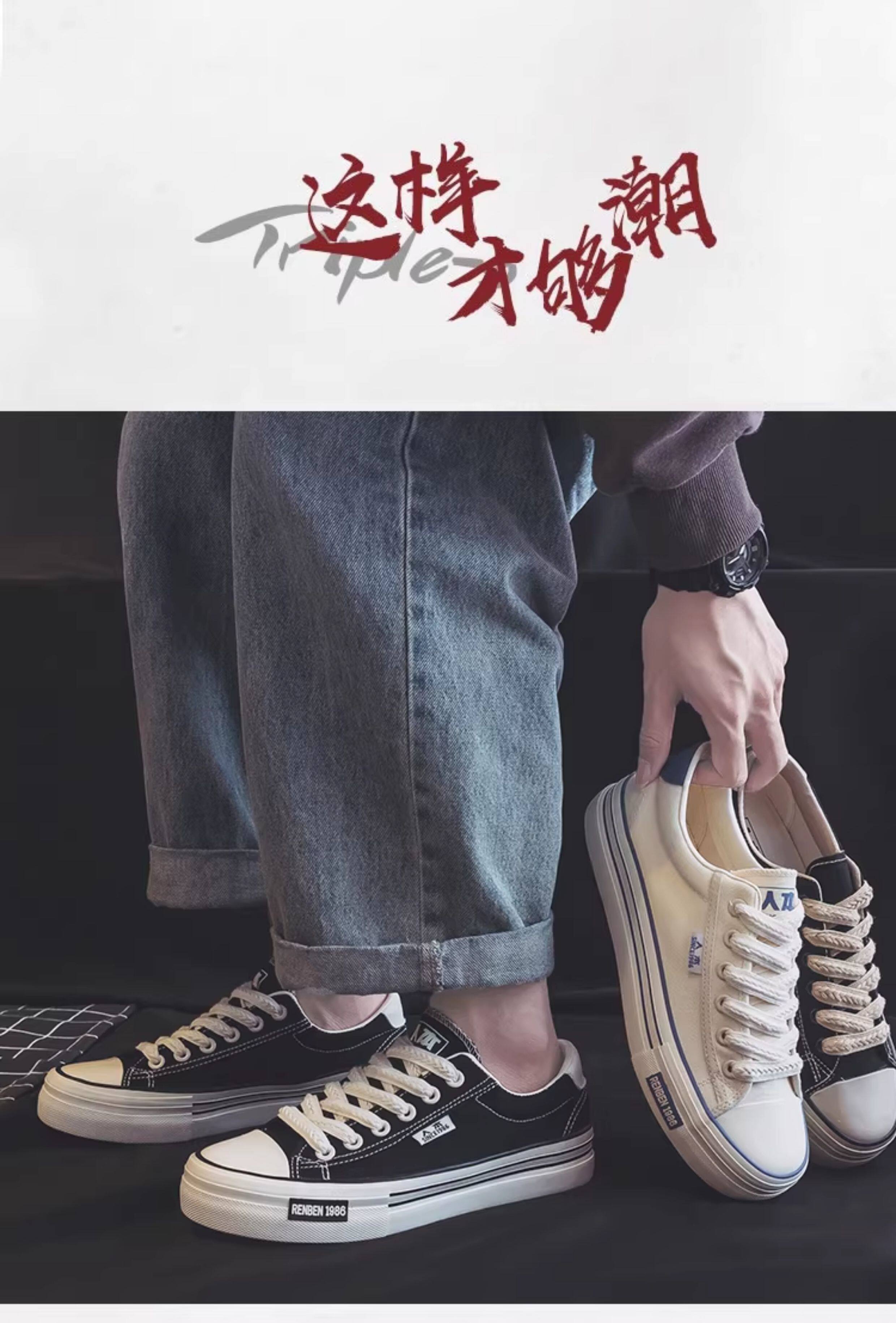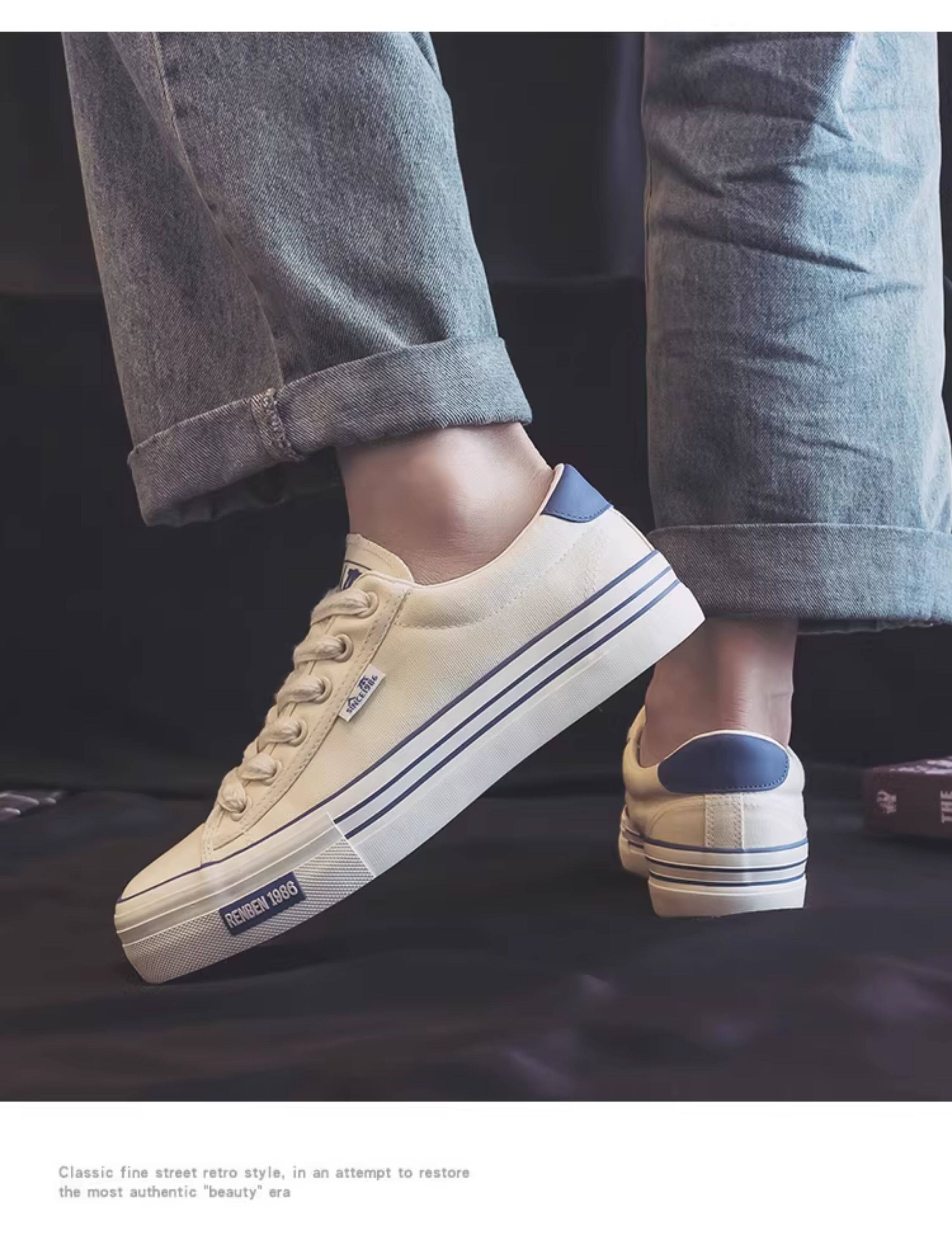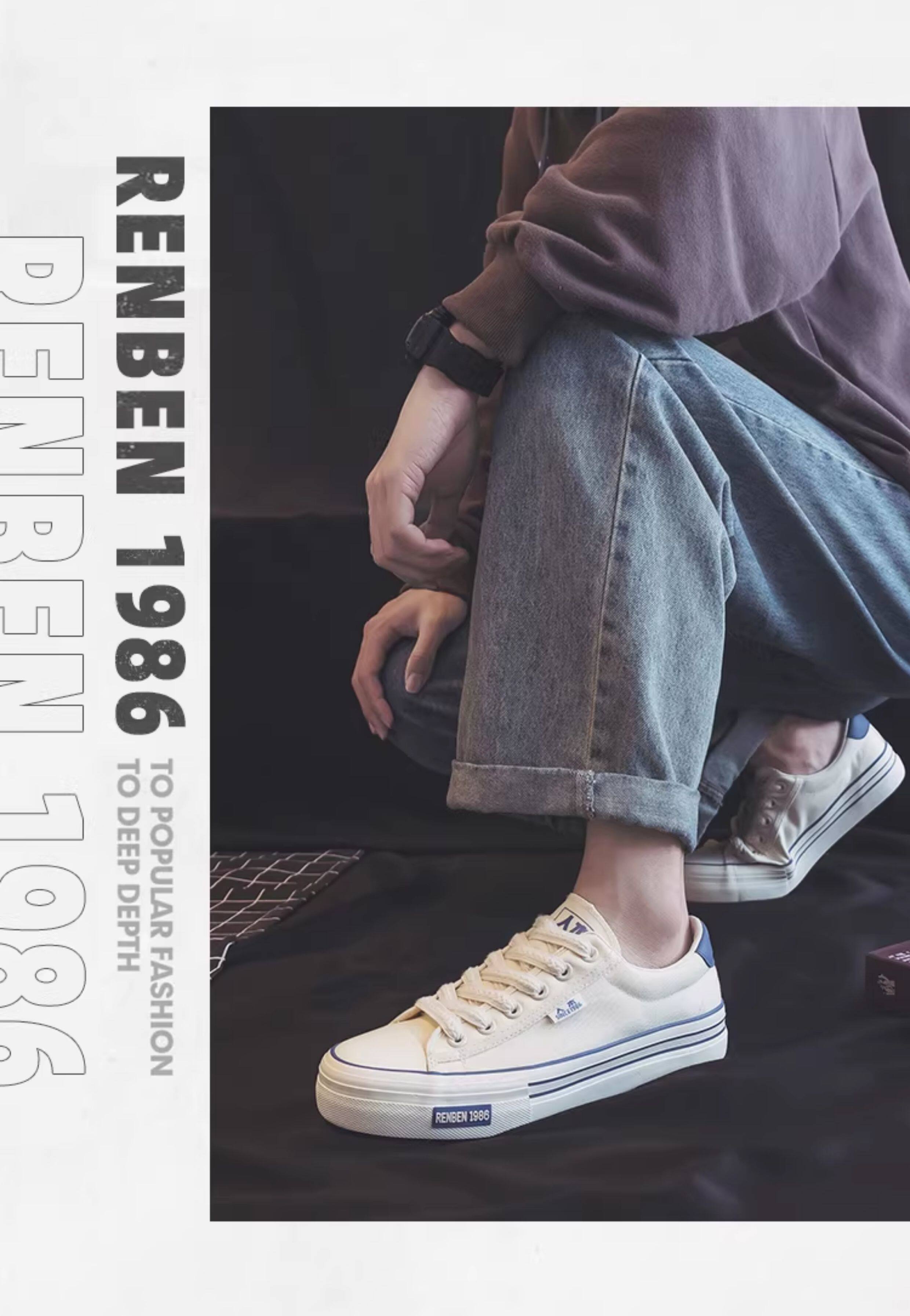 Renben 2026 Spring New Vintage Canvas Shoes Men's Casual Versatile Classic Sneakers Korean Style Trendy Couple Men's Shoes