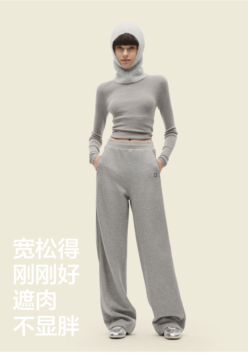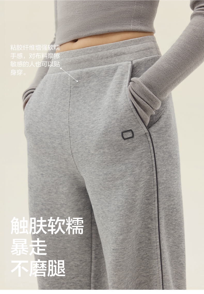 【Liu Hao Cun's Same Style】Jiao Nei 505 Regular Women's Five-Layer Sandwich Banana Sweatpants with Curved Hem and Fleece Lining