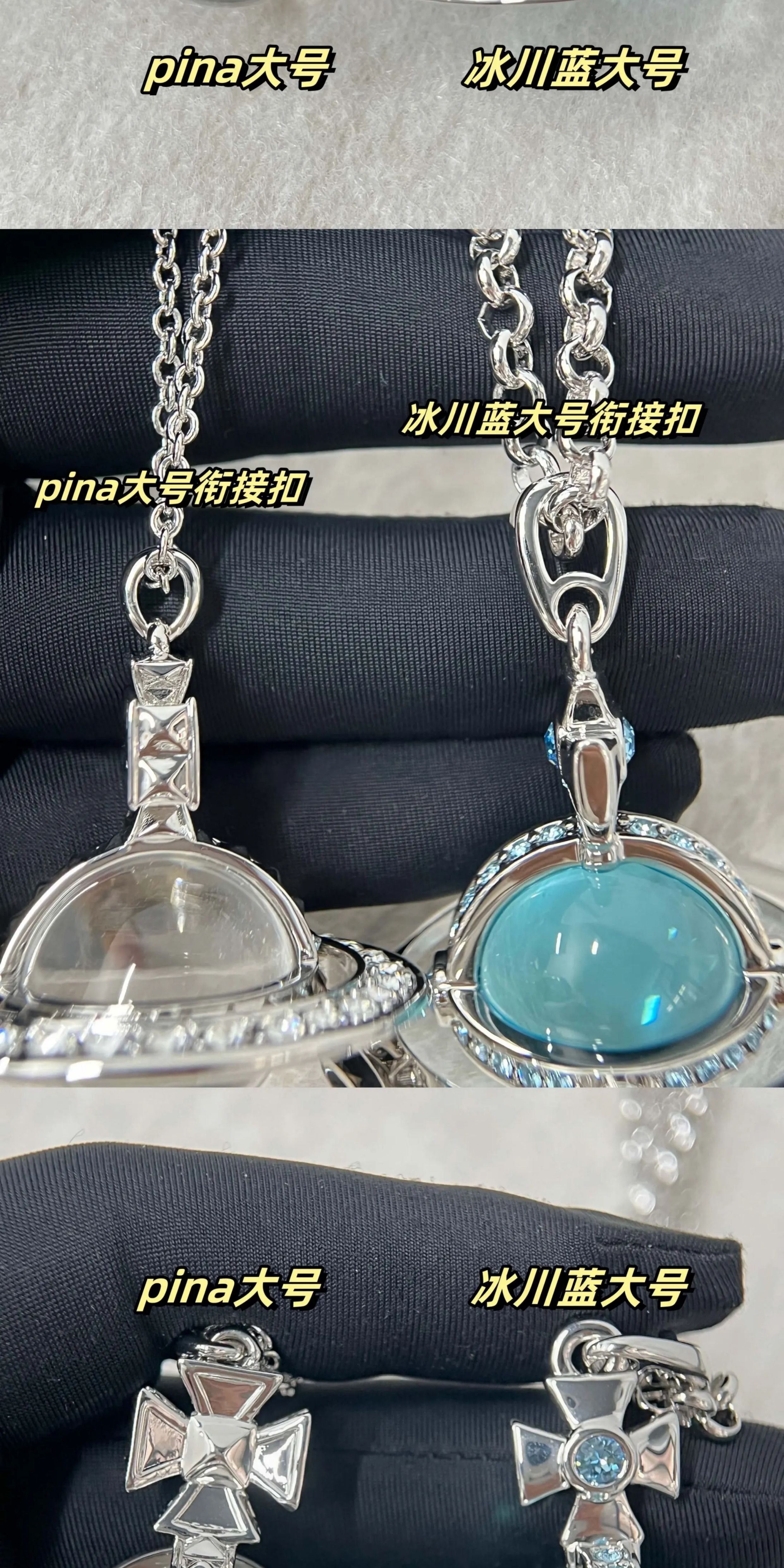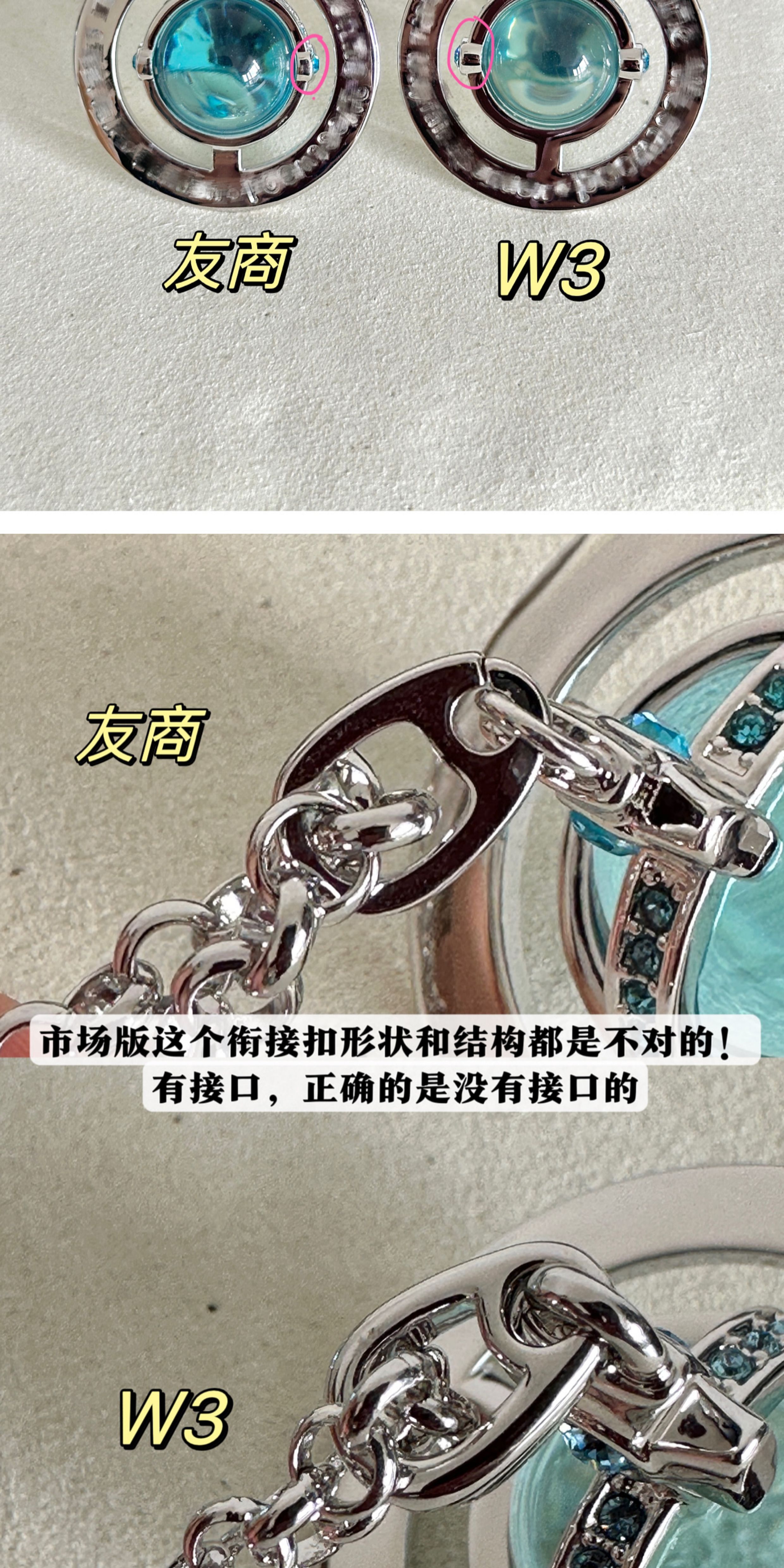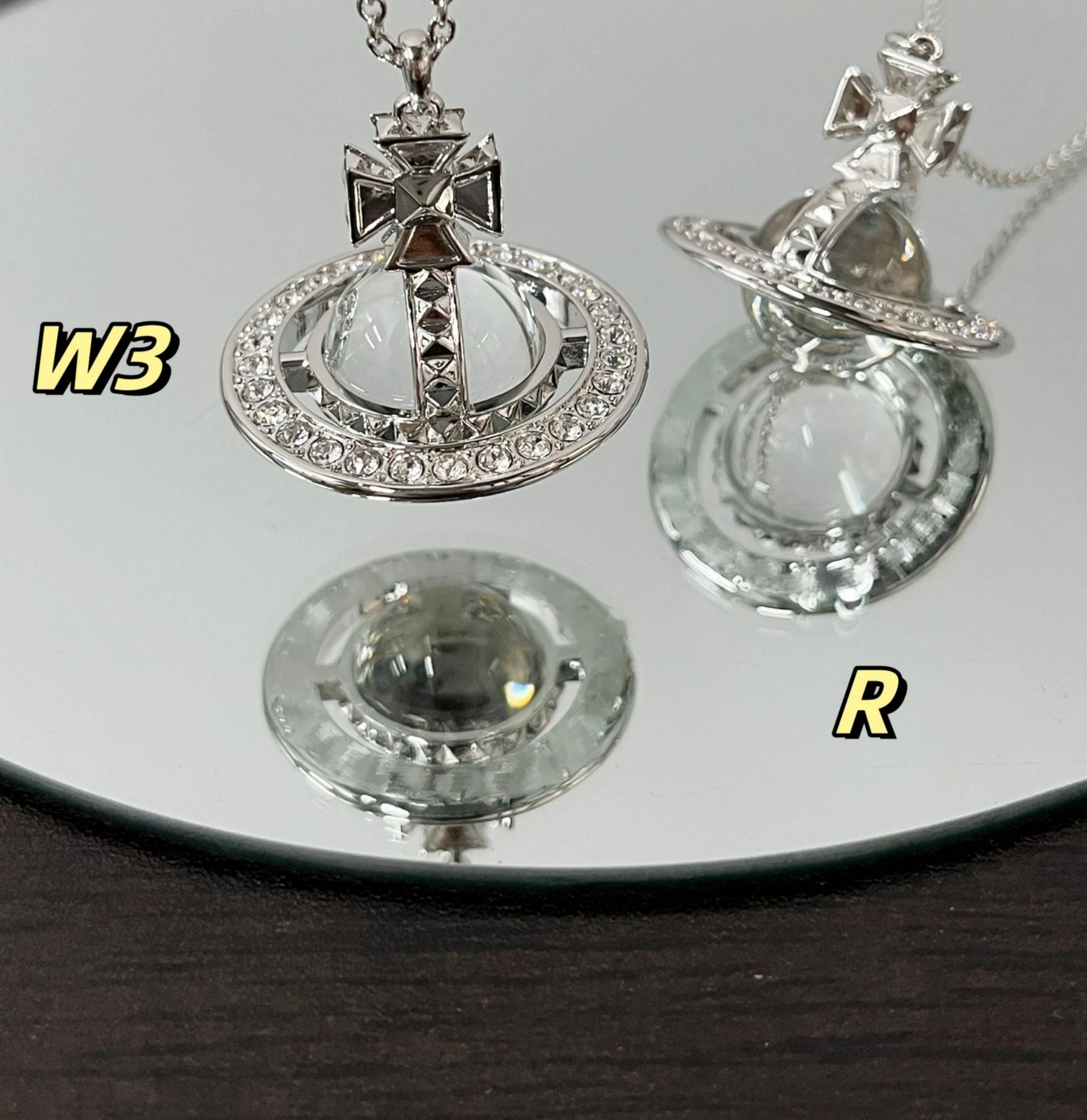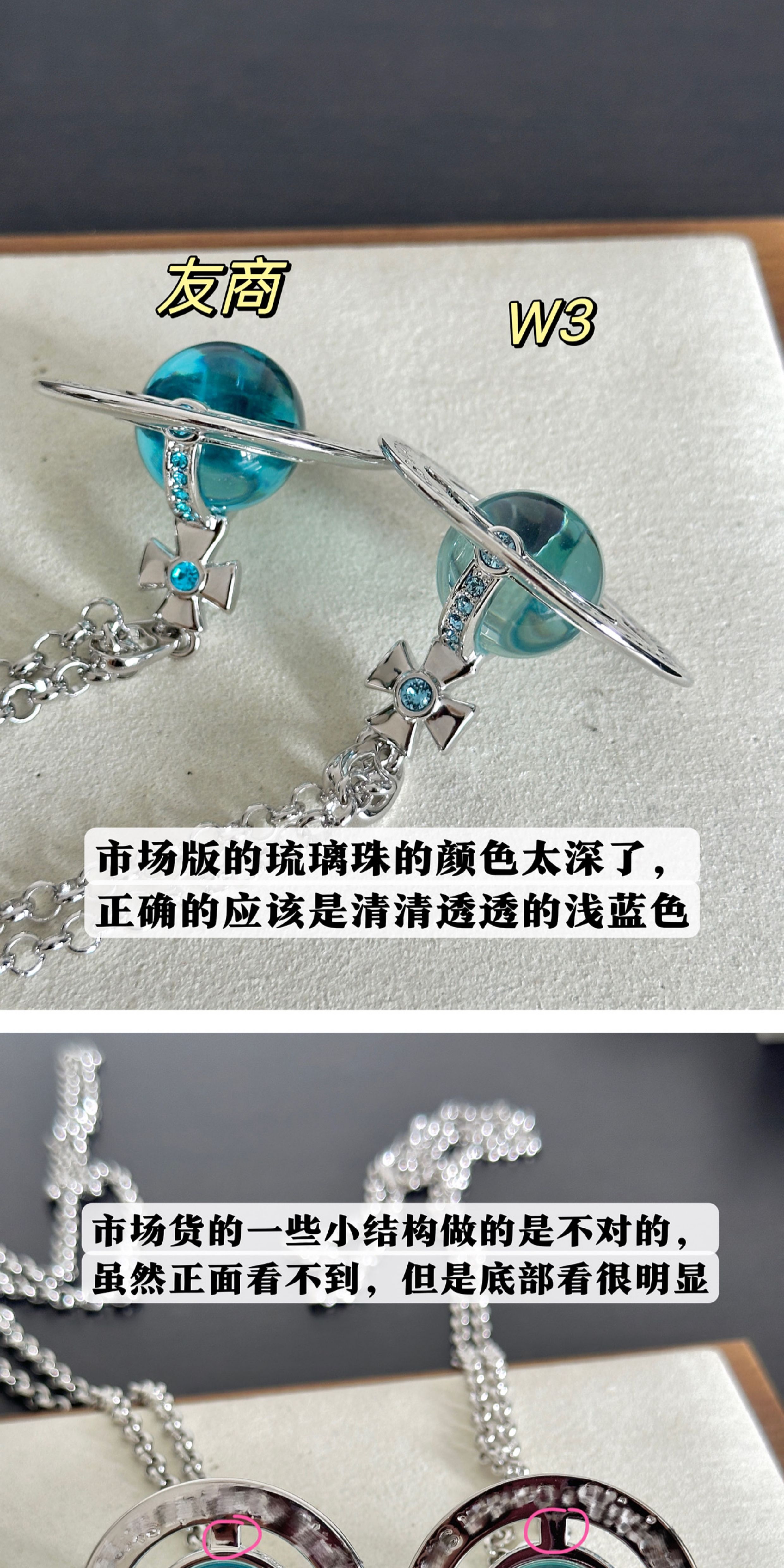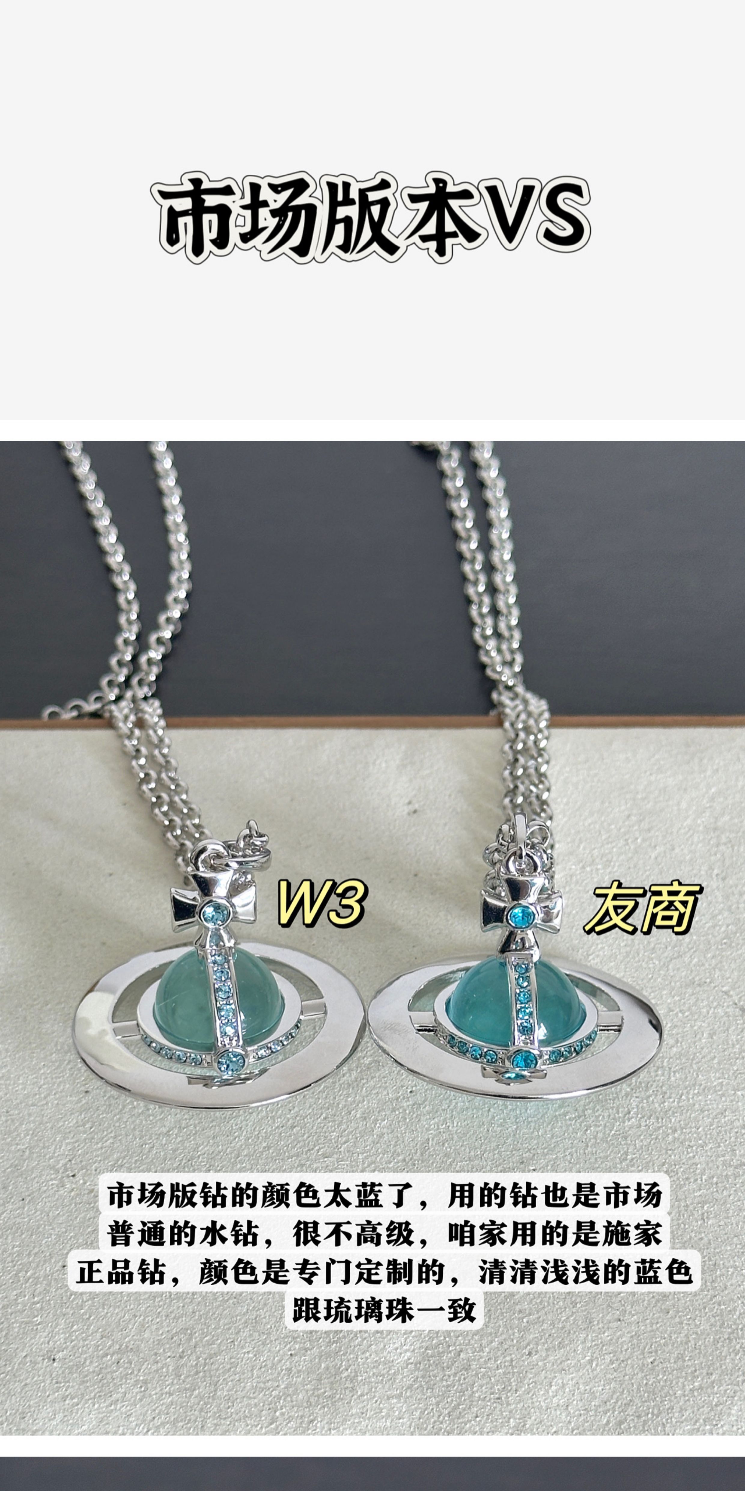 W3Studio Large Glacier Blue Orb Three-Dimensional Saturn Necklace Pina Studded Aviator Diamond Sweater Chain for Women