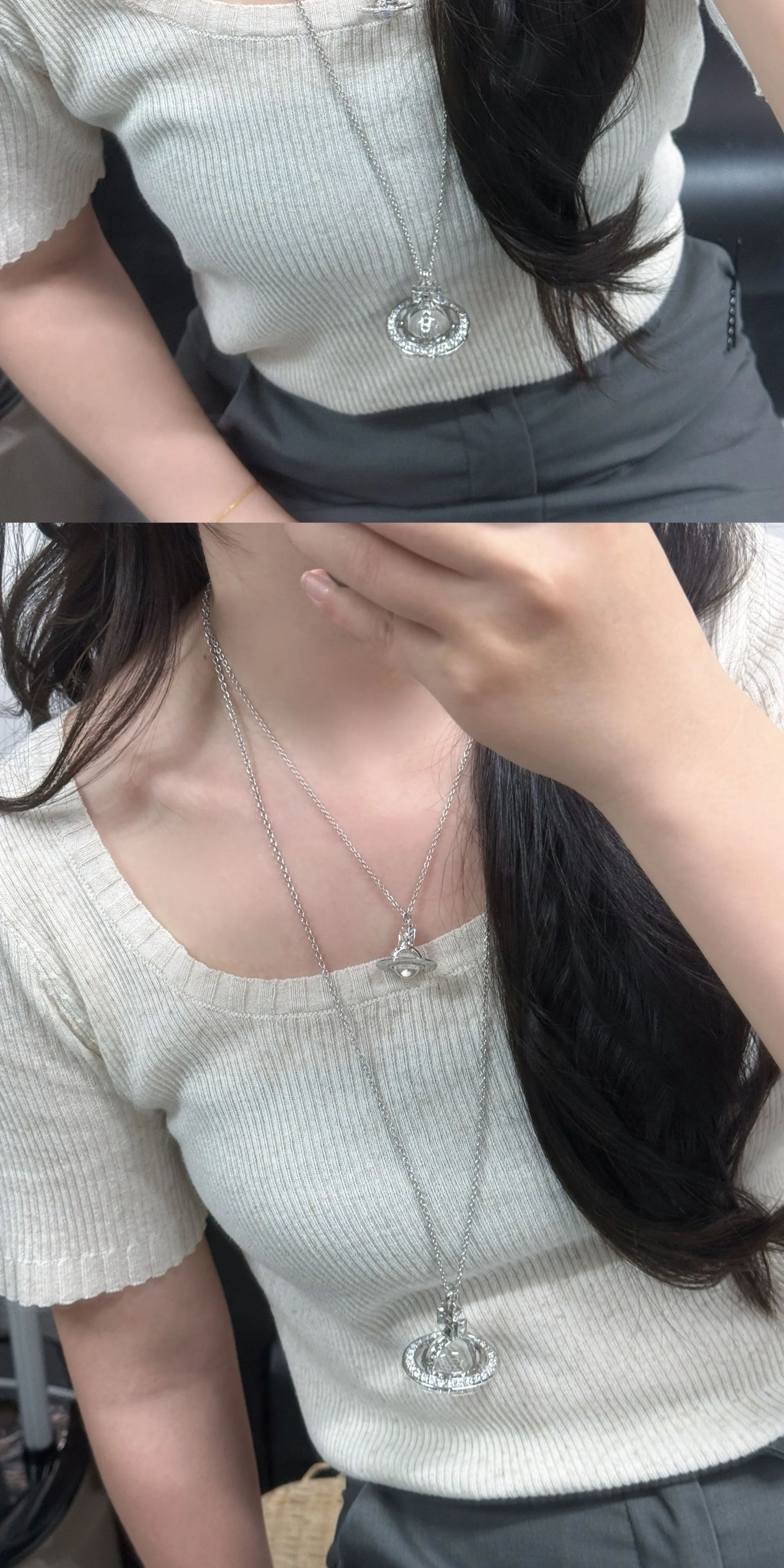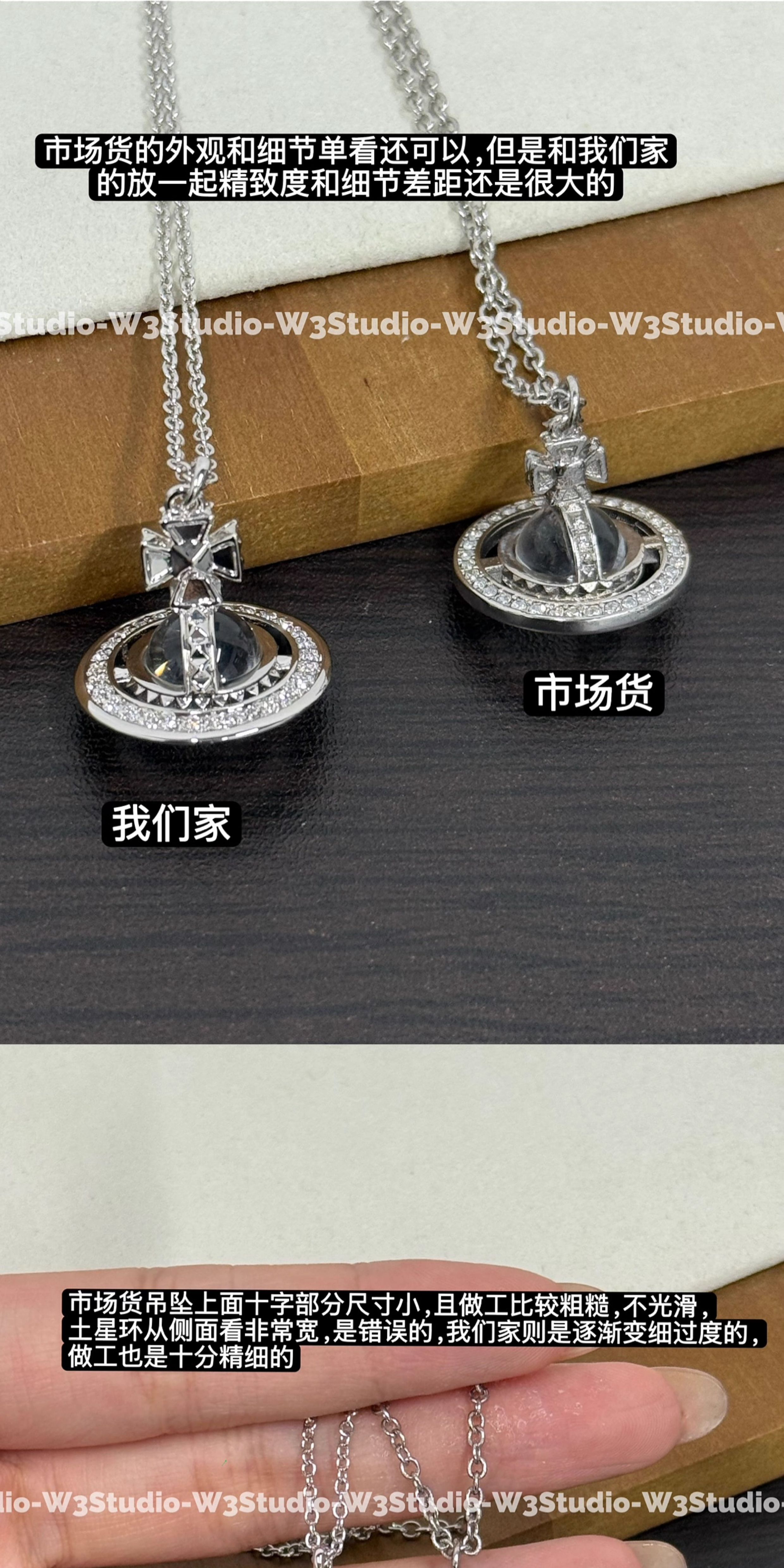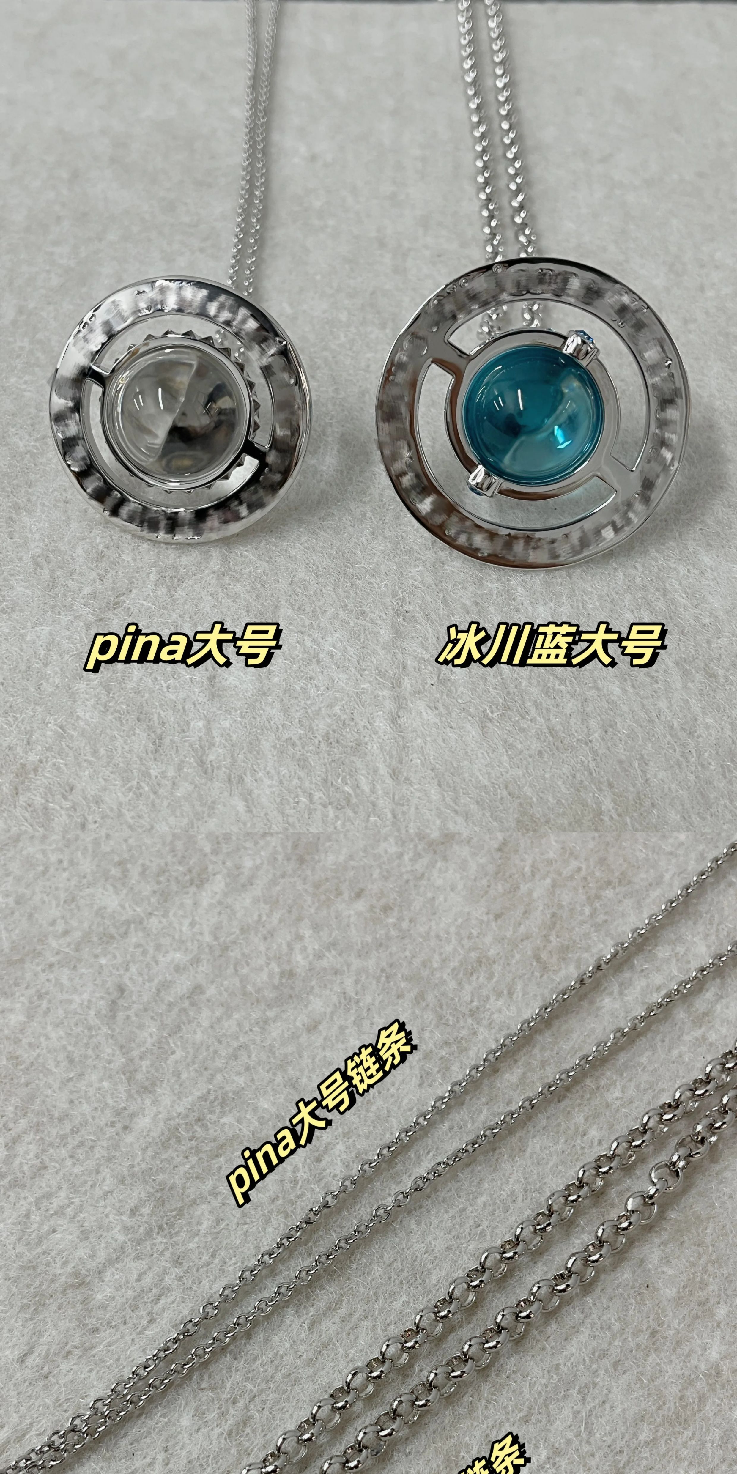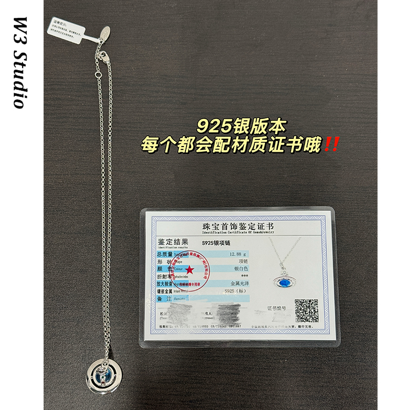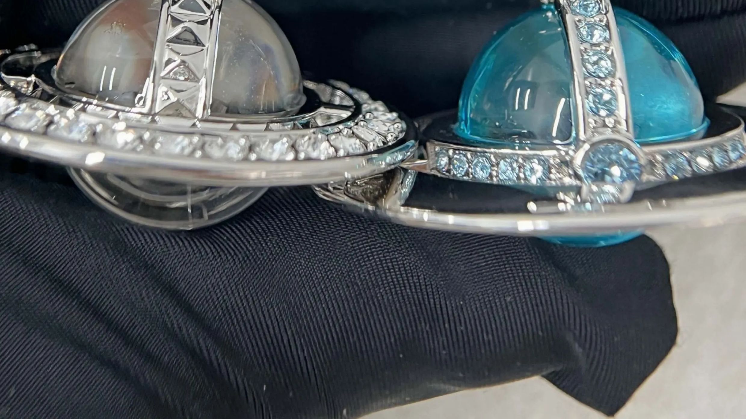 W3Studio Large Glacier Blue Orb Three-Dimensional Saturn Necklace Pina Studded Aviator Diamond Sweater Chain for Women