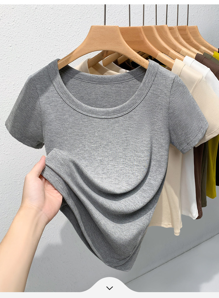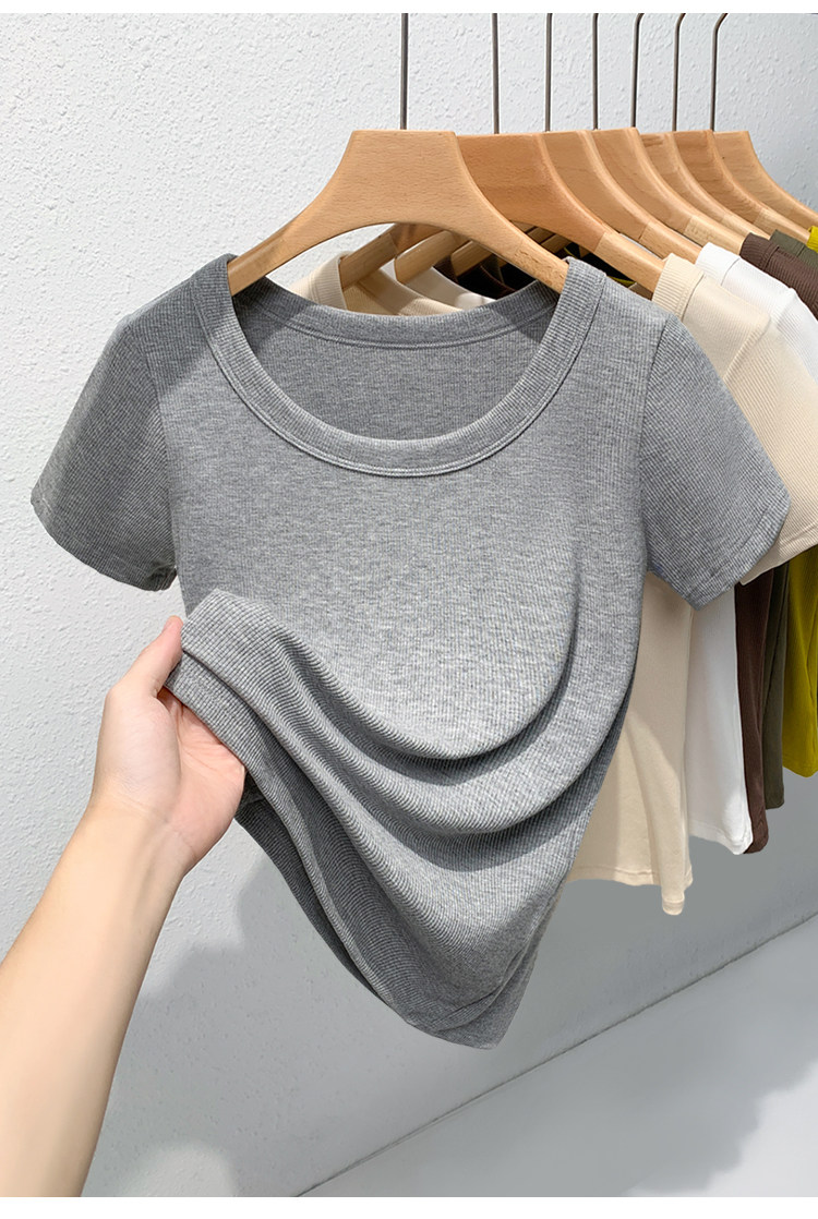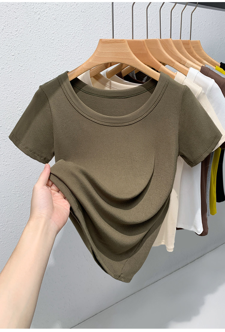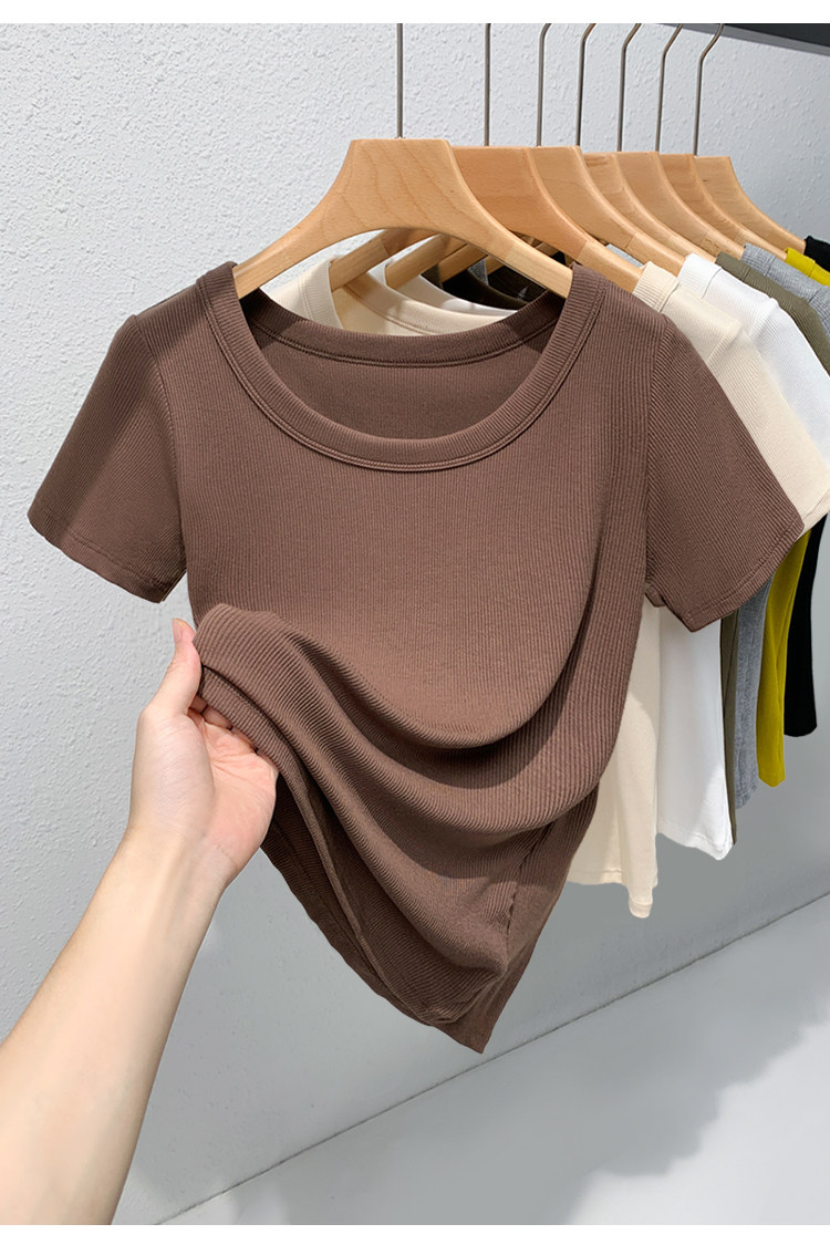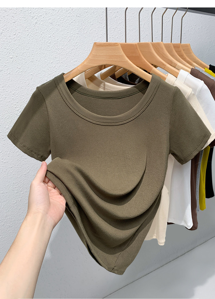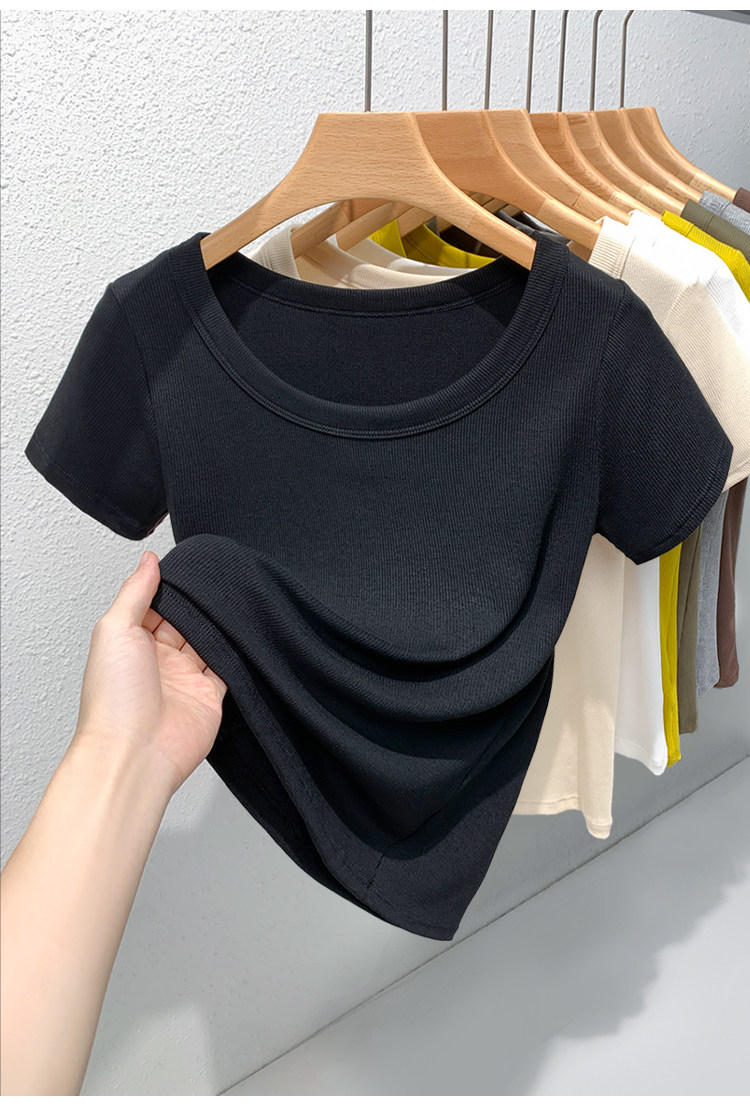 Catman Brand Women's Short-Sleeve T-Shirt, Summer 2026 New Style, Ribbed, Slimming, Fashionable Black Knit Top for Petite Women
