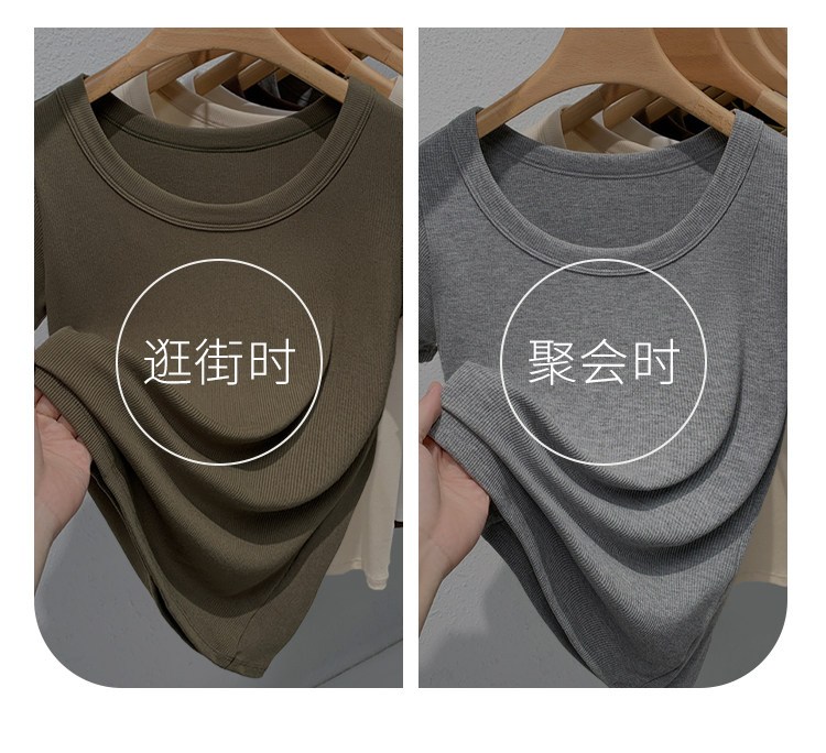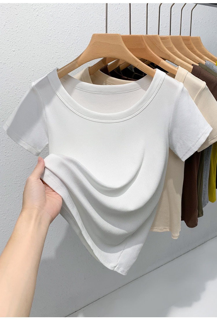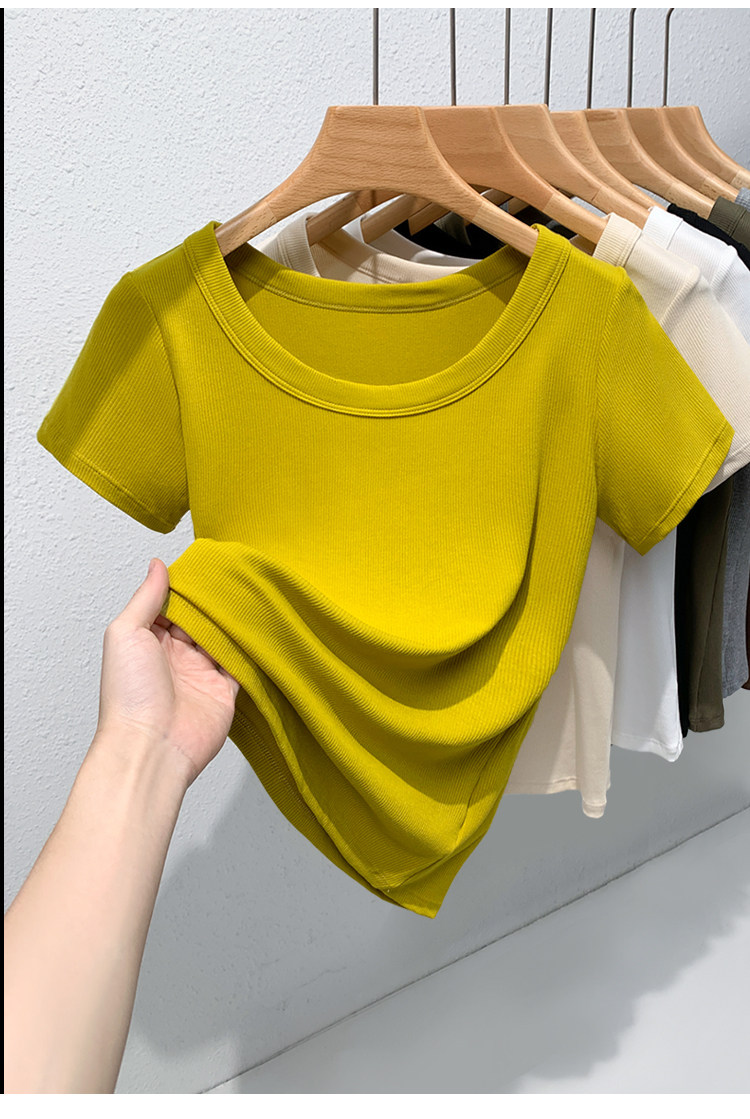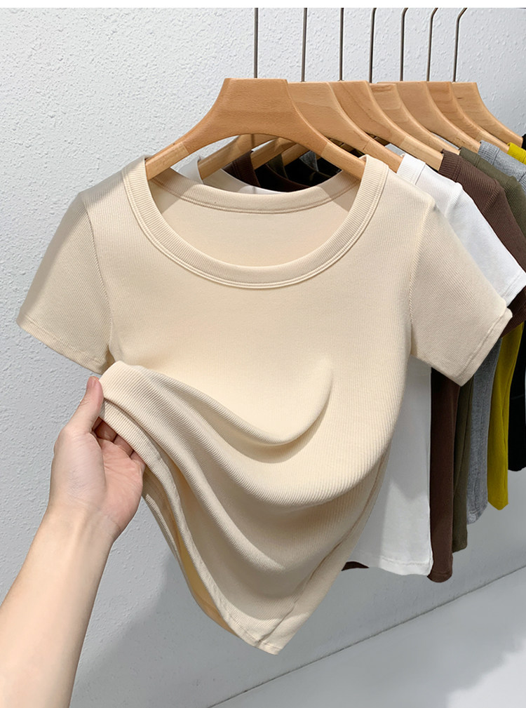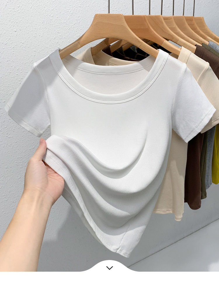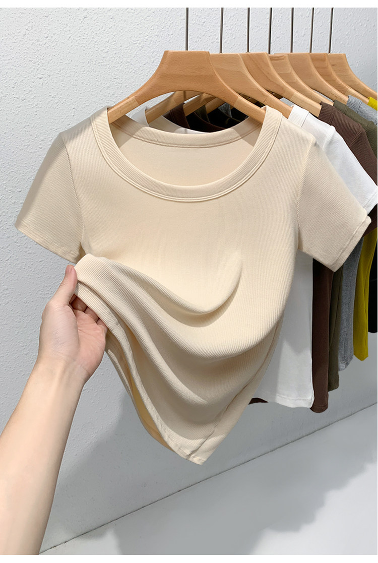 Catman Brand Women's Short-Sleeve T-Shirt, Summer 2026 New Style, Ribbed, Slimming, Fashionable Black Knit Top for Petite Women