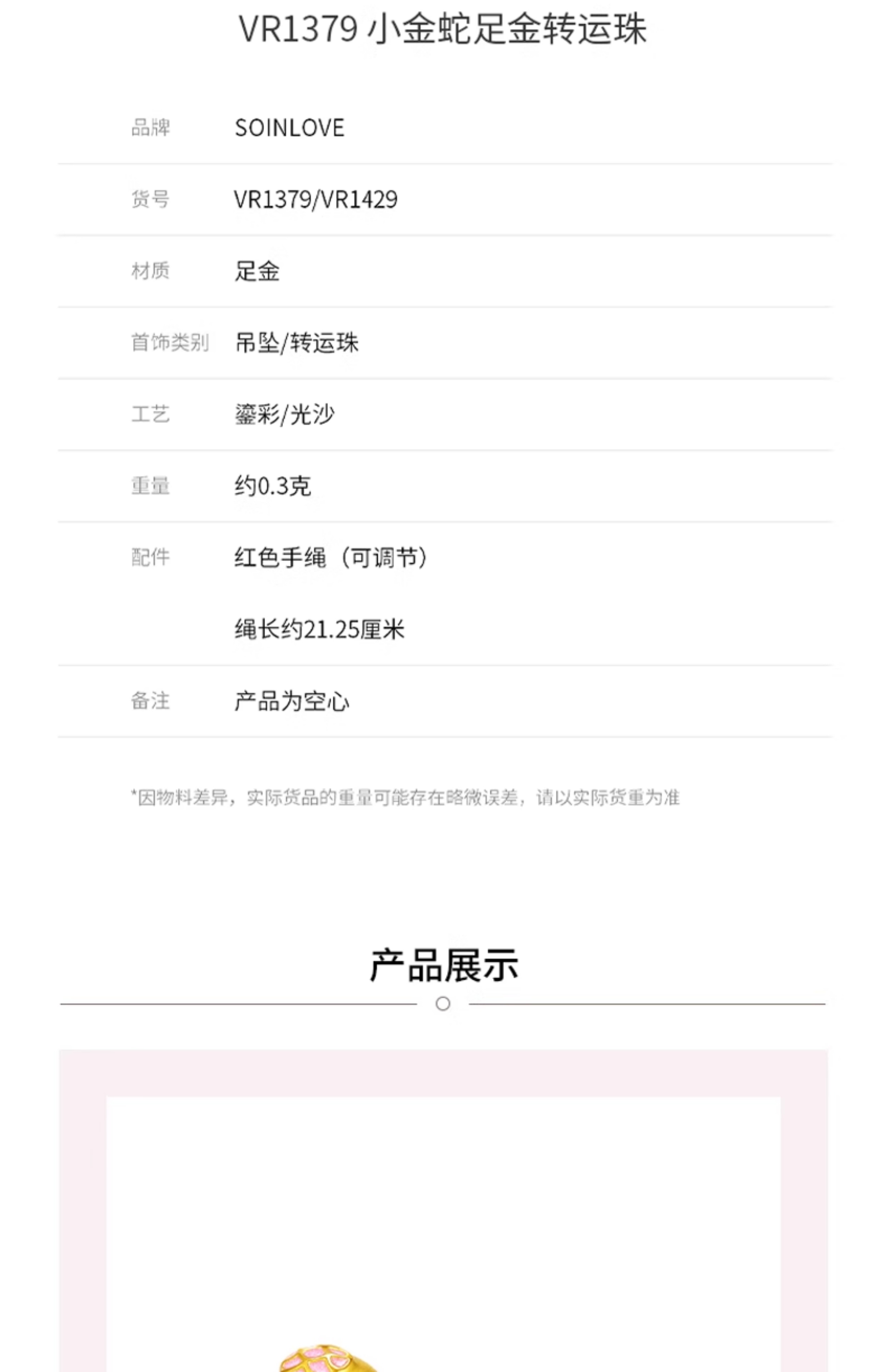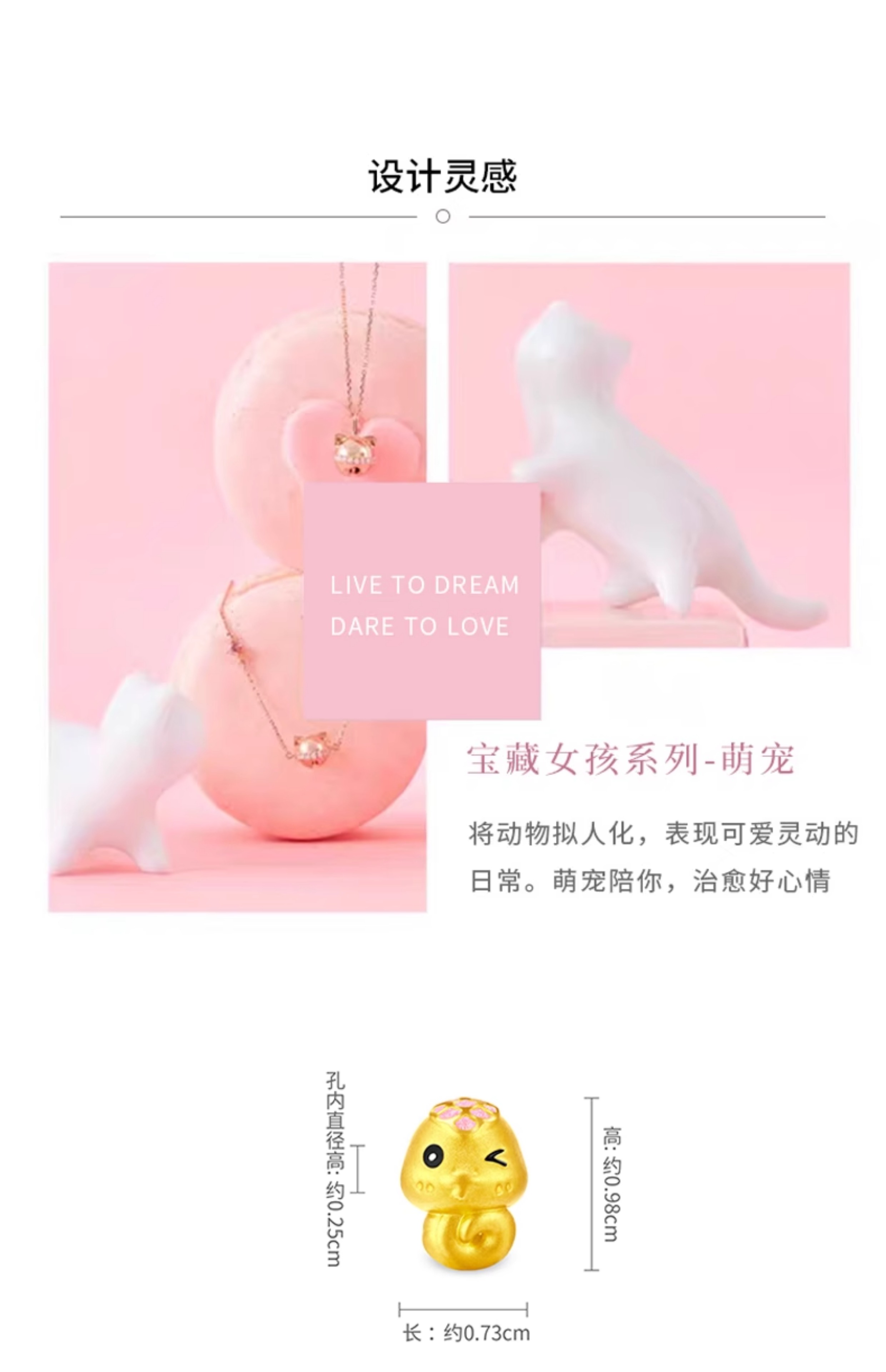 Chow Tai Fook Soinlove'Cute Pet' Little Golden Snake Little Wealth Snake Zodiac Snake Gold Pure Gold Fortune Beads in Various Styles