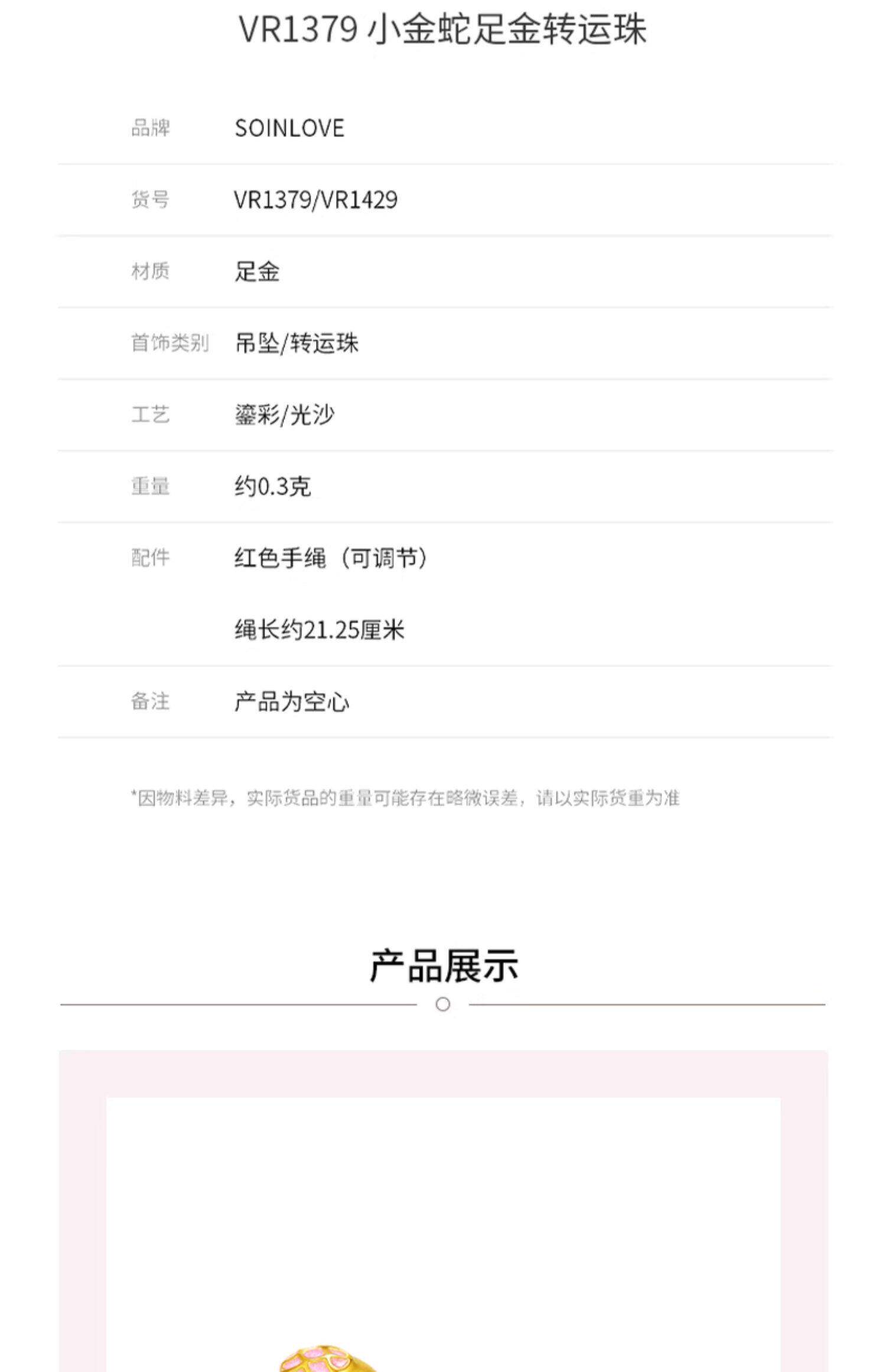 Chow Tai Fook Soinlove "Cute Pet" Little Gold Snake, Little Wealth Snake, Zodiac Snake, Gold Fortune Beads in Various Designs