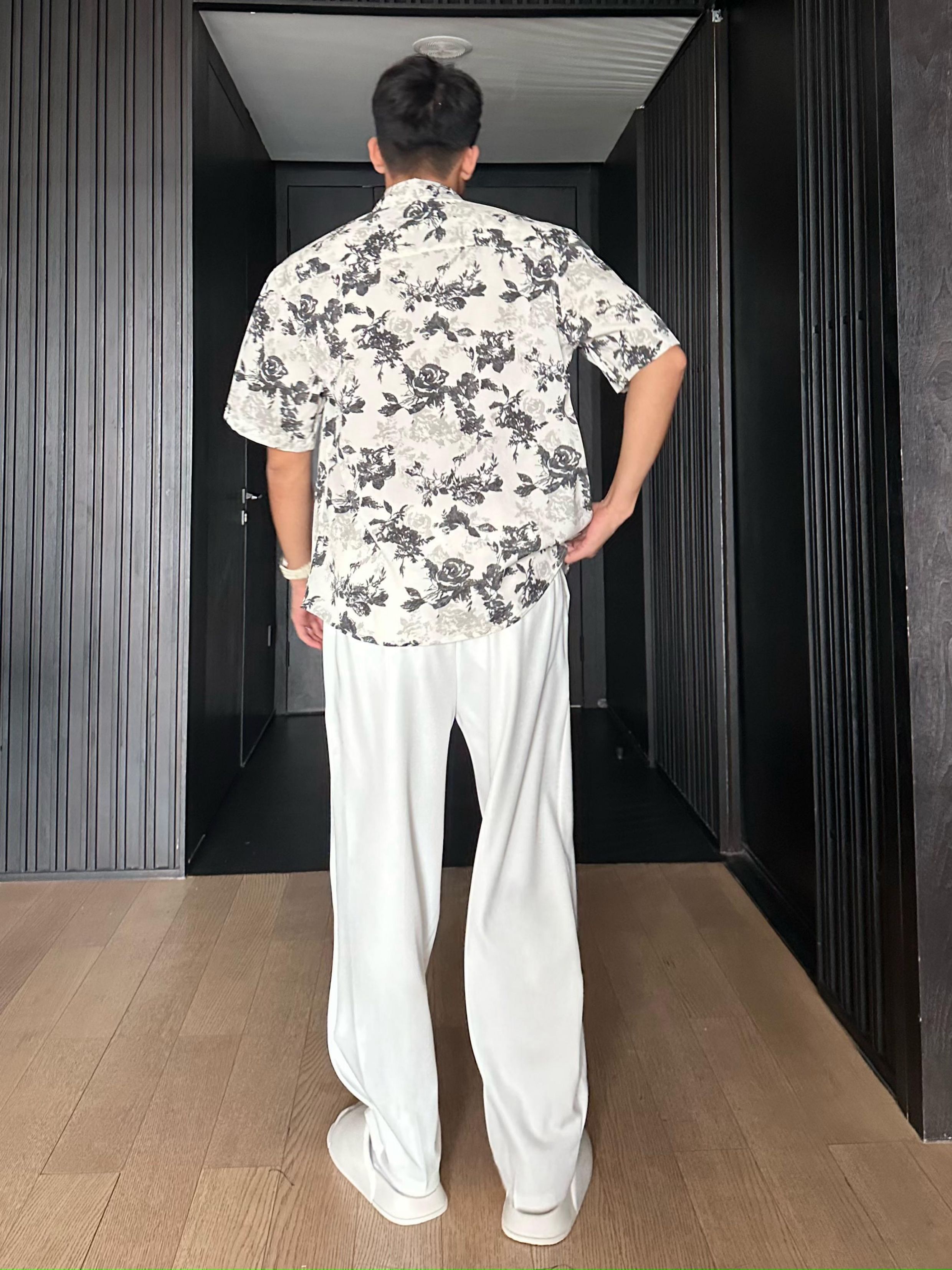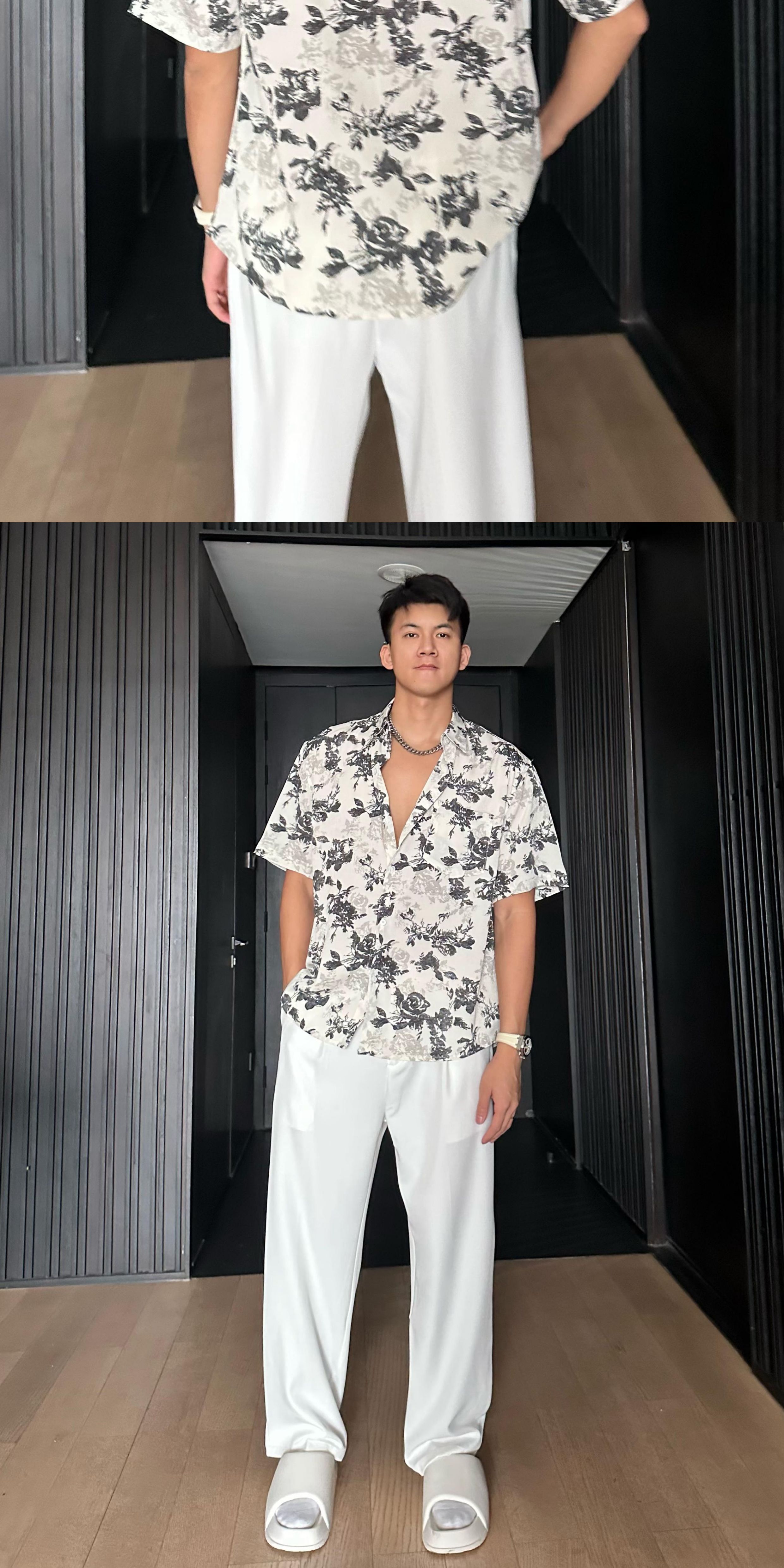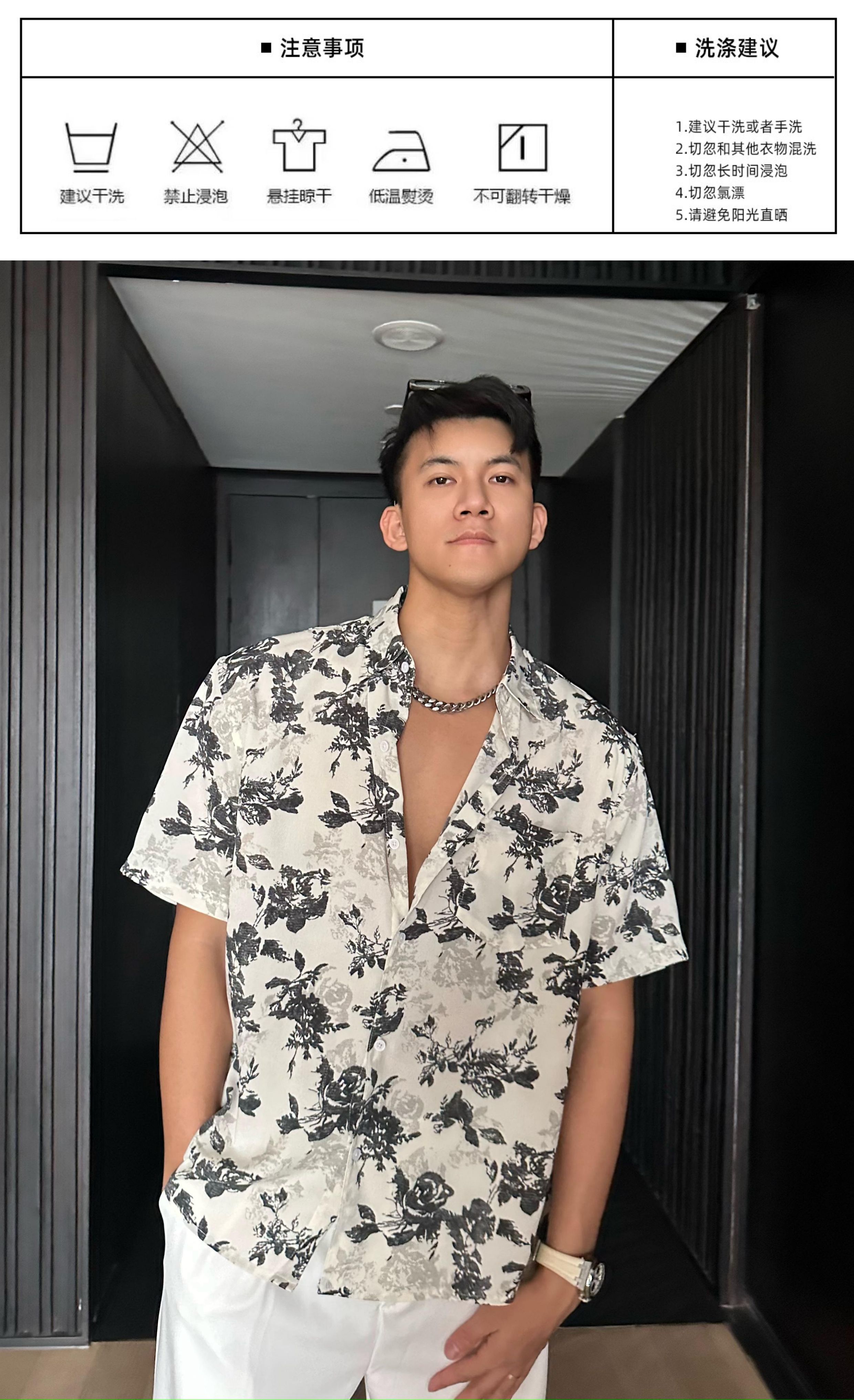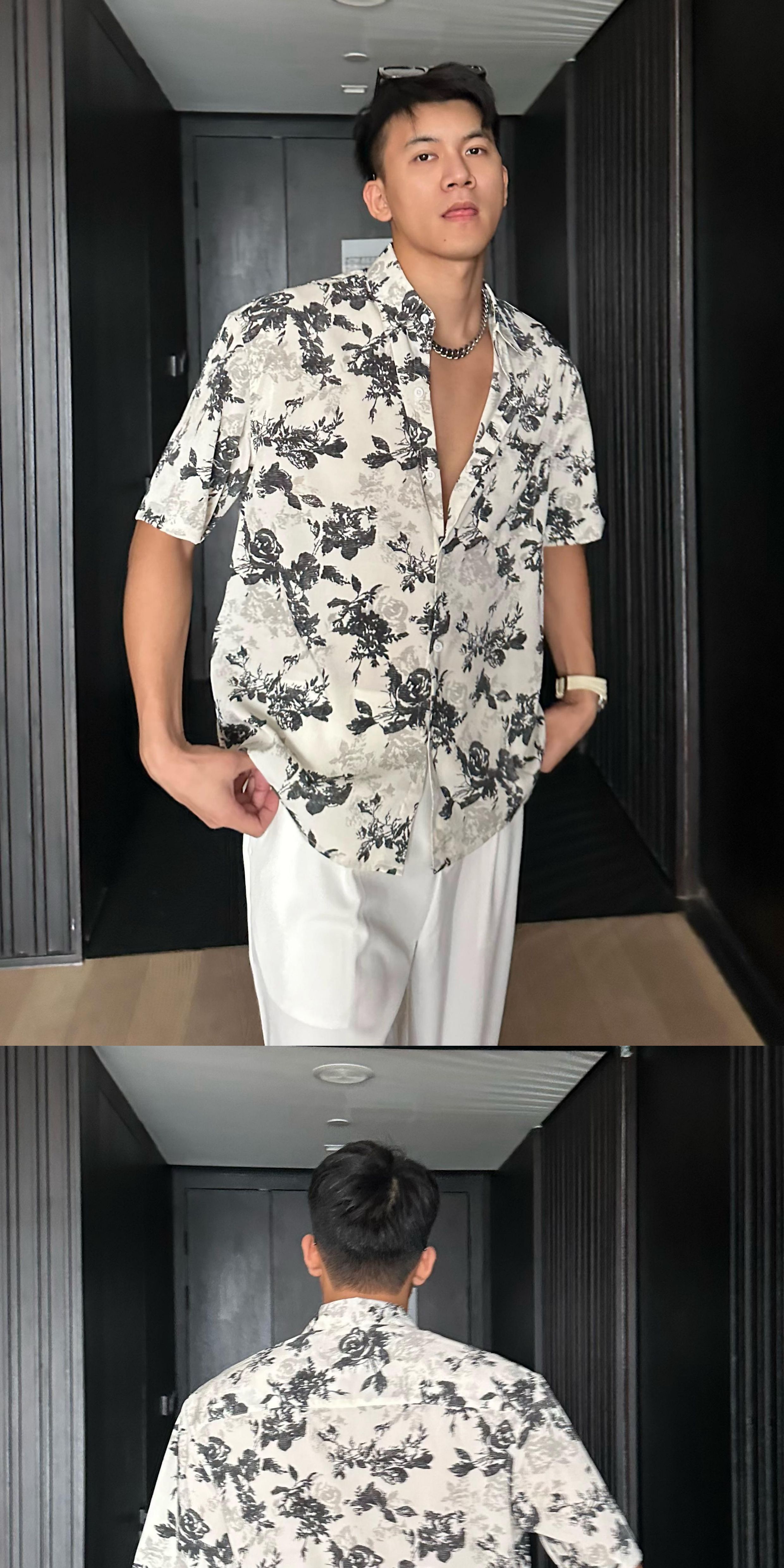Jzd White/Black Summer Lightweight Breathable Hawaiian Vacation Loose Casual Stylish Draped Short-Sleeve Floral Shirt for Men