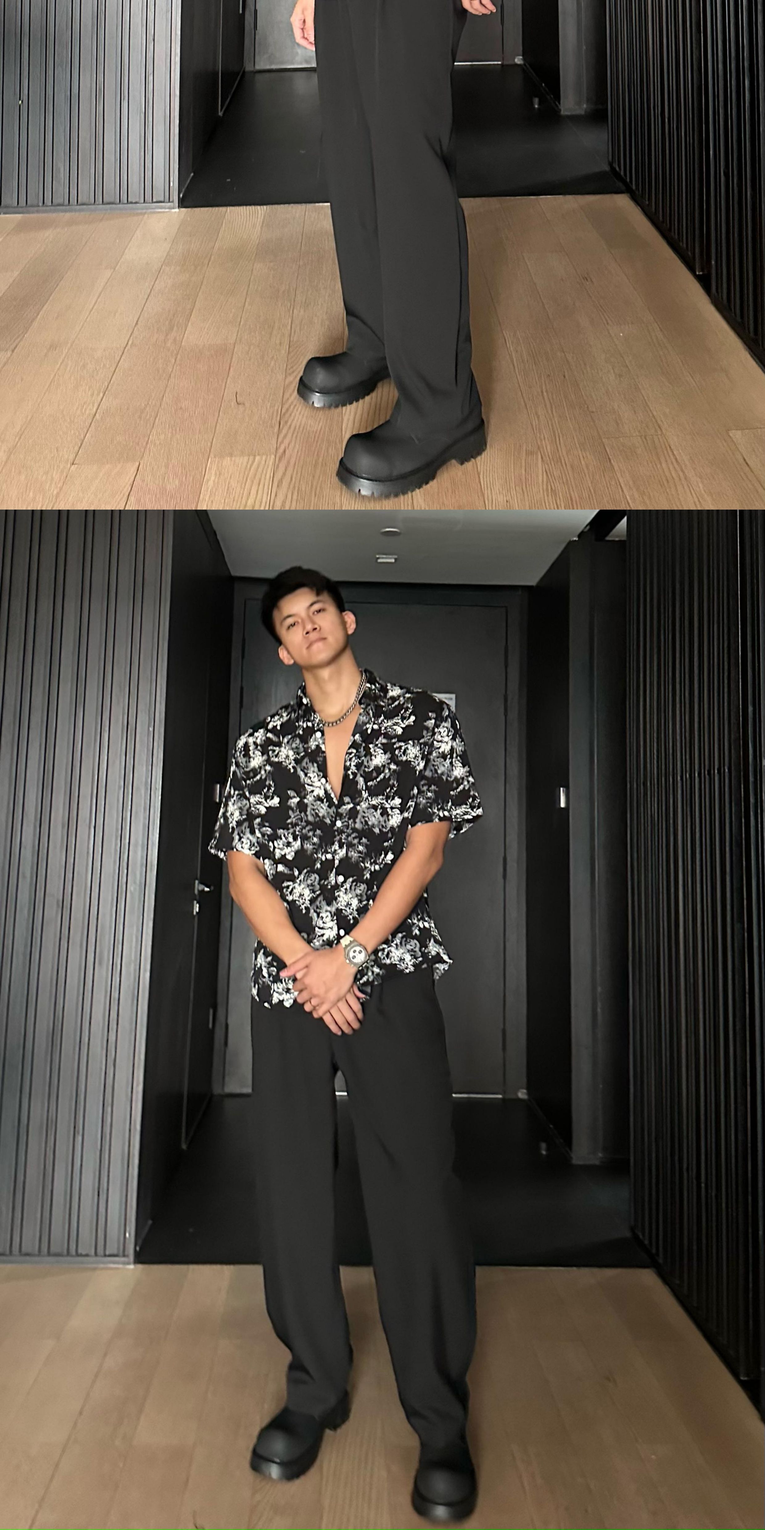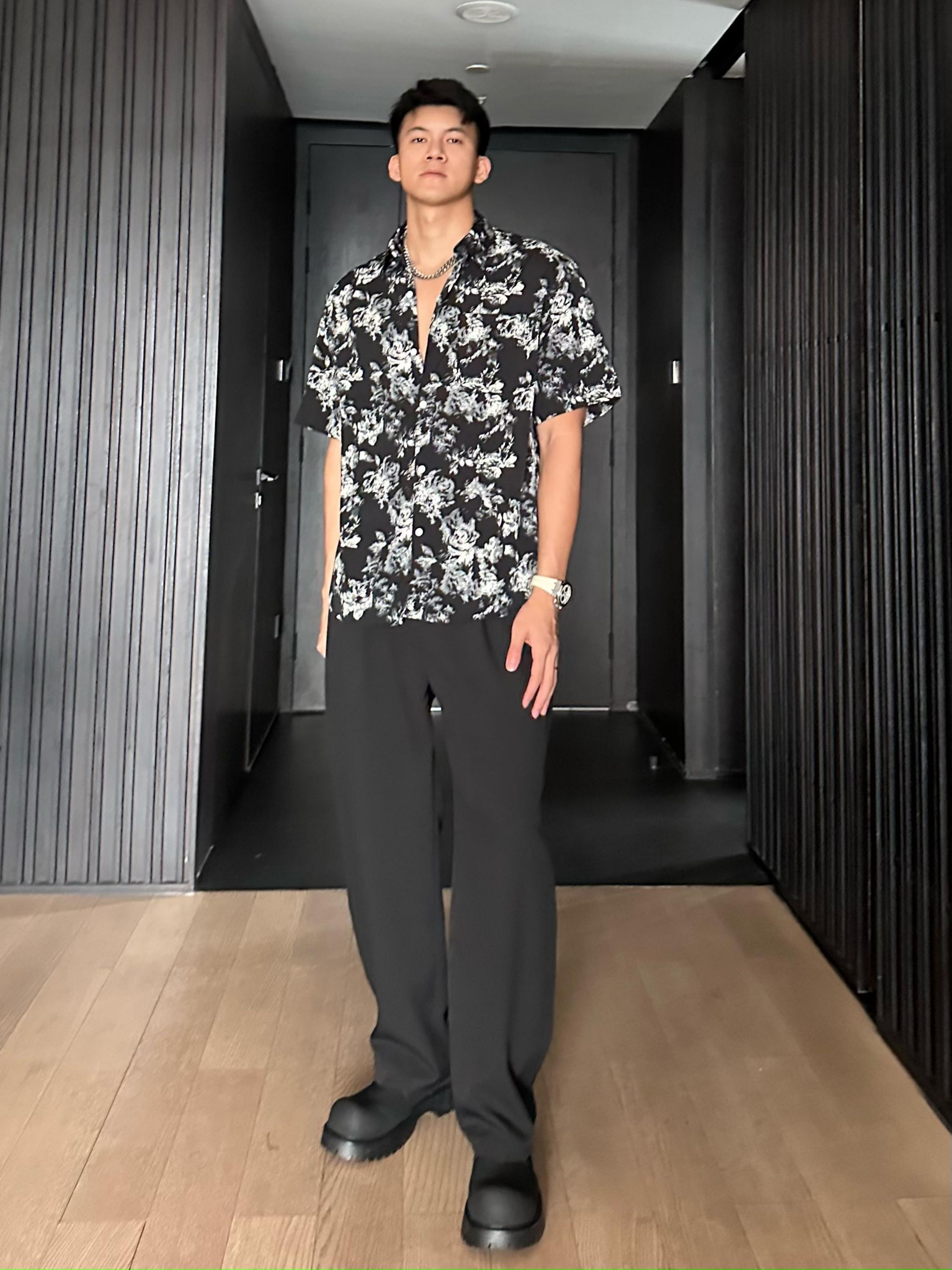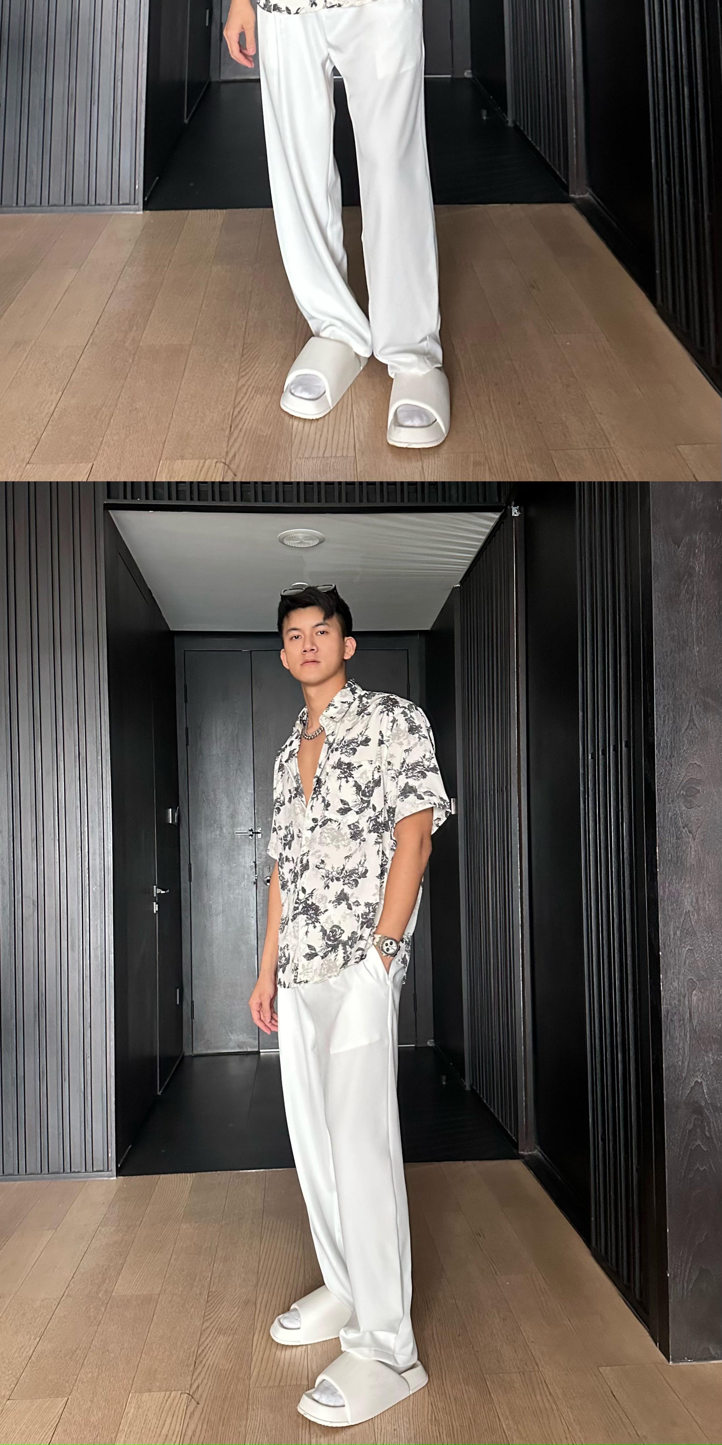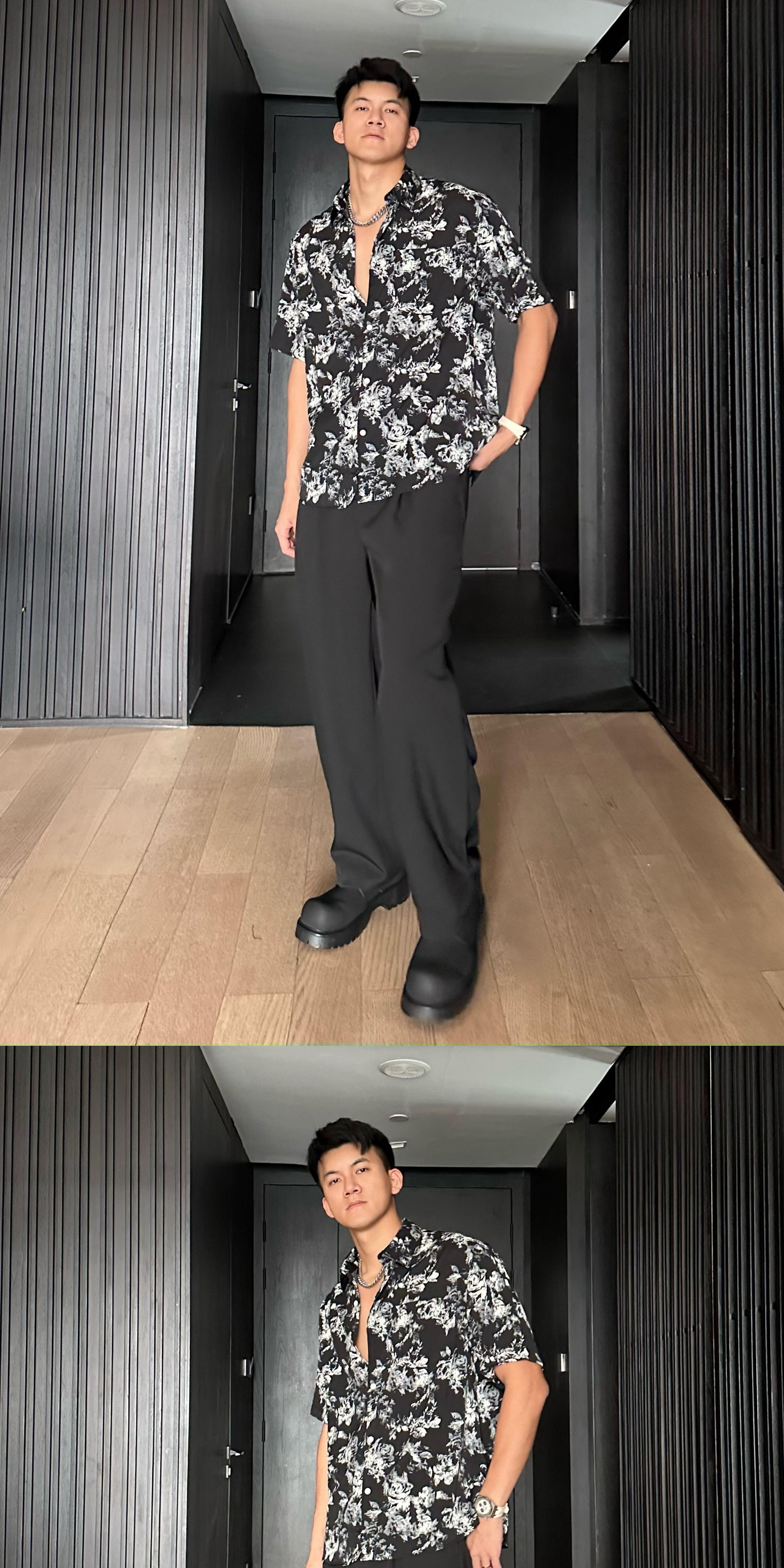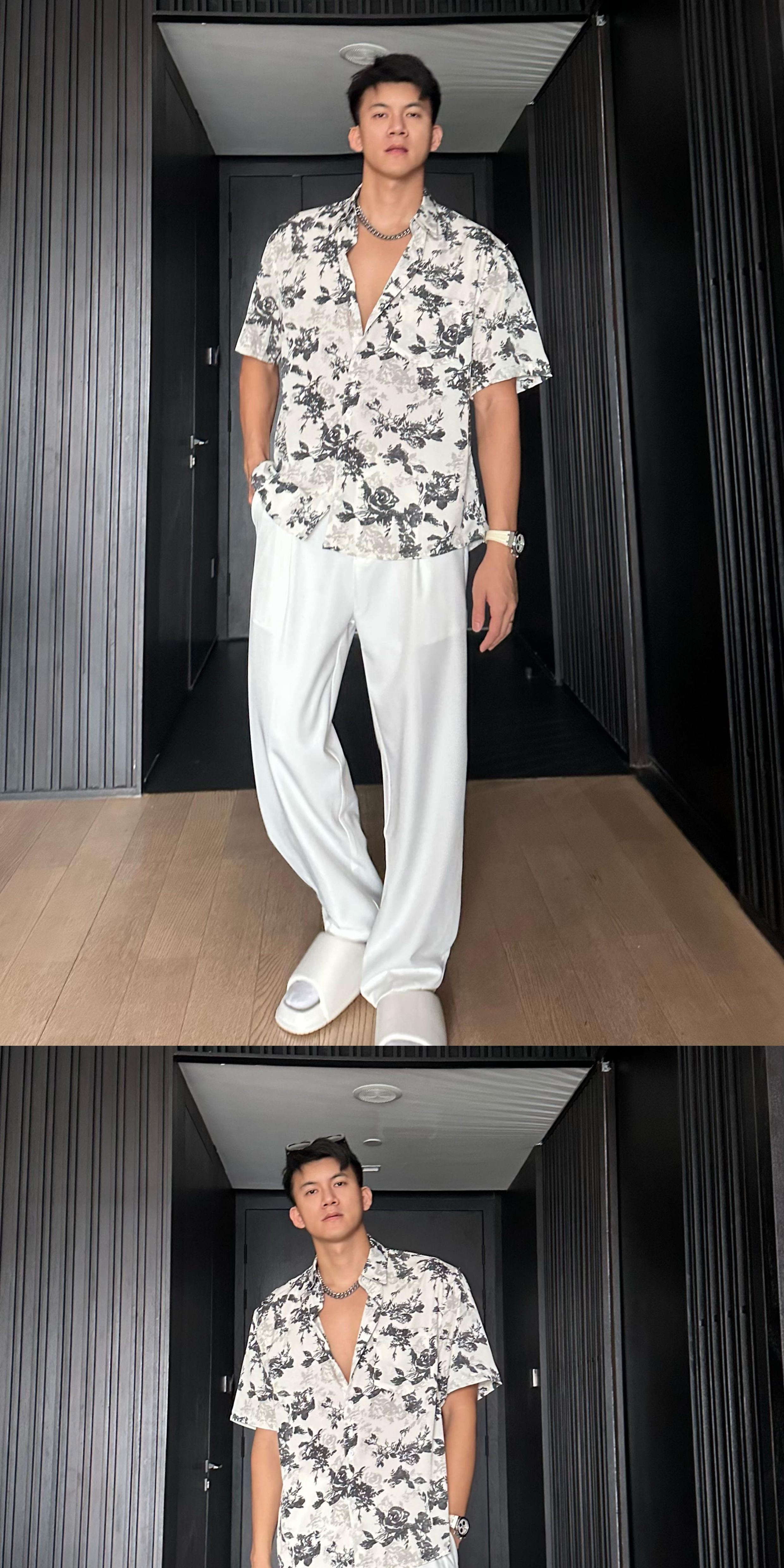 Jzd White/Black Summer Lightweight Breathable Hawaiian Vacation Loose Casual Stylish Draped Short-Sleeve Floral Shirt for Men