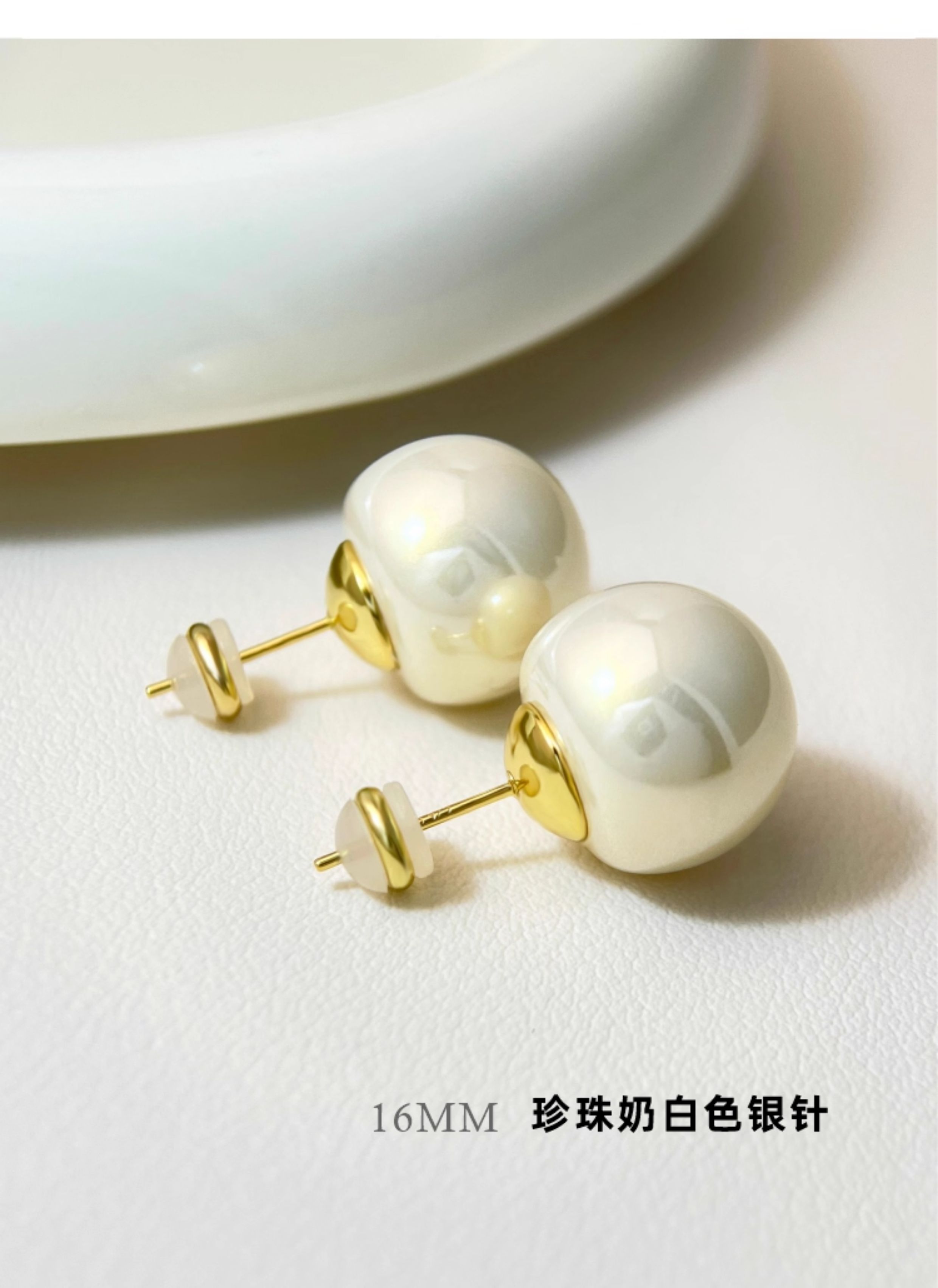 Cc&Oo Large Pearl Earrings for Women 2025 New Style Accessible Luxury High-End Elegant Earrings 925 Silver Needle Summer Ear Jewelry