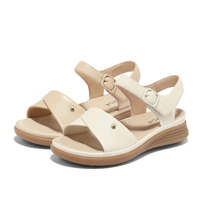 Senda Sheepskin Casual Sandals for Women, Summer New Style, Same as in Shopping Malls, Comfortable Walking Flat Sandals Szn01Bl4