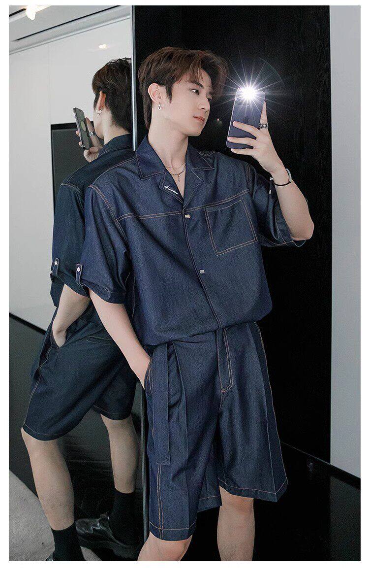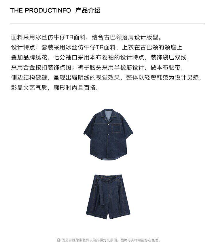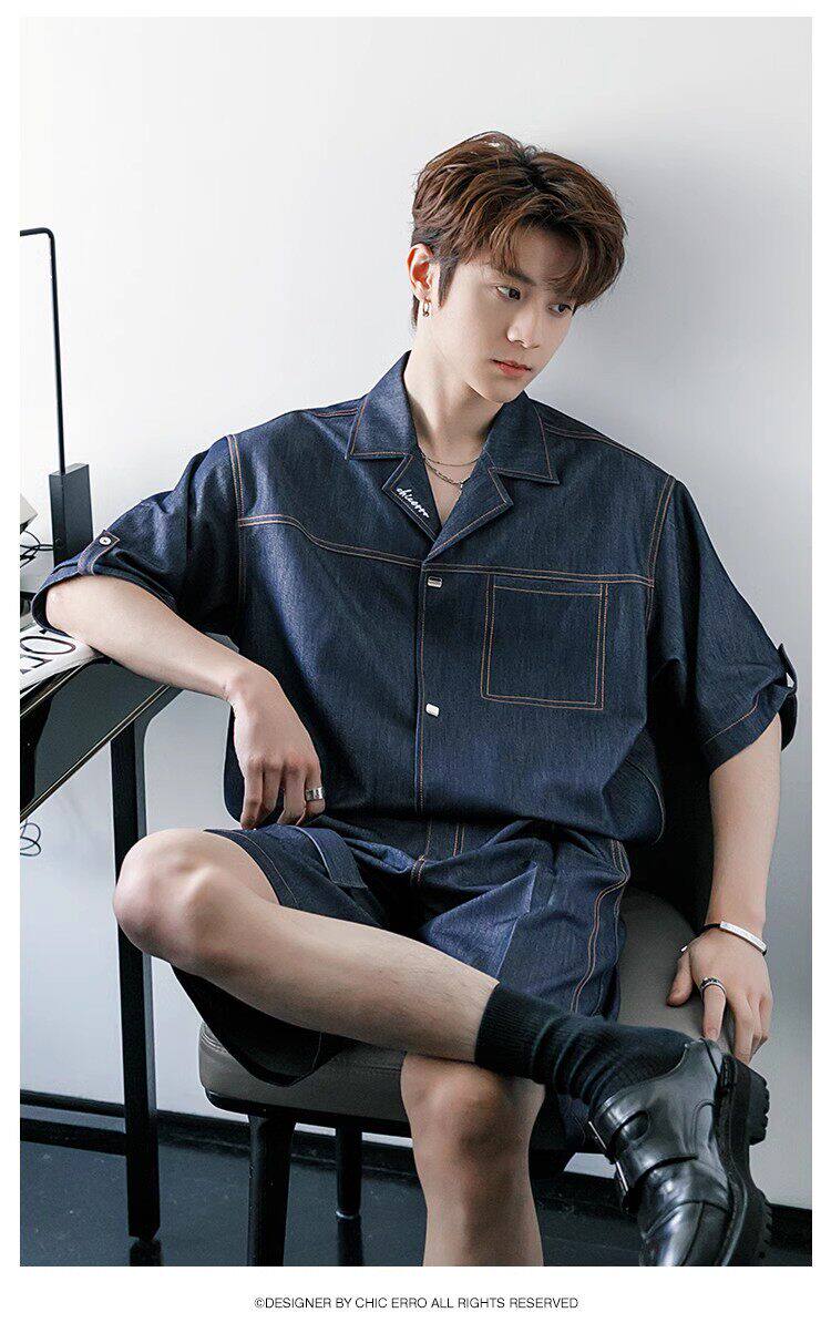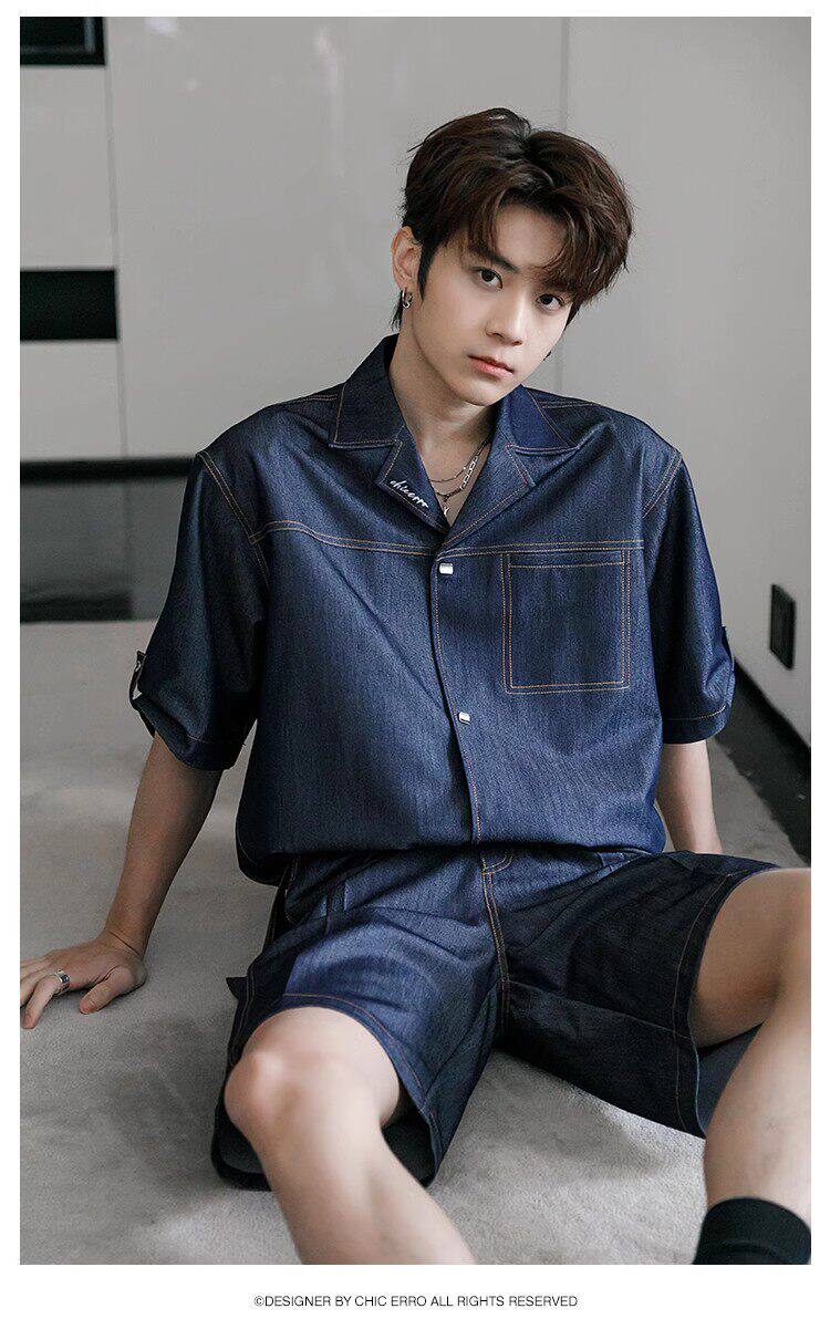 Chicerro Sicilian Men's Summer High-End Ice Silk Denim Cuban Collar Men's Casual Cool Suit Trendy
