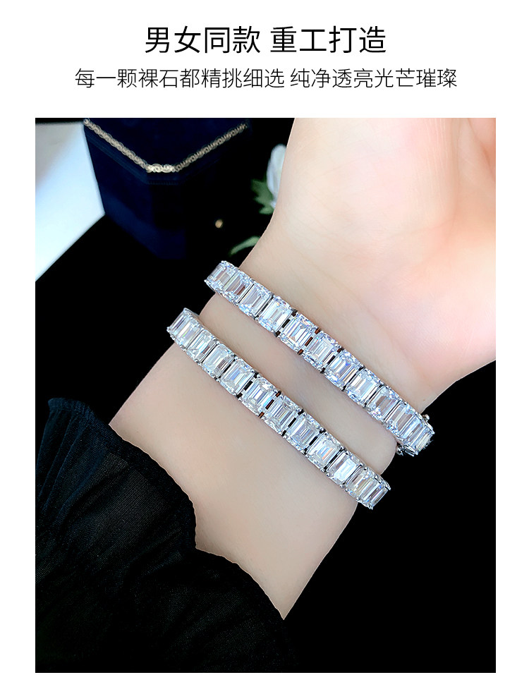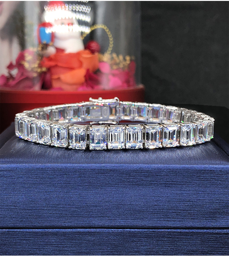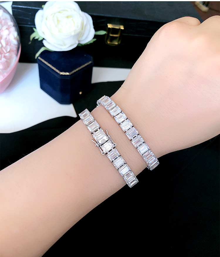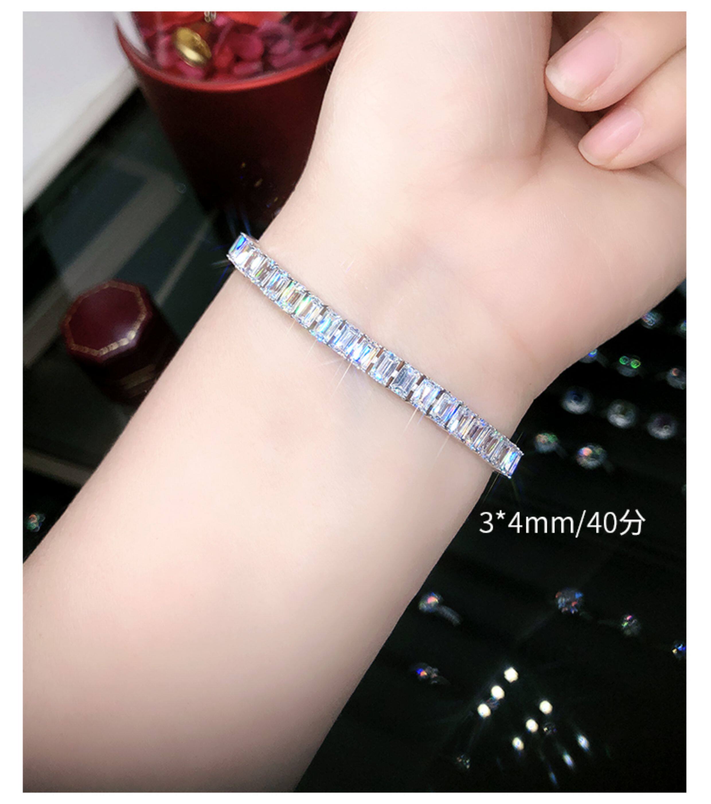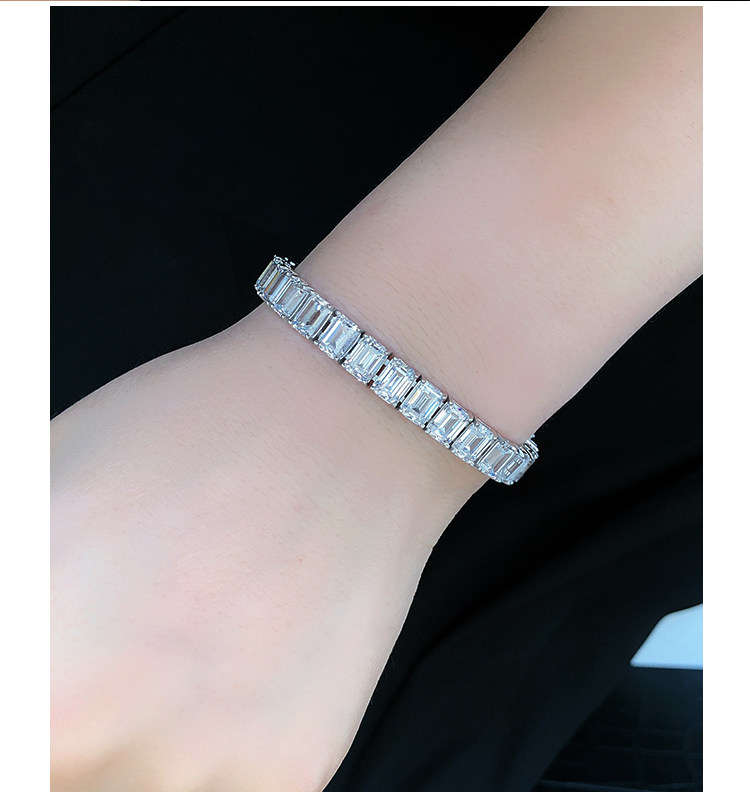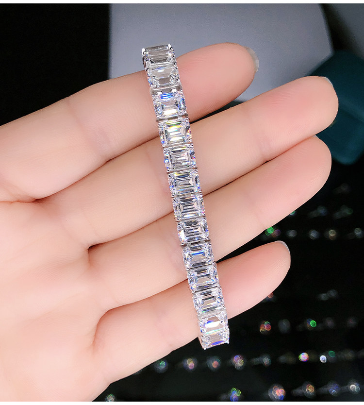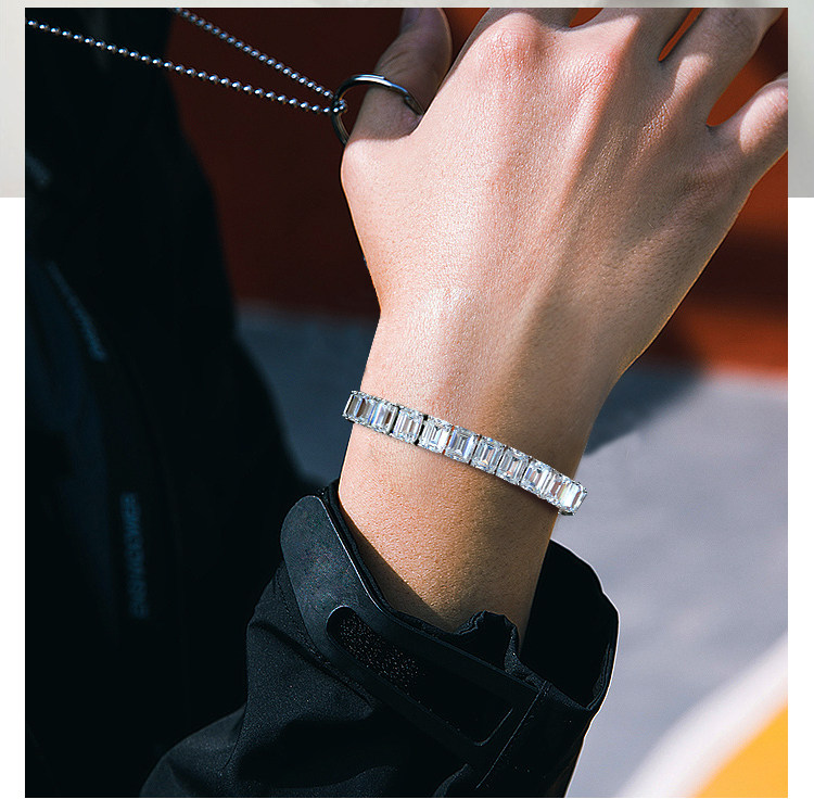 Light Luxury Sugar Cube Moissanite Bracelet for Men and Women, Synthetic Emerald Cut Silver Plated with 18K Gold, Full Diamond Imitation Diamond Bracelet