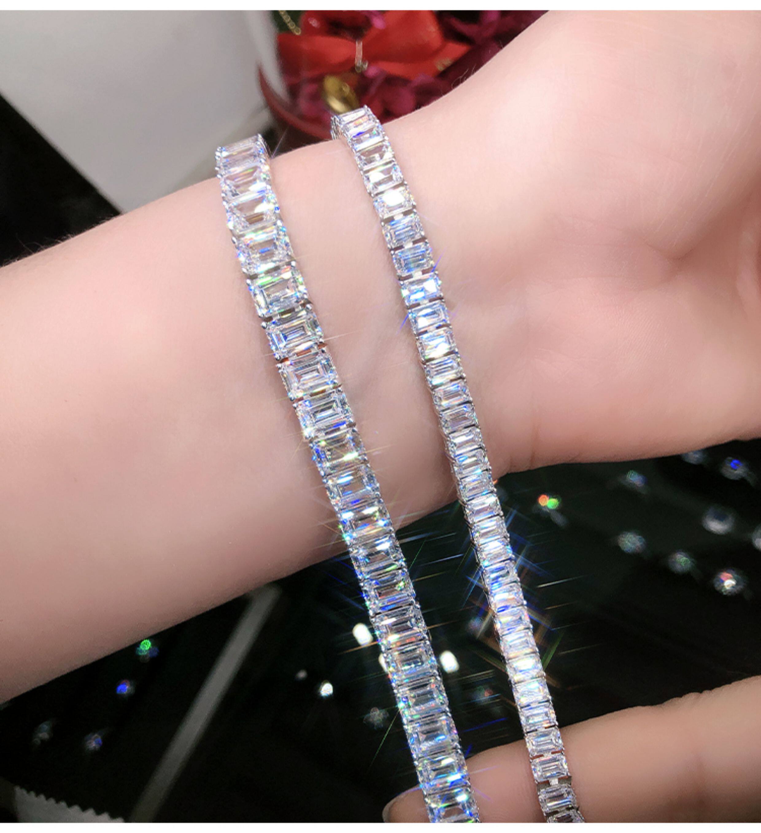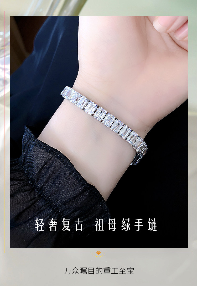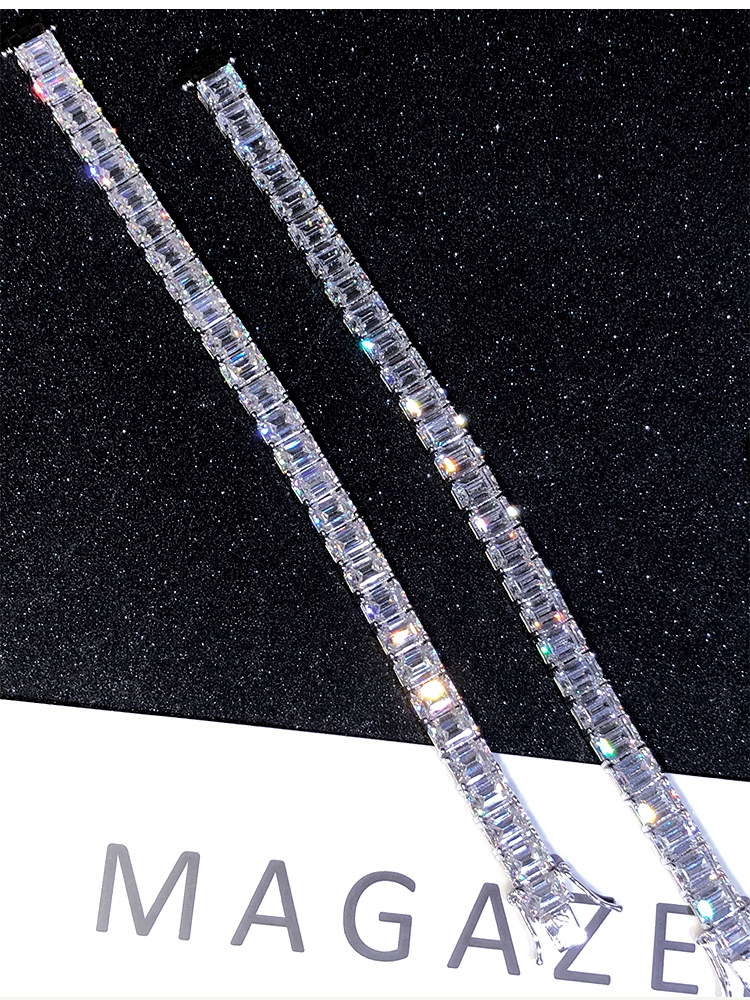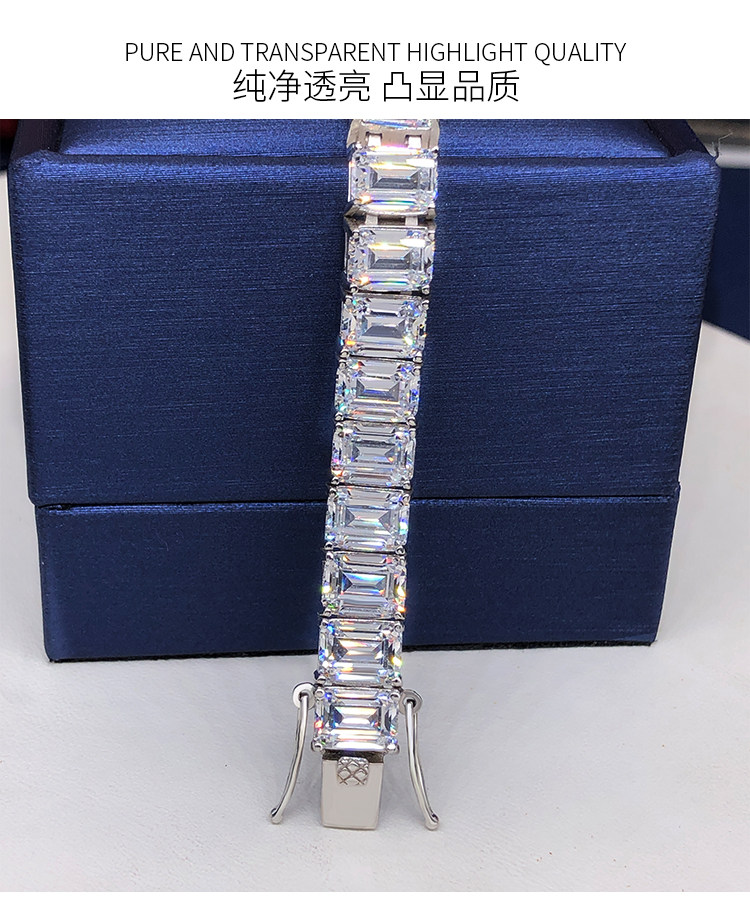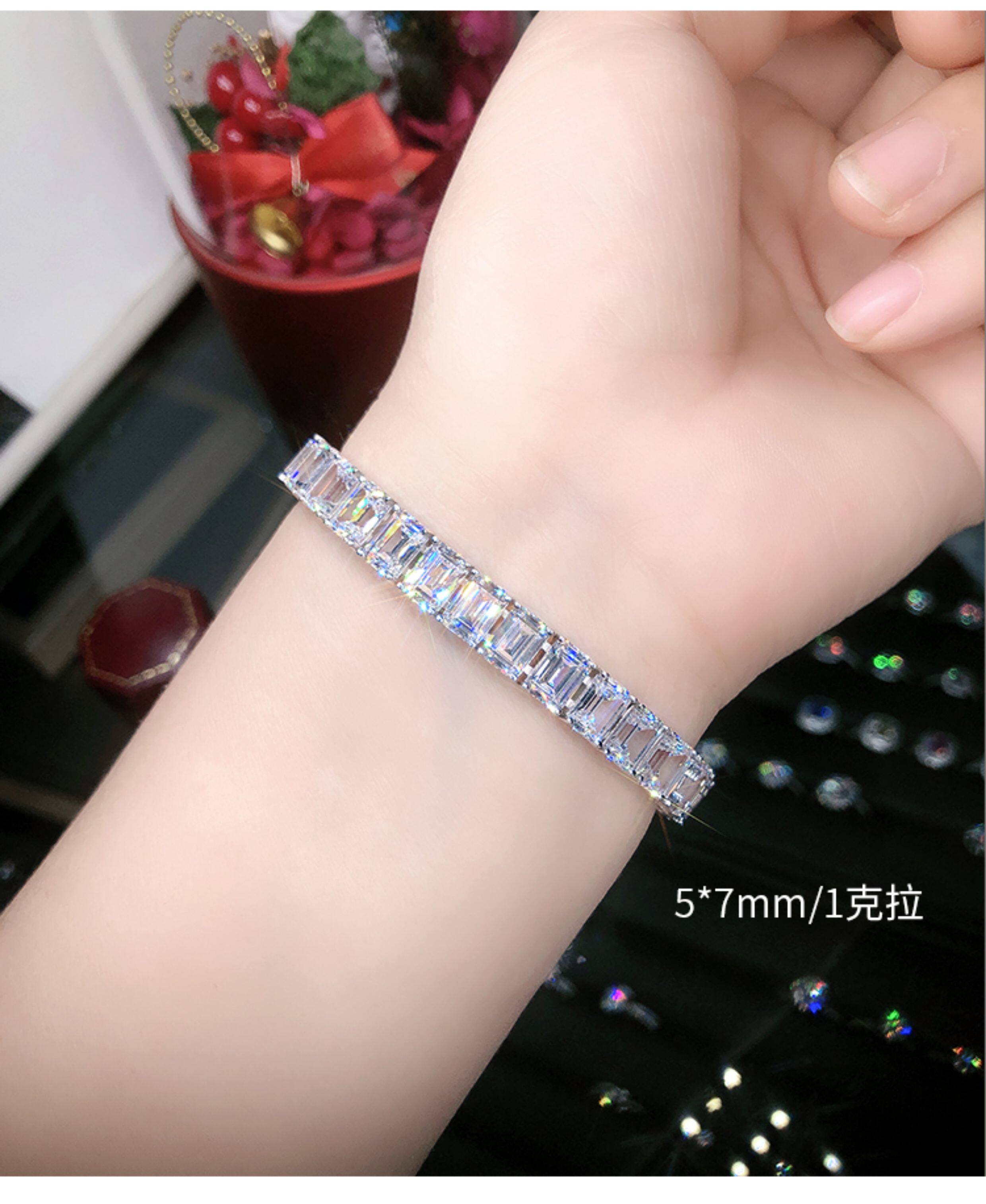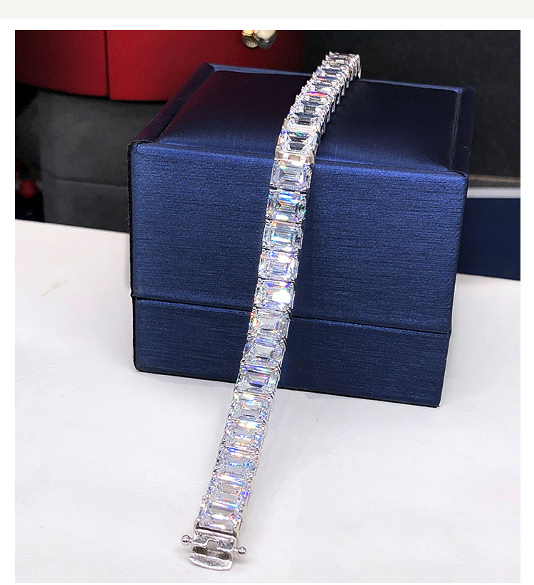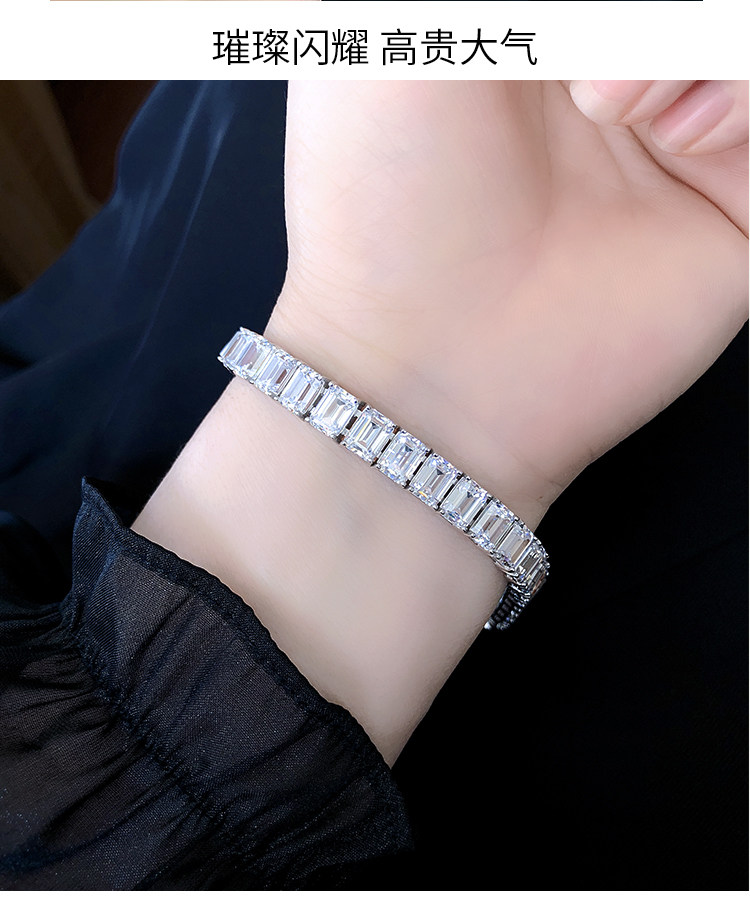 Light Luxury Sugar Cube Moissanite Bracelet for Men and Women, Synthetic Emerald Cut Silver Plated with 18K Gold, Full Diamond Imitation Diamond Bracelet