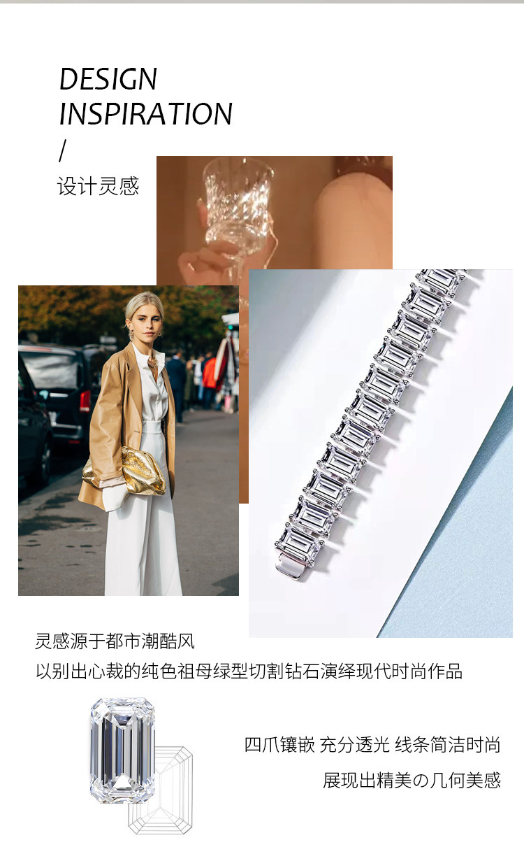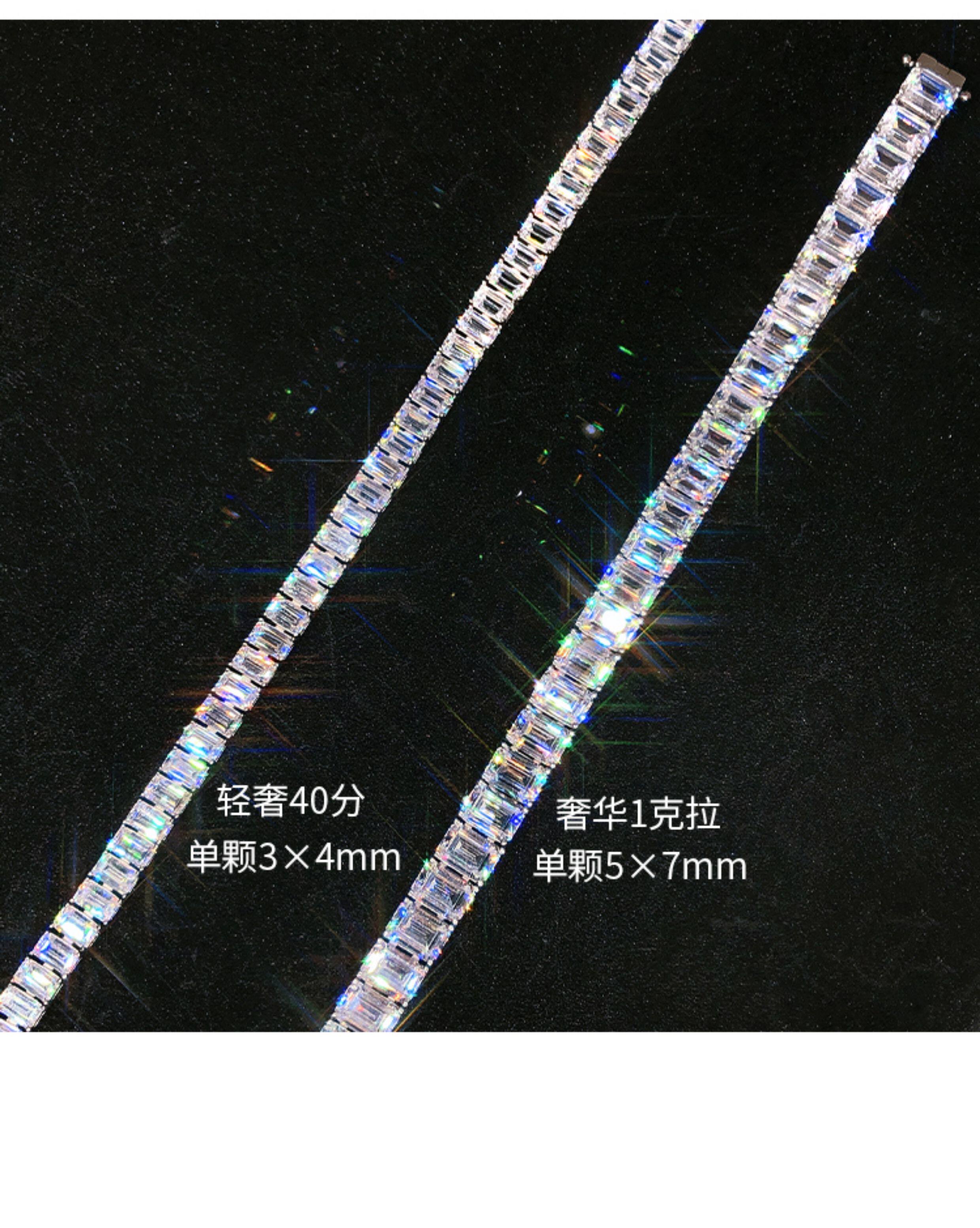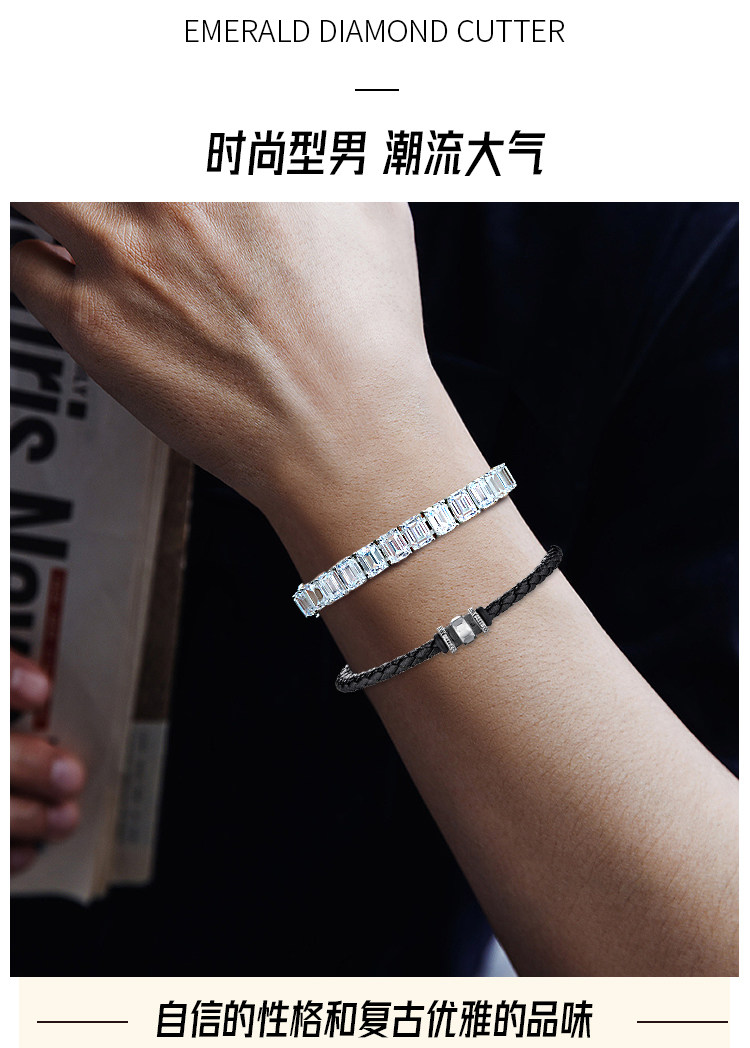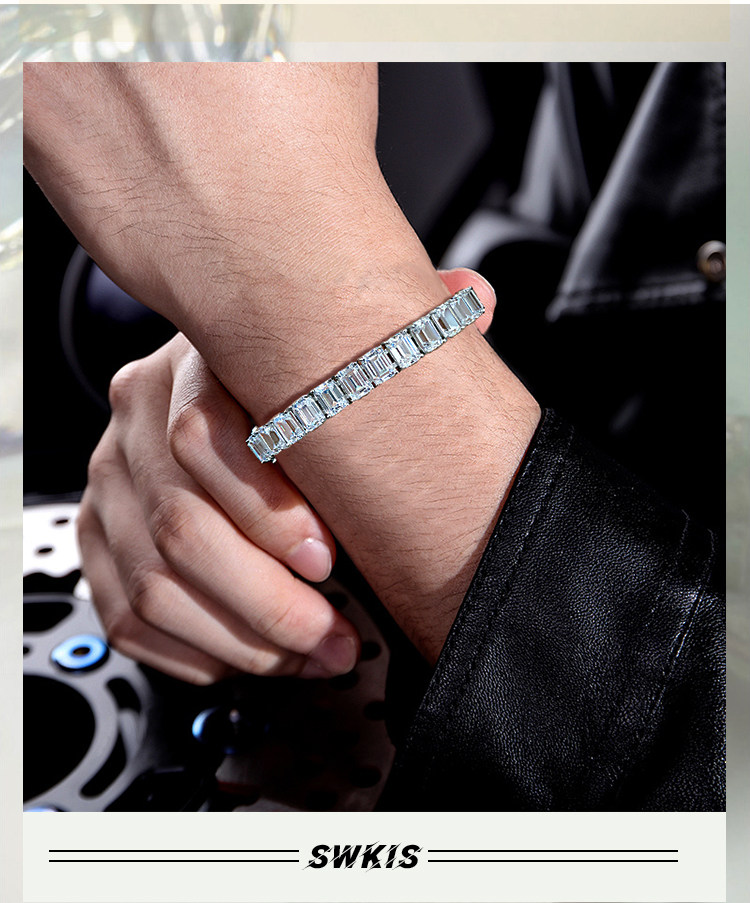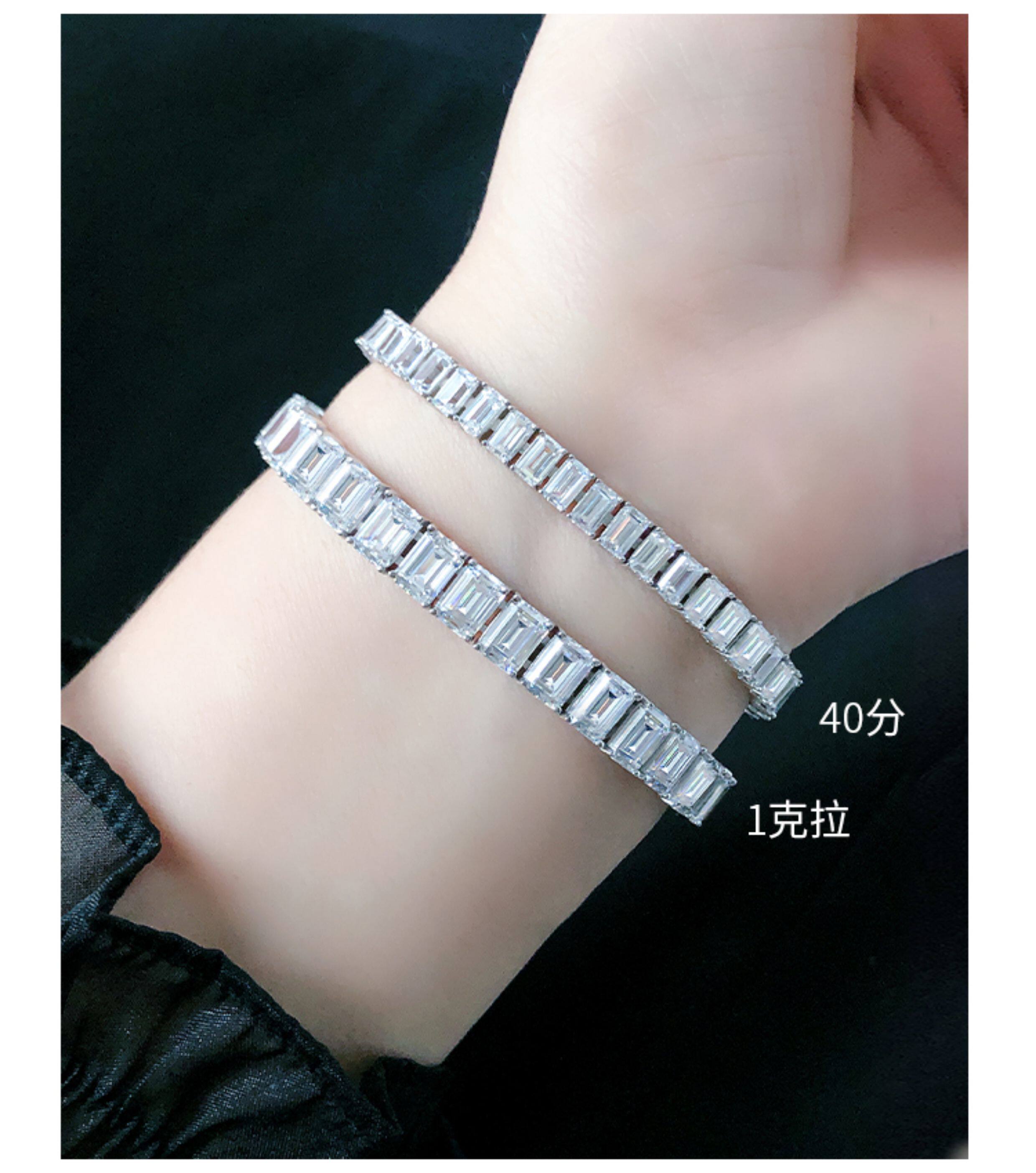 Light Luxury Sugar Cube Moissanite Bracelet for Men and Women, Synthetic Emerald Cut Silver Plated with 18K Gold, Full Diamond Imitation Diamond Bracelet