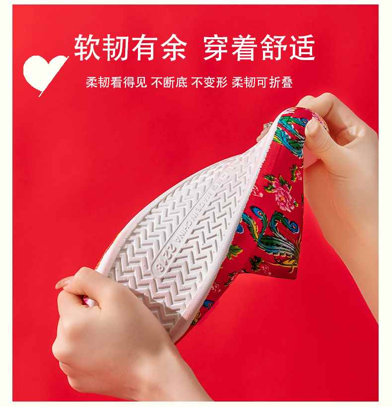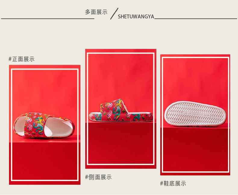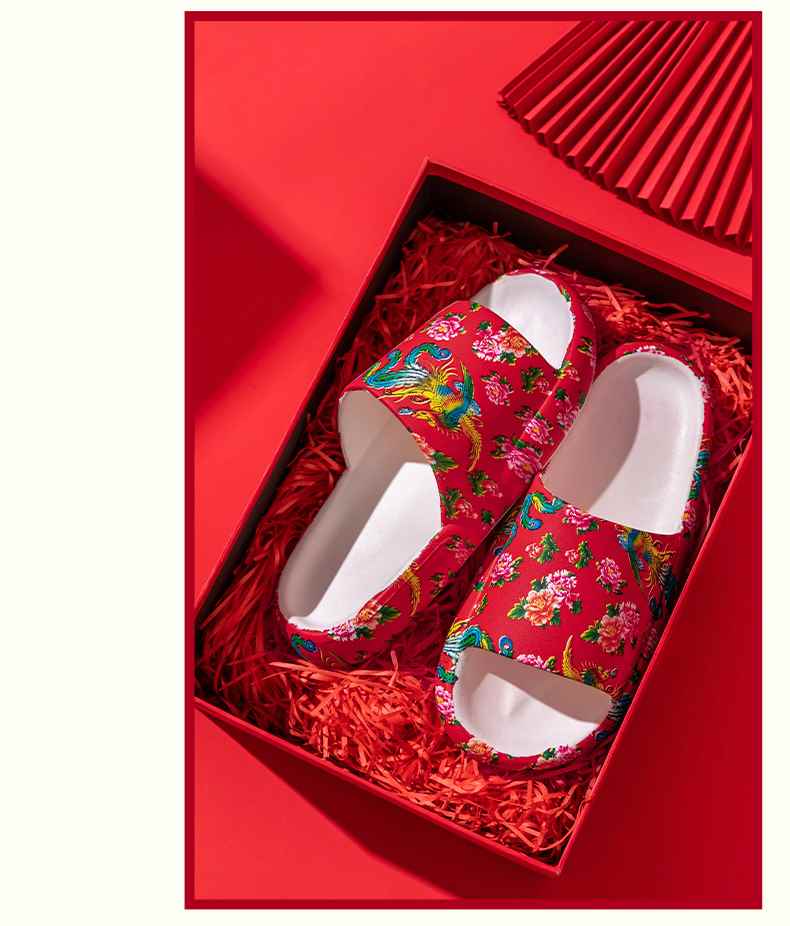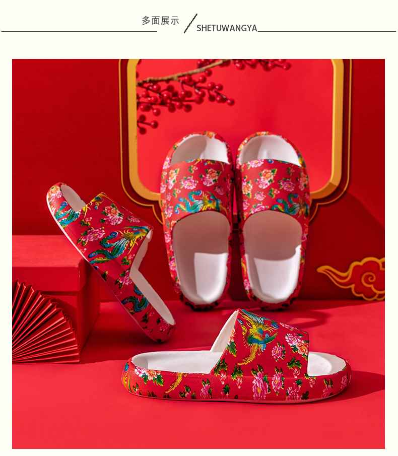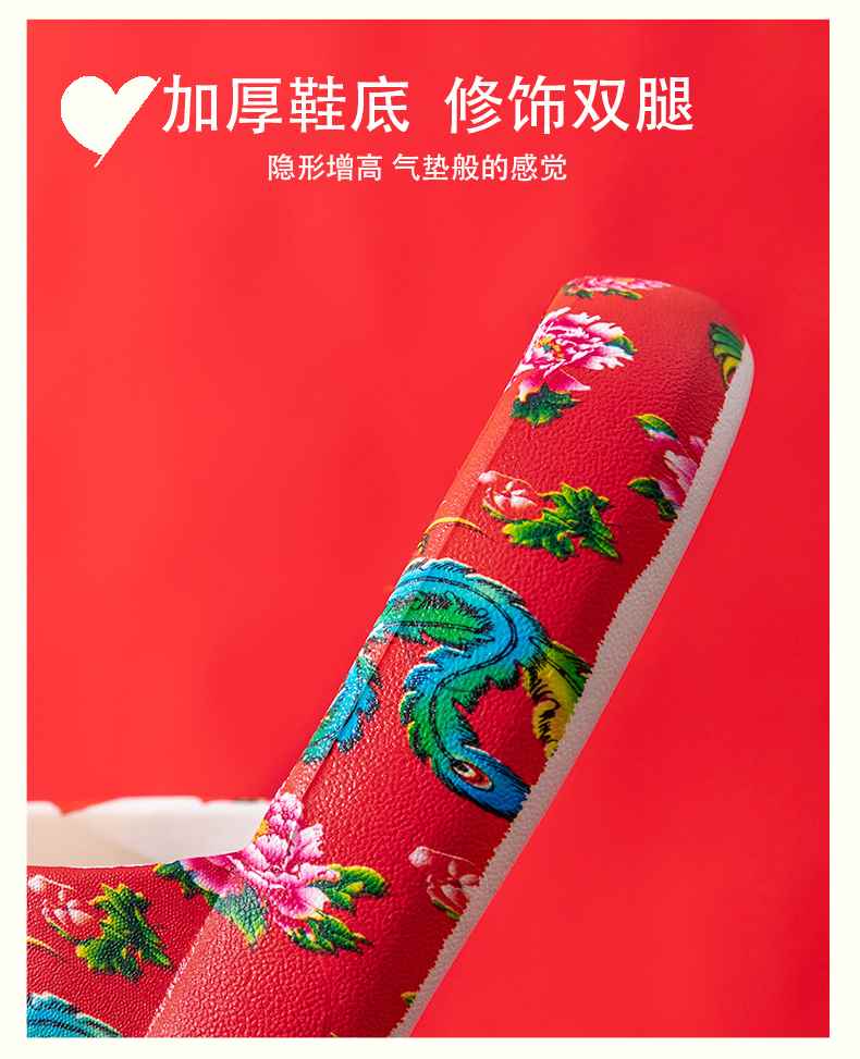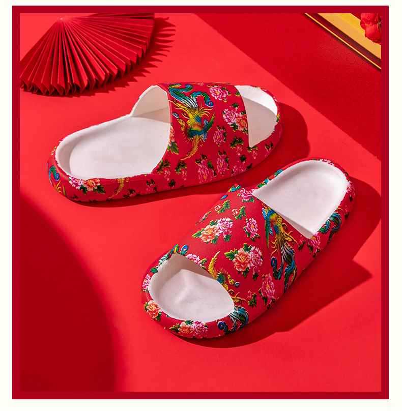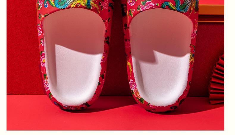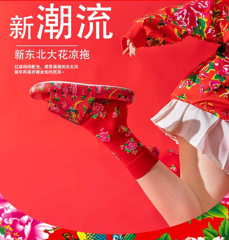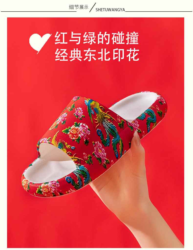 Northeastern Large Floral Slippers for Men, New Trendy Style for Outdoor Wear, Ins-Style Couple Slippers for Home Use, Soft Sole, Non-Slip, Color-Blocked Red and Green Summer Sandals
