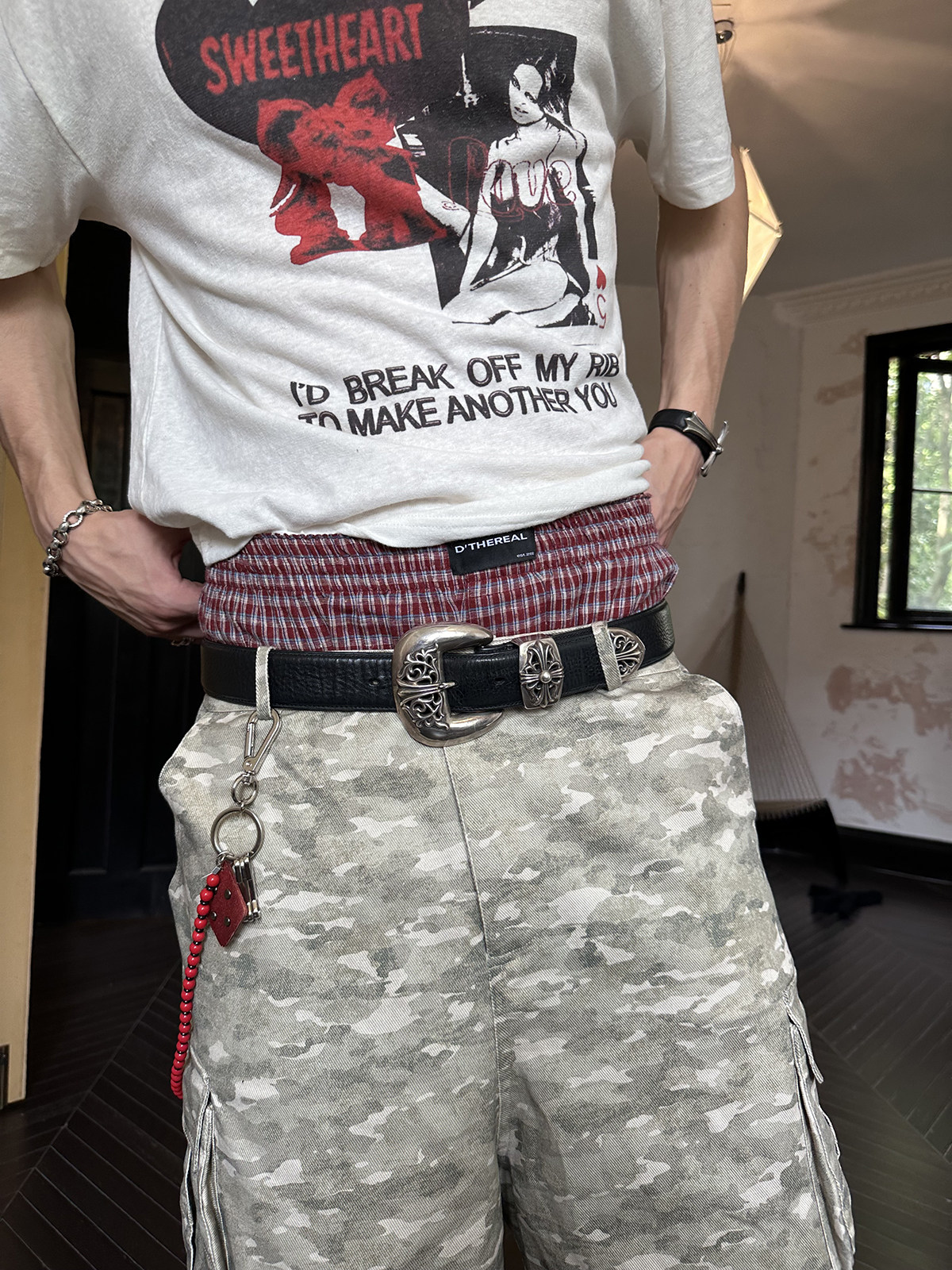 Dthereal 24Ss New Dark Red Plaid Comfortable Loose Linen Cotton Elastic Waist Boxer Shorts for Men