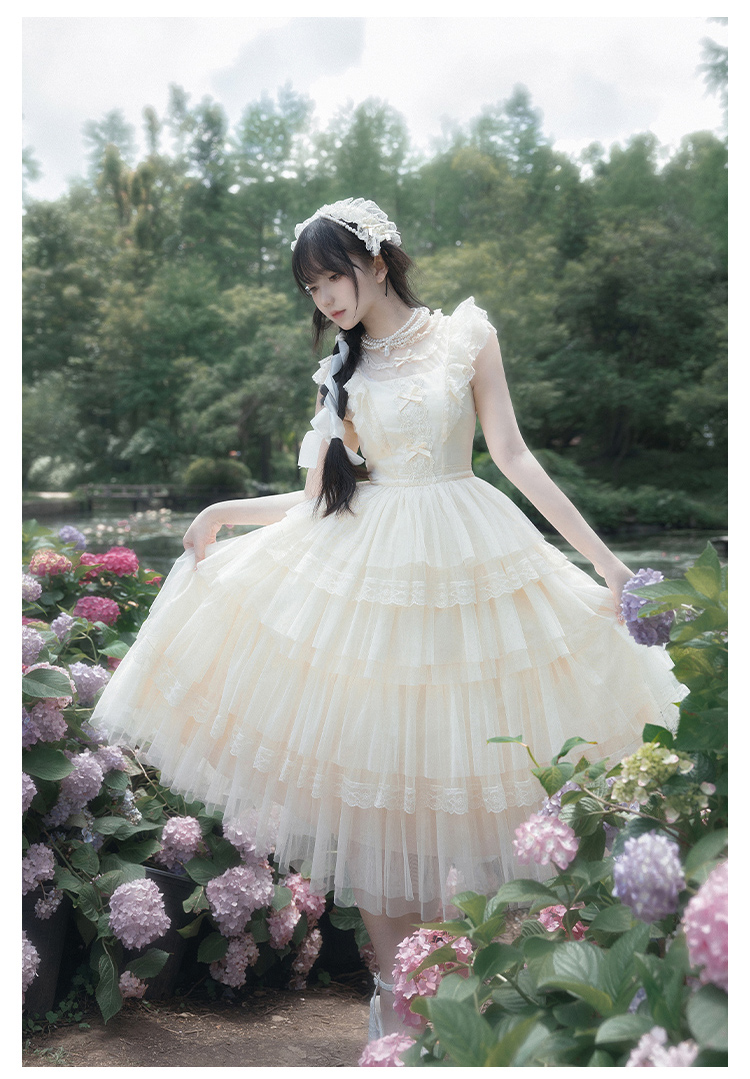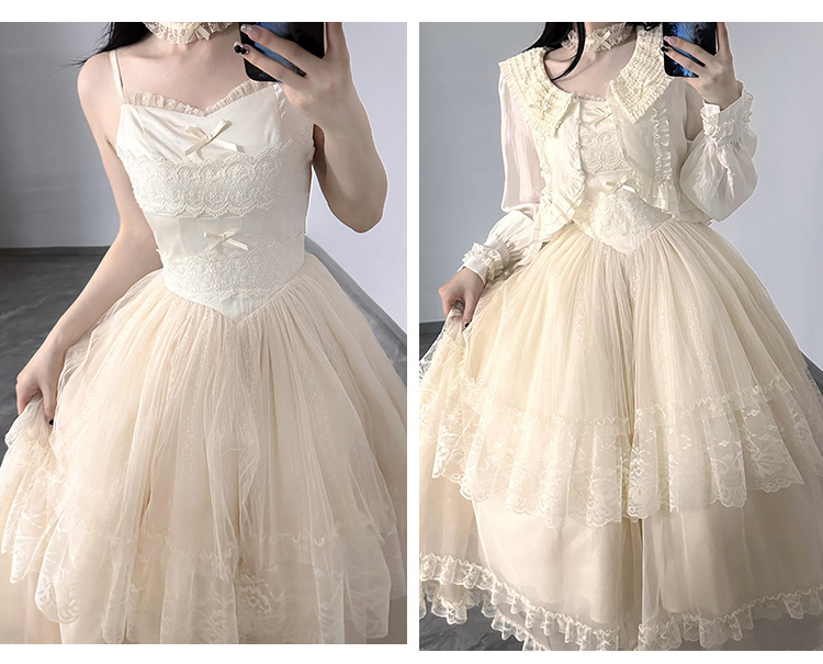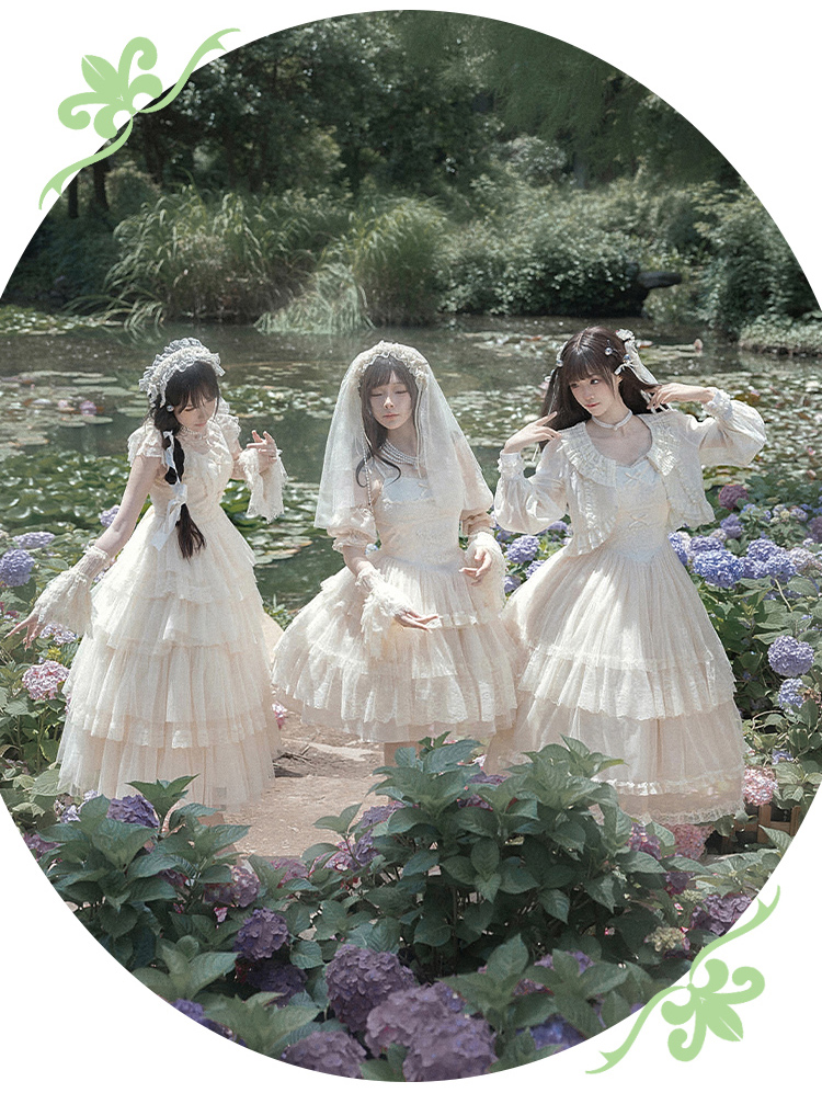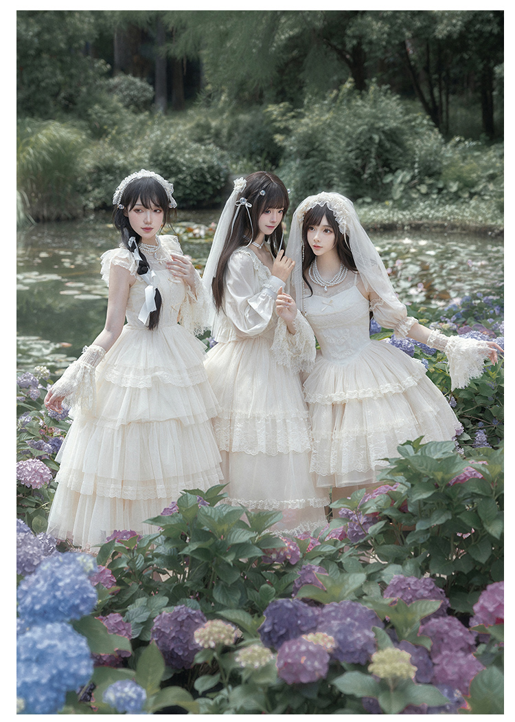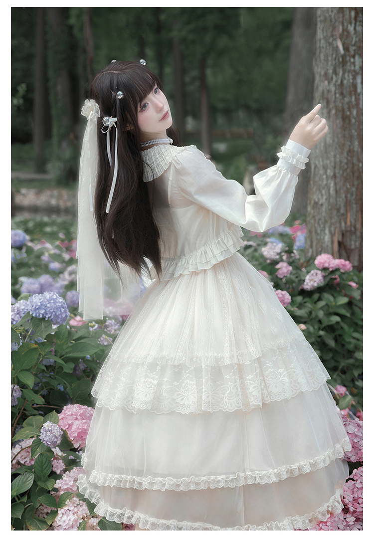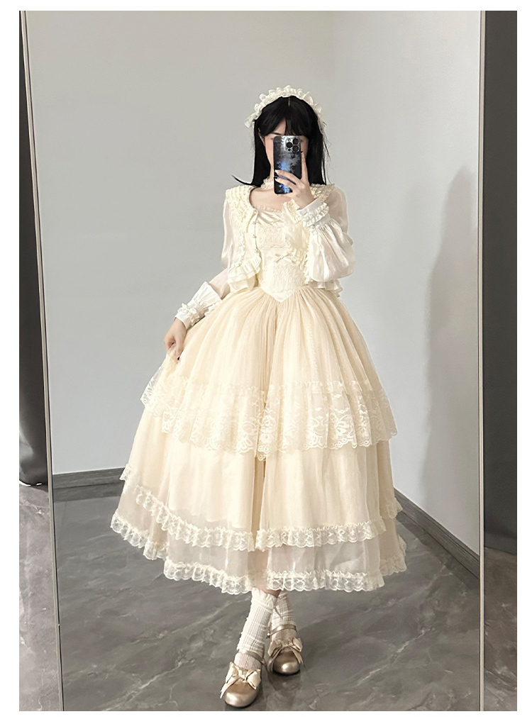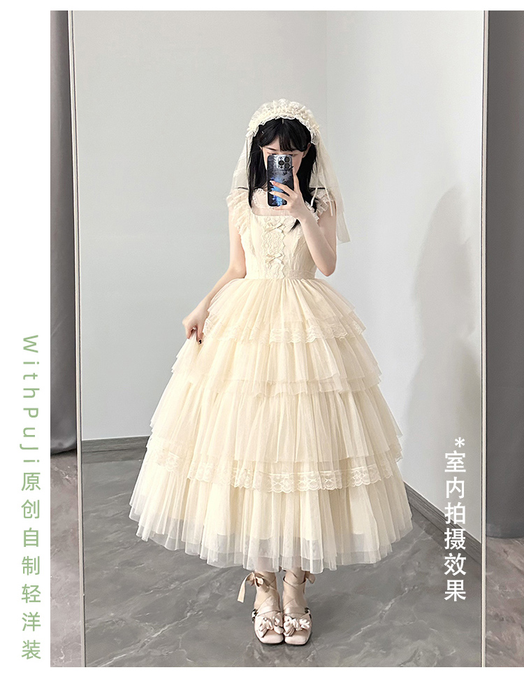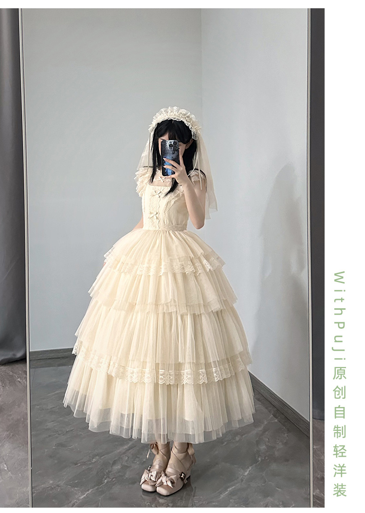 【Ivory Tower】Withpuji Original Design Cla Dreamy Large Skirt with Tulle Op/Jsk Three-Piece Lolita Dress