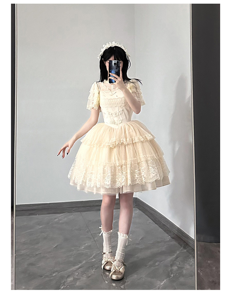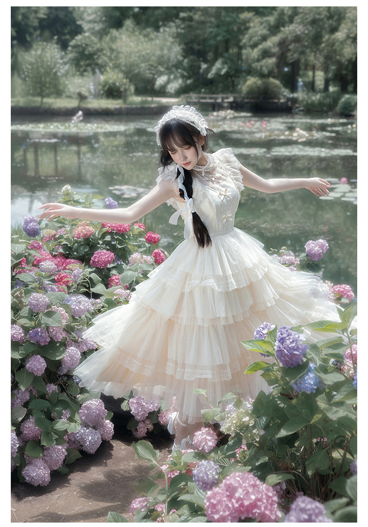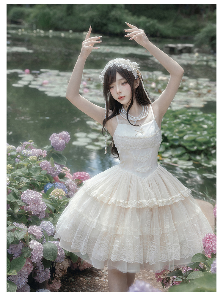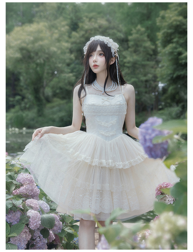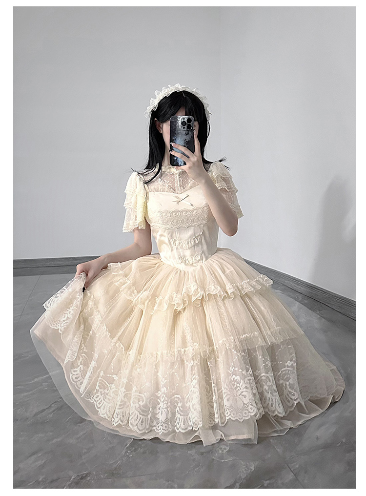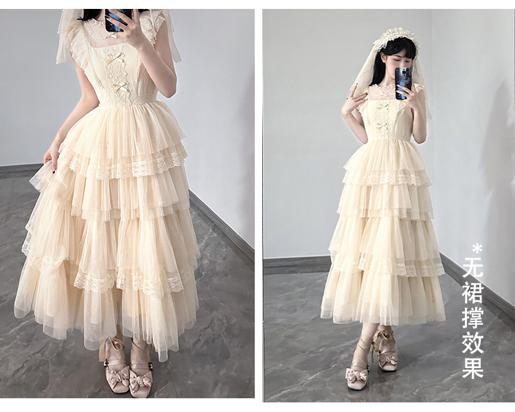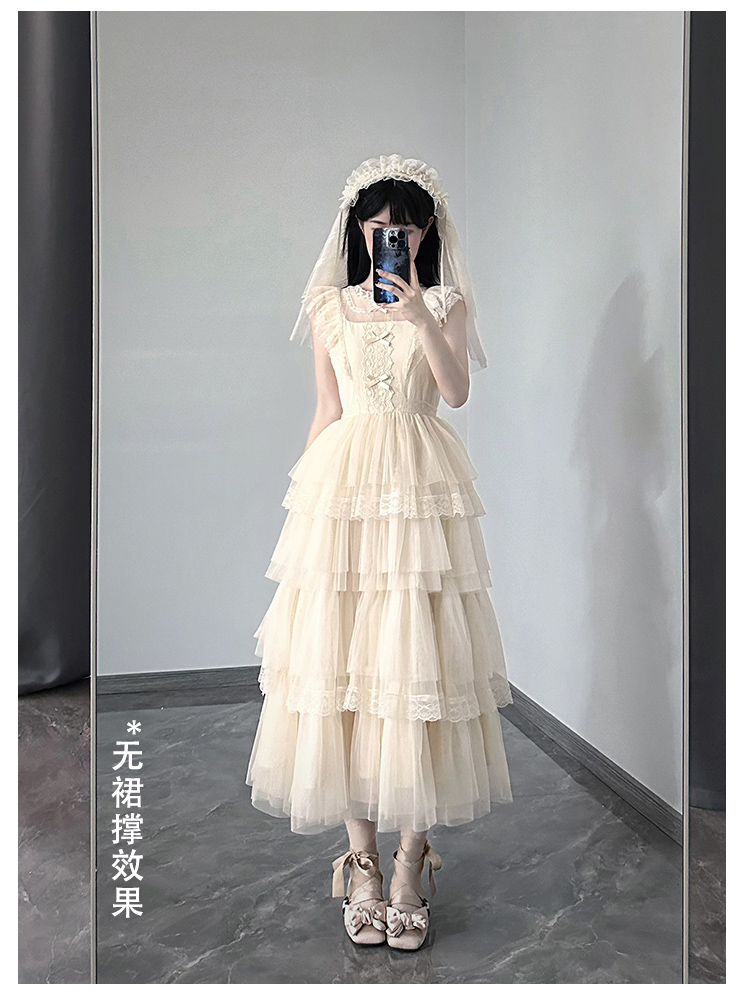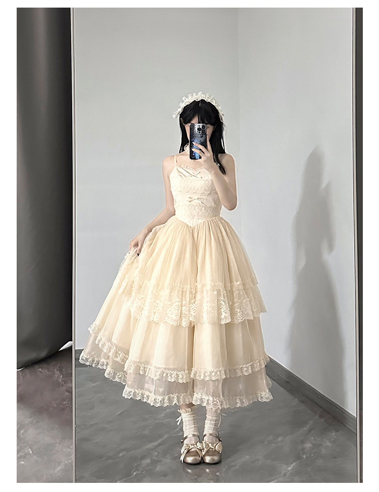 【Ivory Tower】Withpuji Original Design Cla Dreamy Large Skirt with Tulle Op/Jsk Three-Piece Lolita Dress