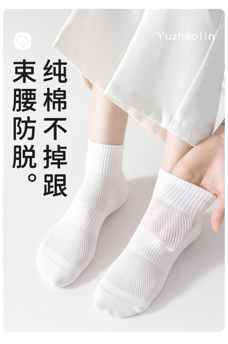 Seamless Socks for Women, Short Socks, Summer Thin Mesh, Cool and Breathable, Pure Cotton, Seamless Mid-Calf Socks, Summer Short Socks