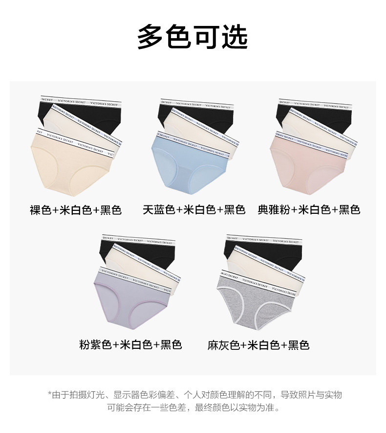 Victoria's Secret 3-Piece Set of Fashionable and Comfortable Cotton Logo Letter Belt Mid-Waist Sexy Briefs for Women