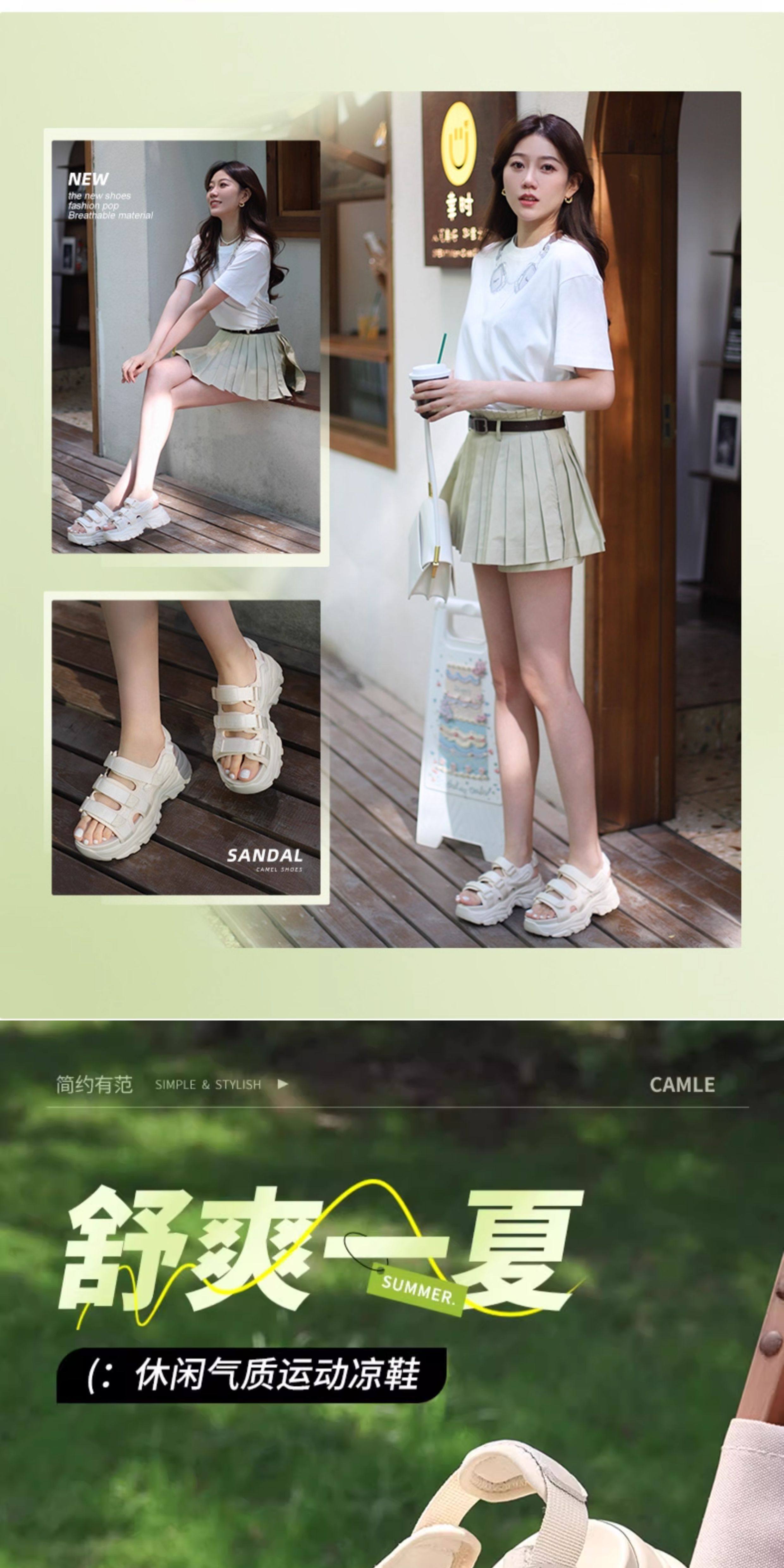 Camel Women's Shoes 2026 Summer New Thick-Soled Sandals Women's Dad-Style Sports Thickened Beach Shoes Women's Shoes Clearance Sale