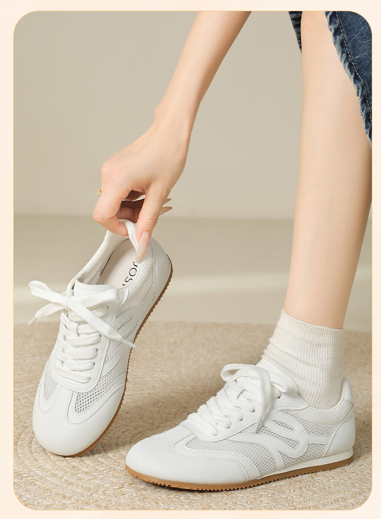 Zhuoshini Soft-Soled Versatile White Shoes for Women, Breathable Ballet-Style Retro Casual Shoes, Women's Flat German Training Shoes