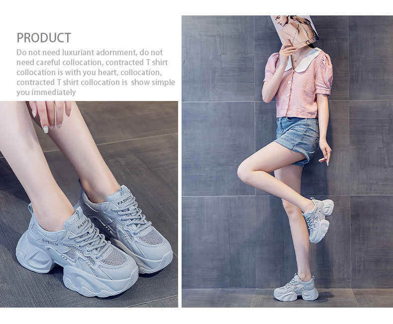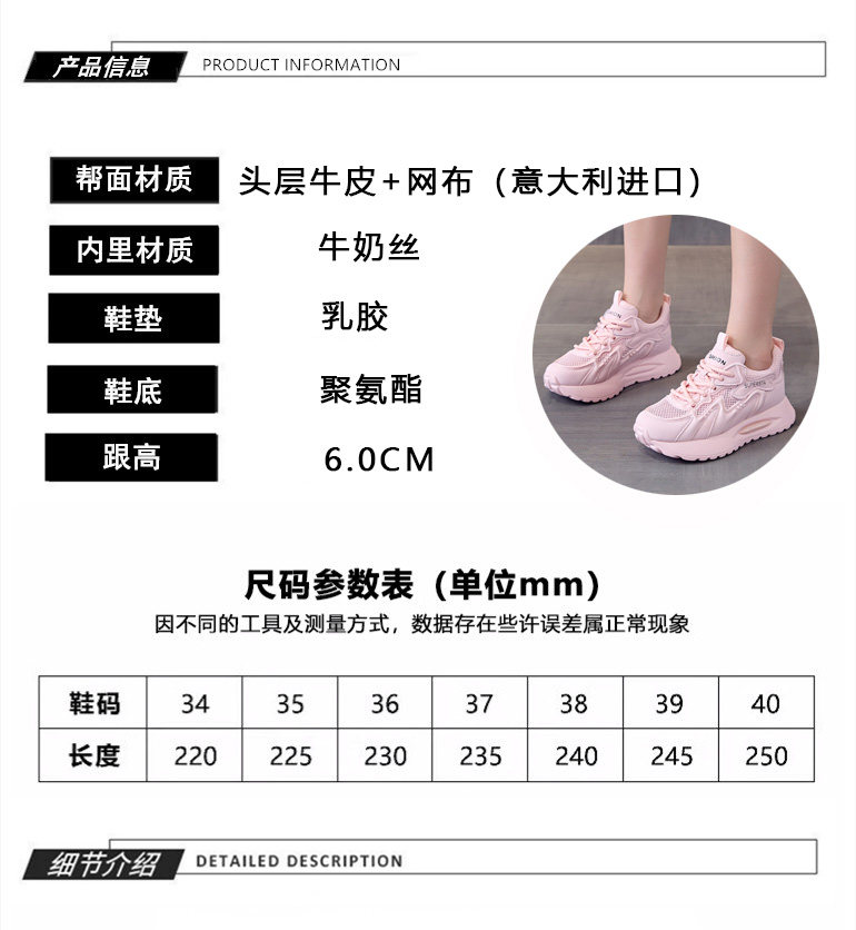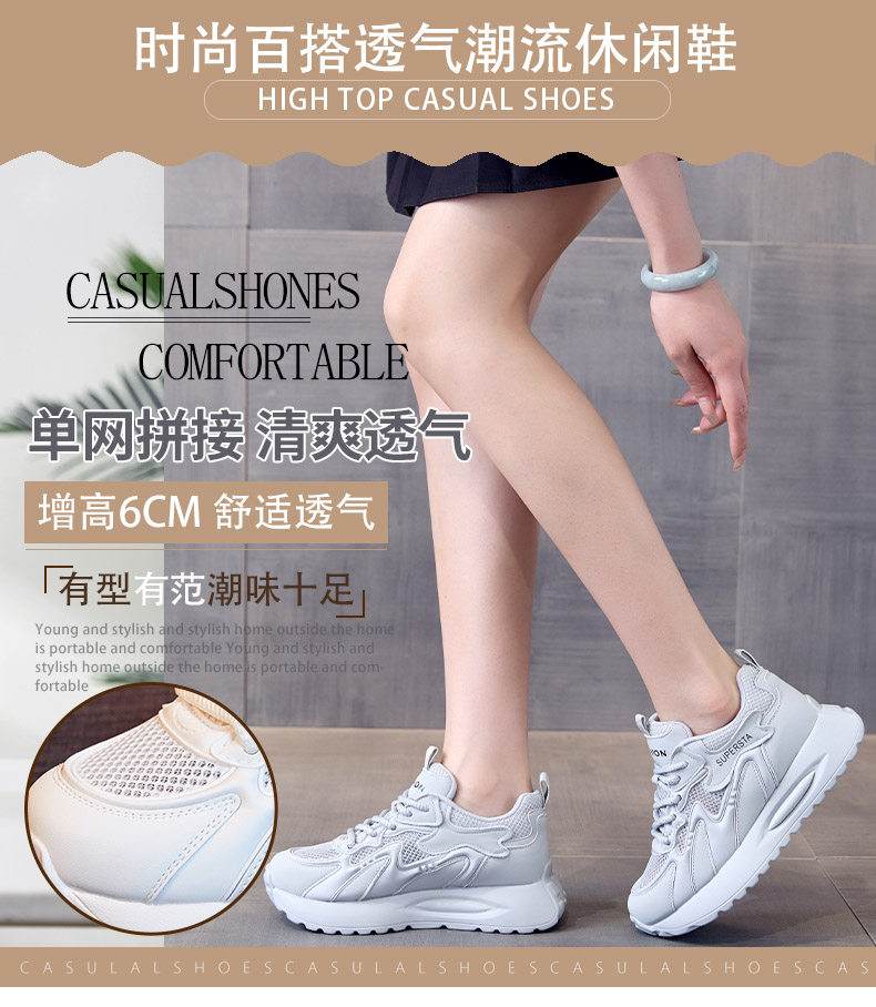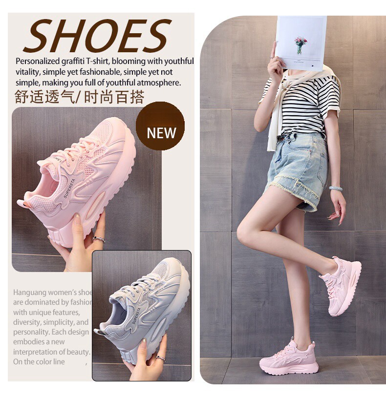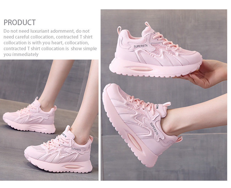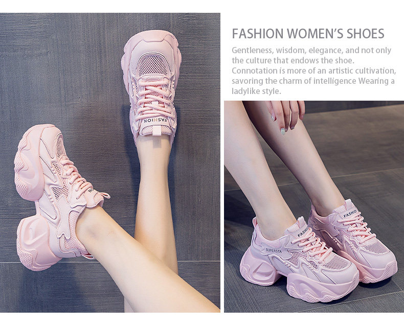 Hong Kong Women's Breathable Thin Mesh Shoes 2026 Spring/Summer Pink Height-Increasing Thick-Soled Versatile Lightweight Sports Casual Shoes
