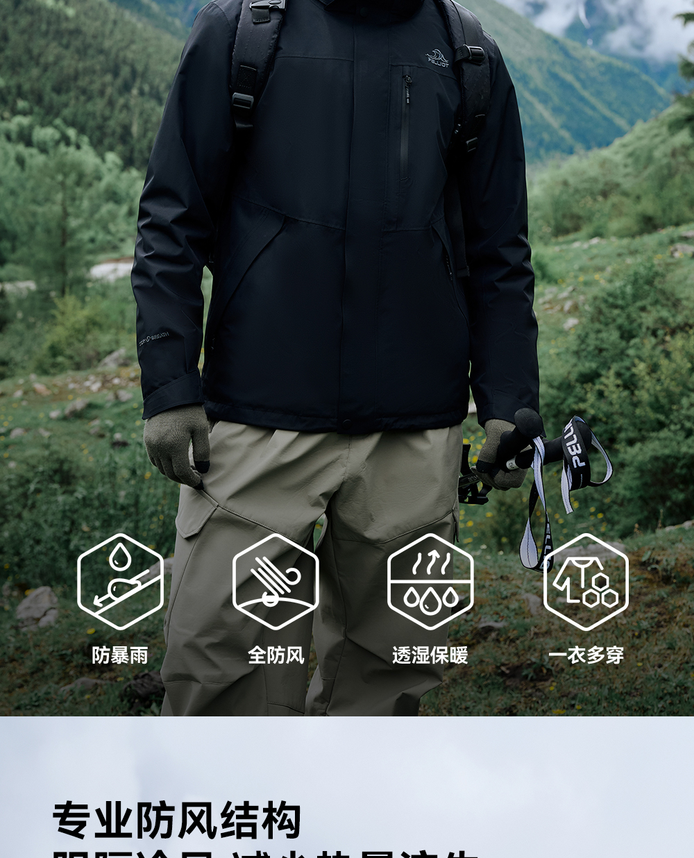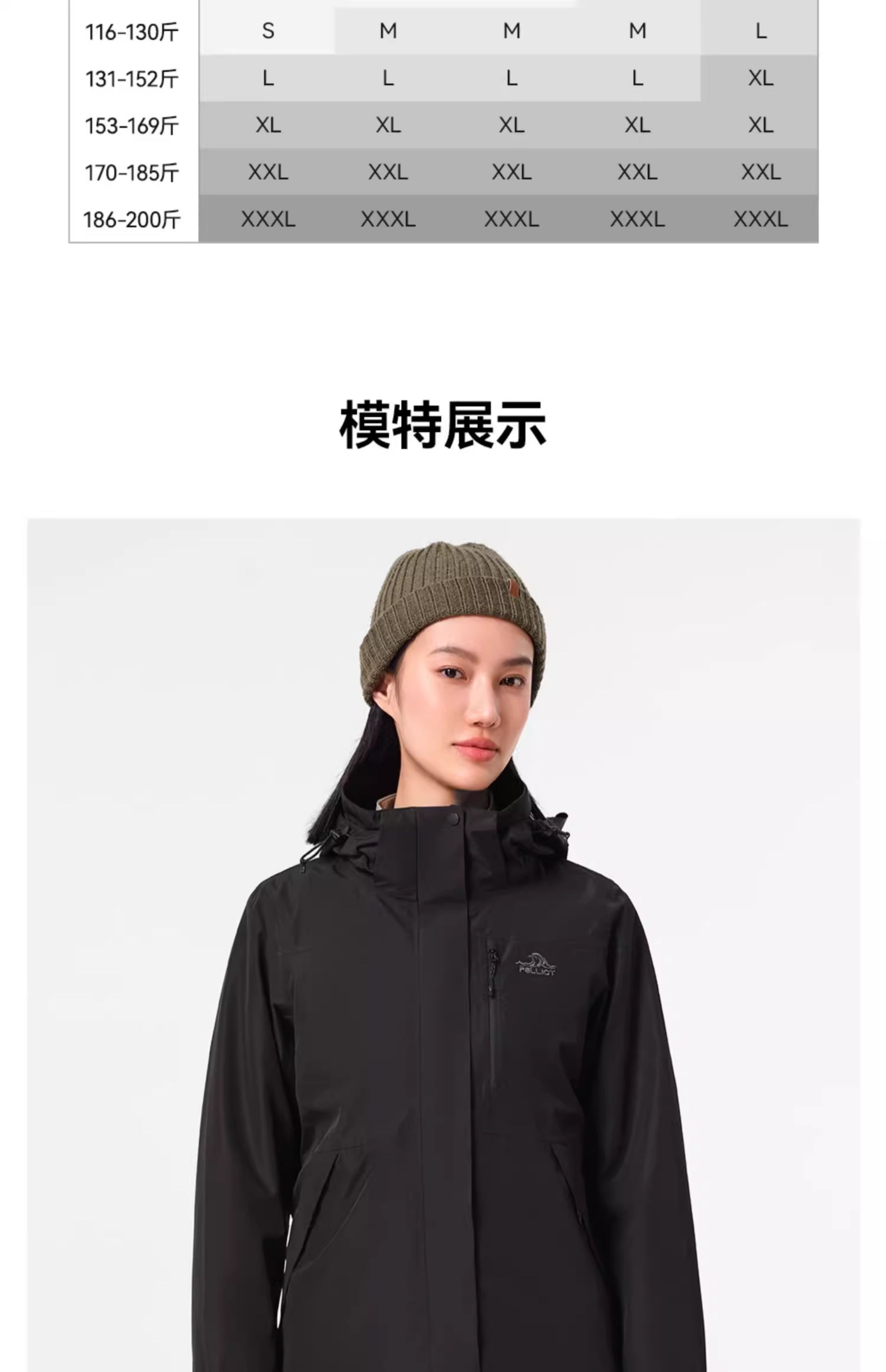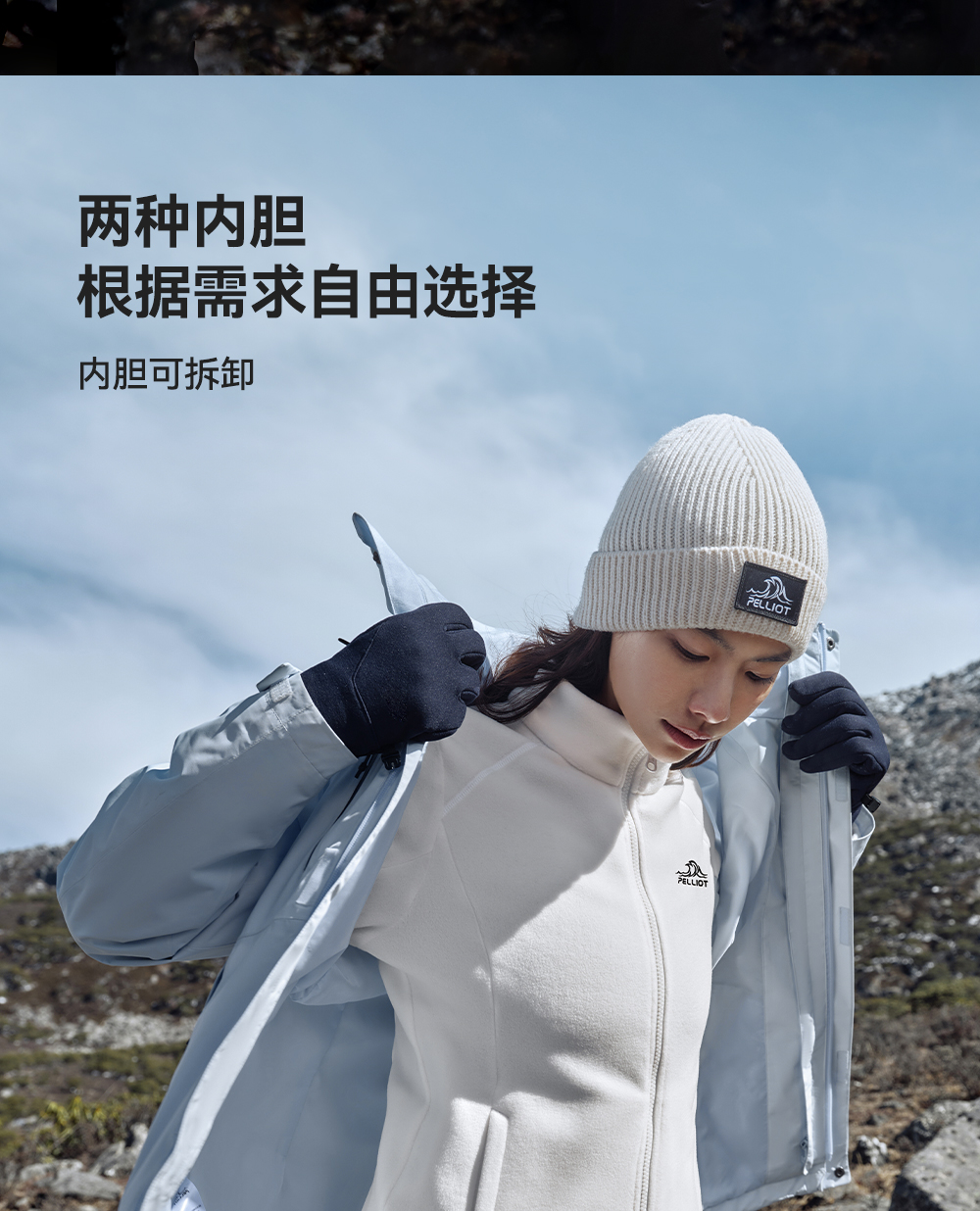 [Classic 2.0] Pelliot Mountain Jacket Women's 3-in-1 Outdoor Windproof Waterproof Mountaineering Ski Jacket Men's
