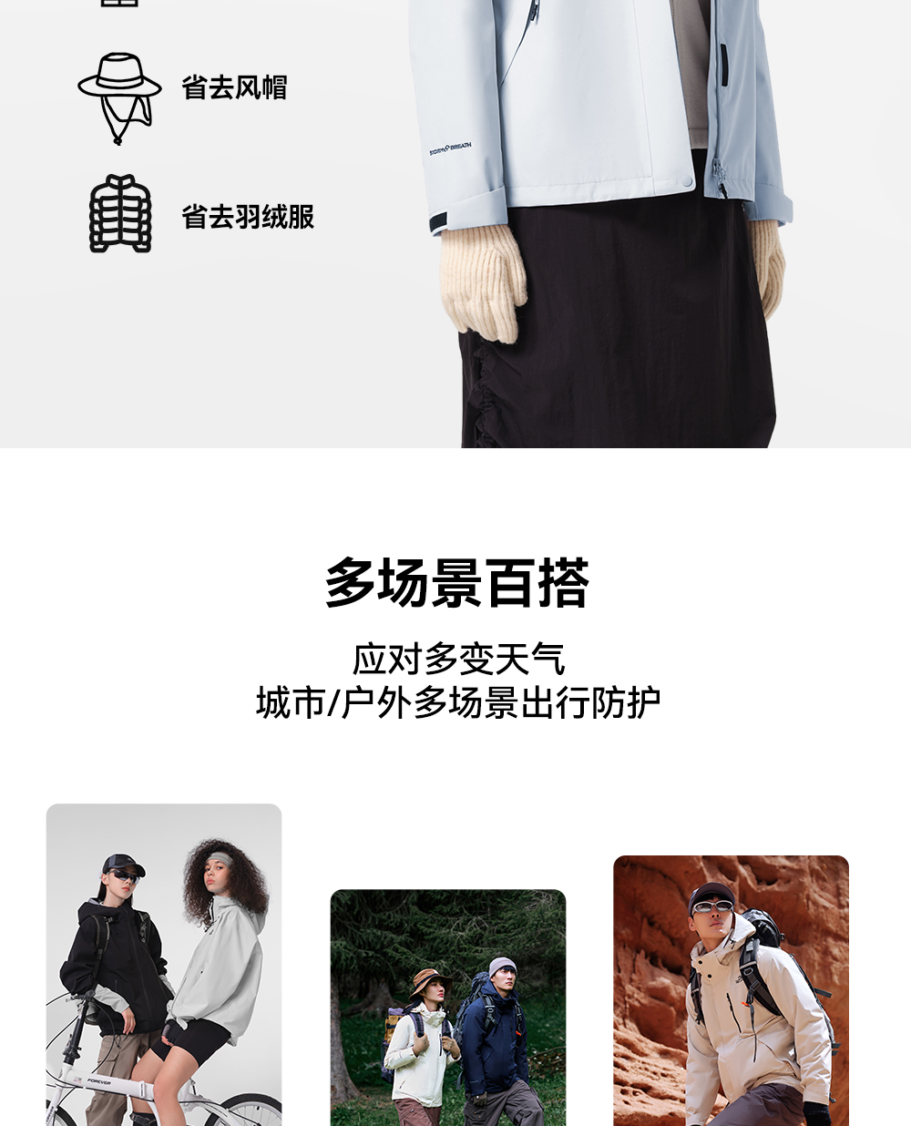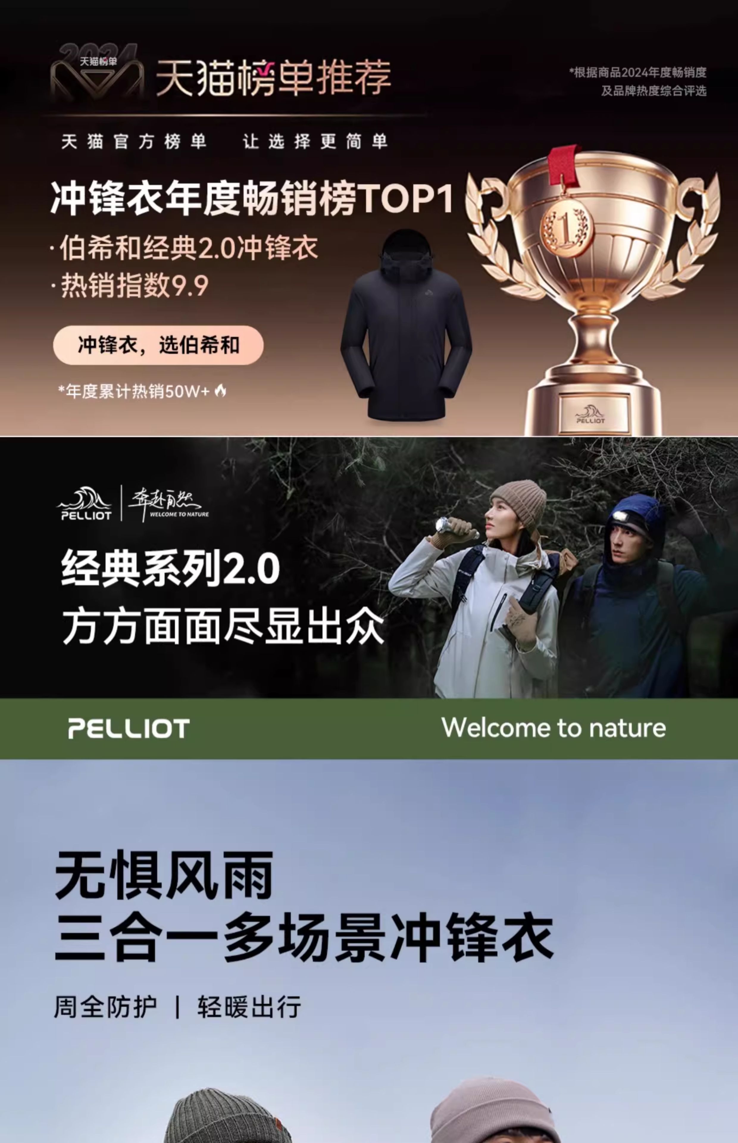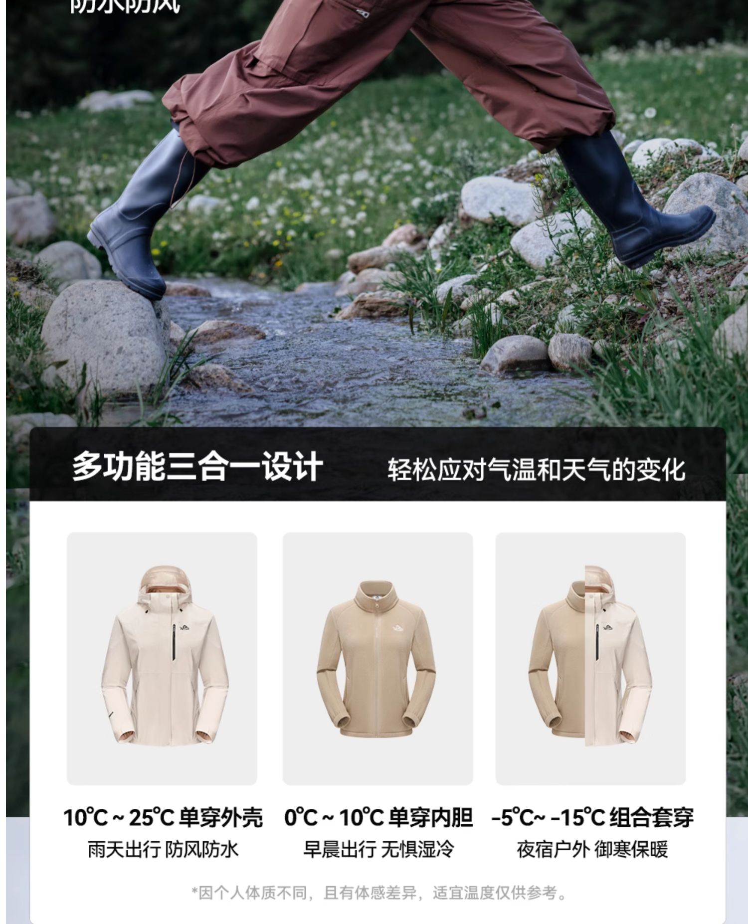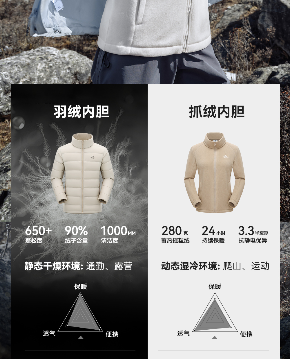 [Classic 2.0] Pelliot Mountain Jacket Women's 3-in-1 Outdoor Windproof Waterproof Mountaineering Ski Jacket Men's