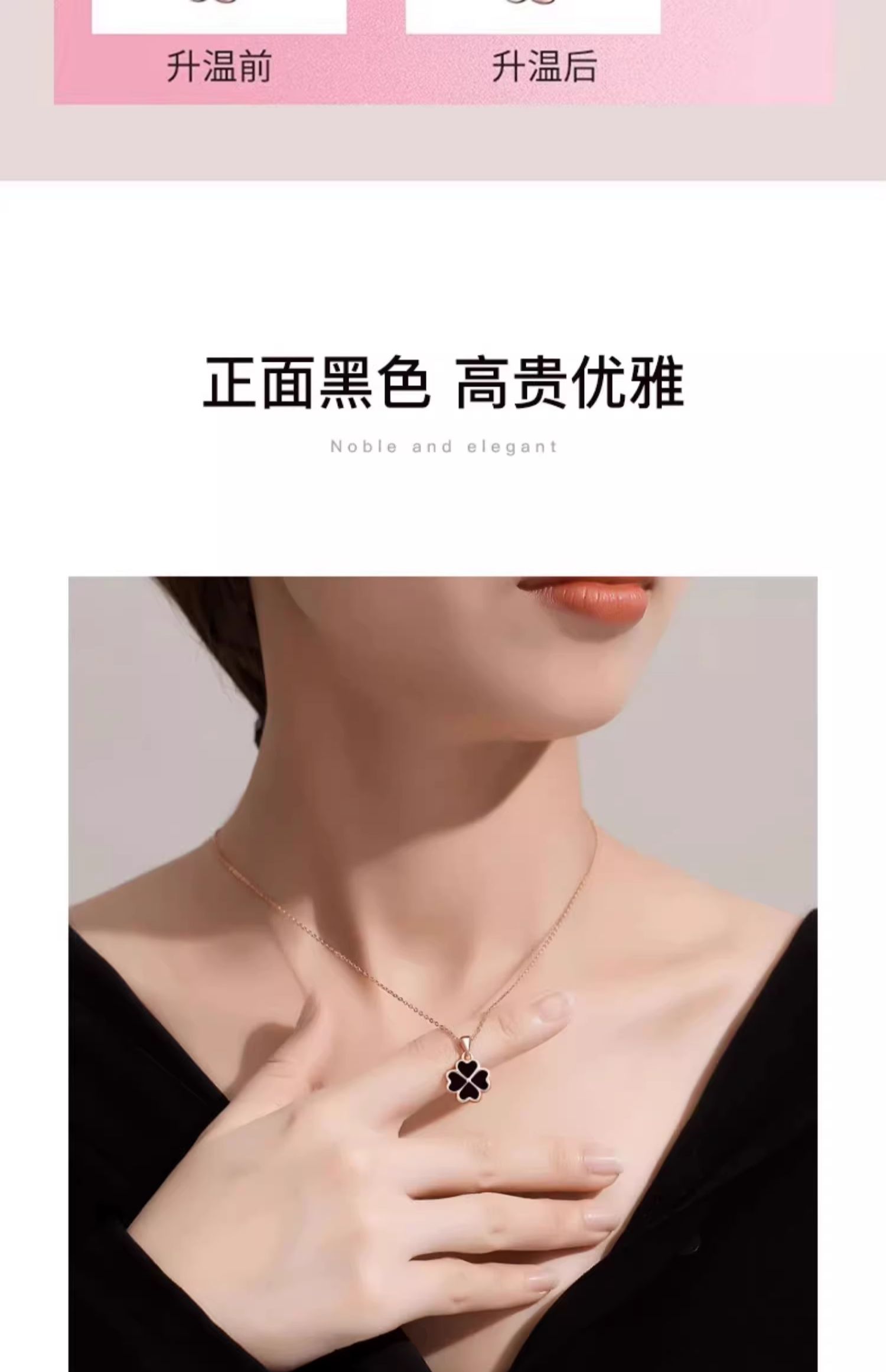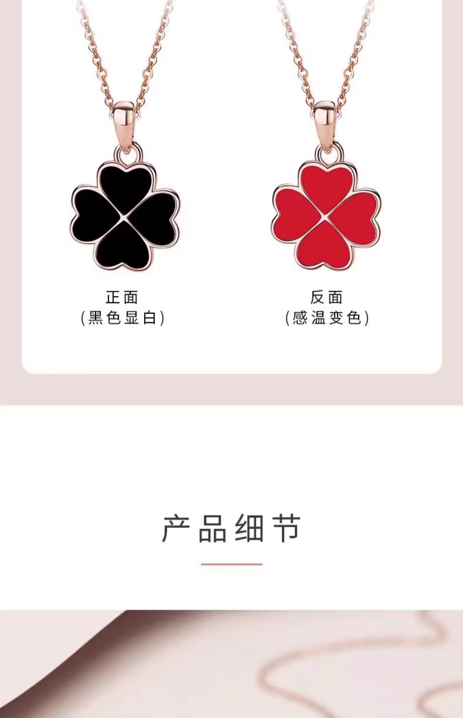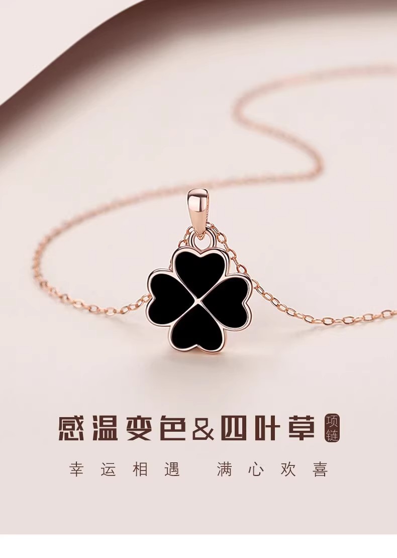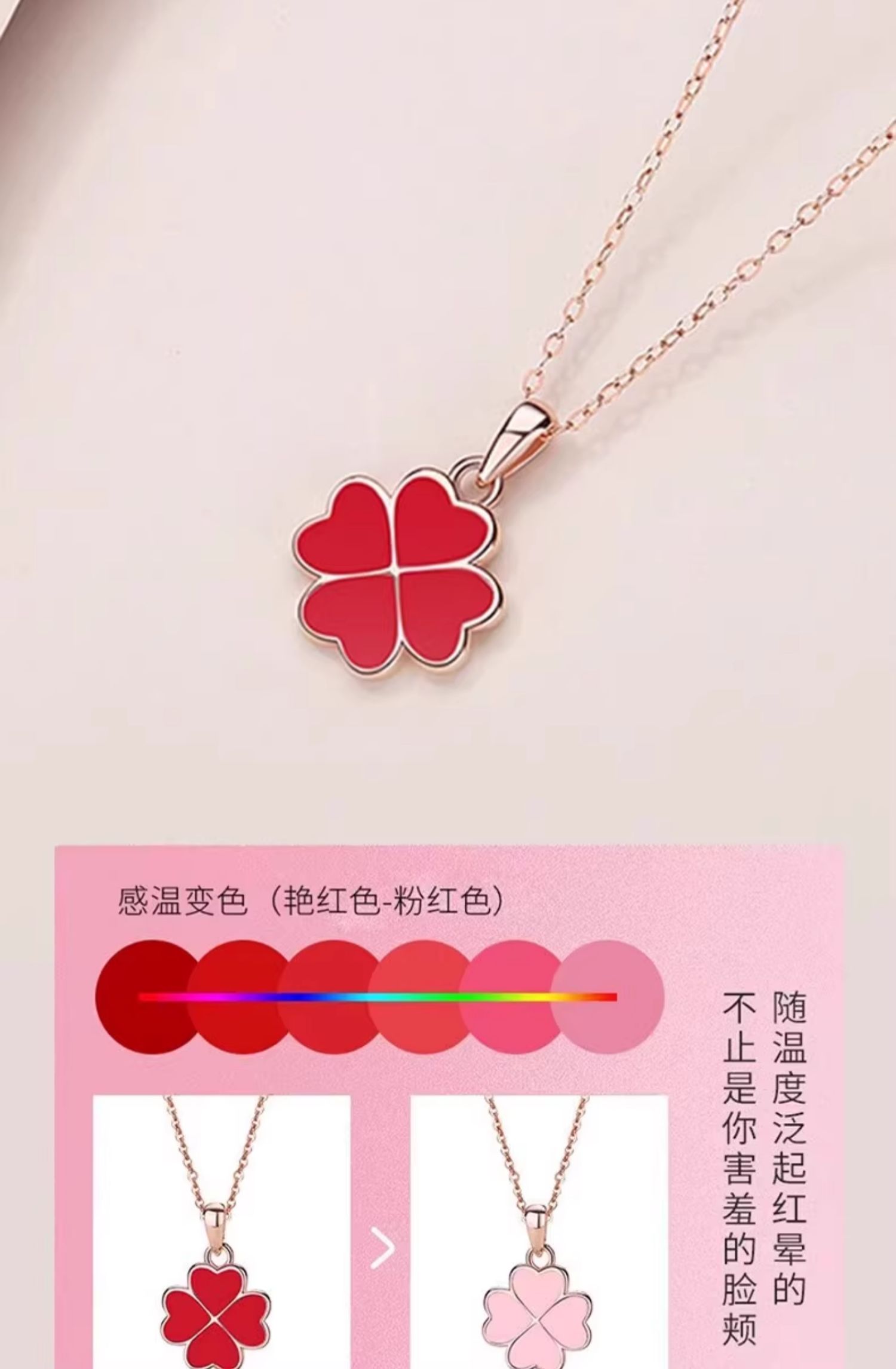 Sterling Silver Temperature-Sensitive Color-Changing Four-Leaf Clover Necklace for Women, Light Luxury 2025 New Hot Style, Valentine's Day Birthday Gift for Girlfriend