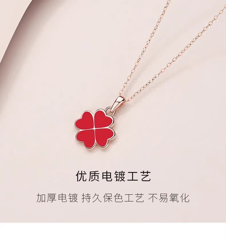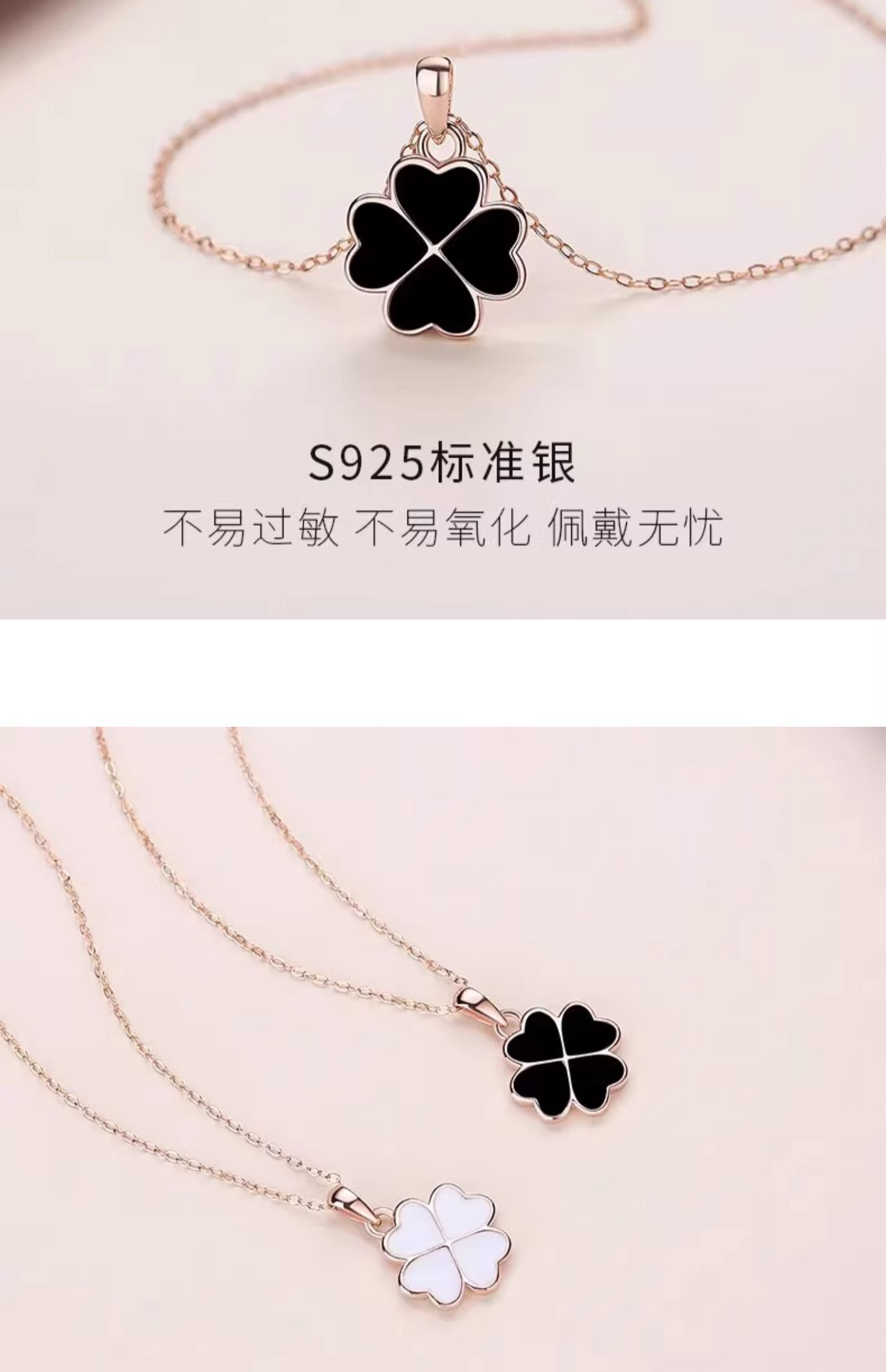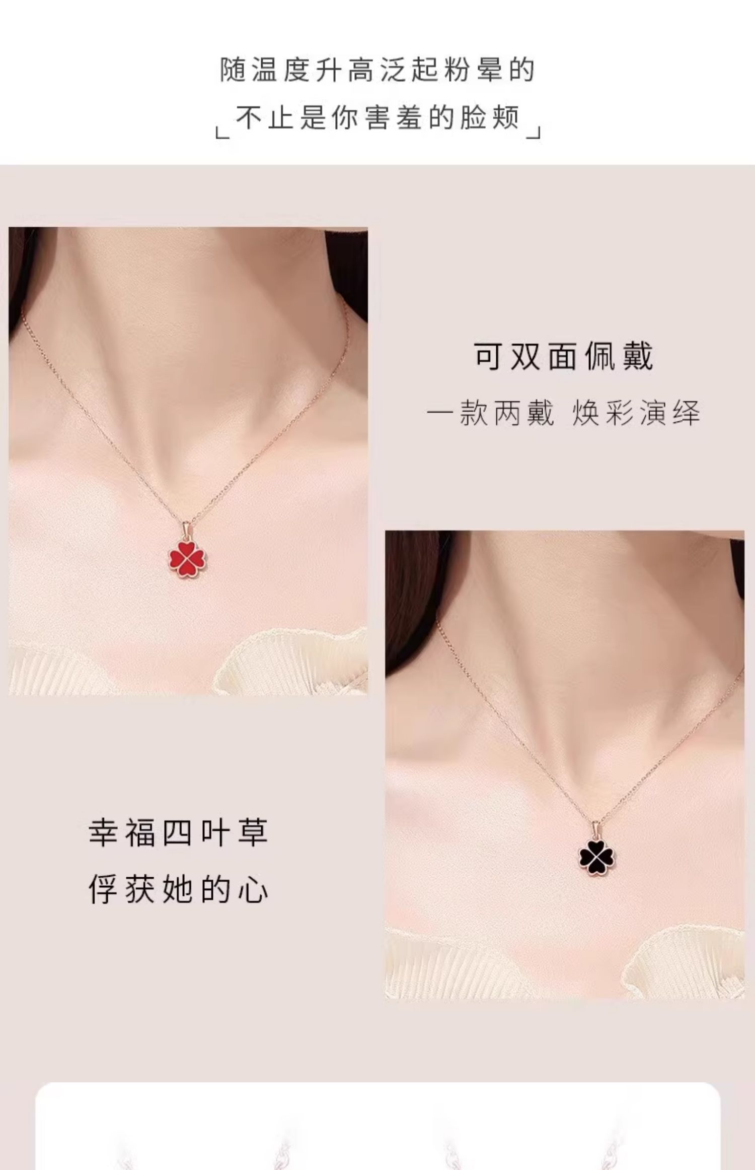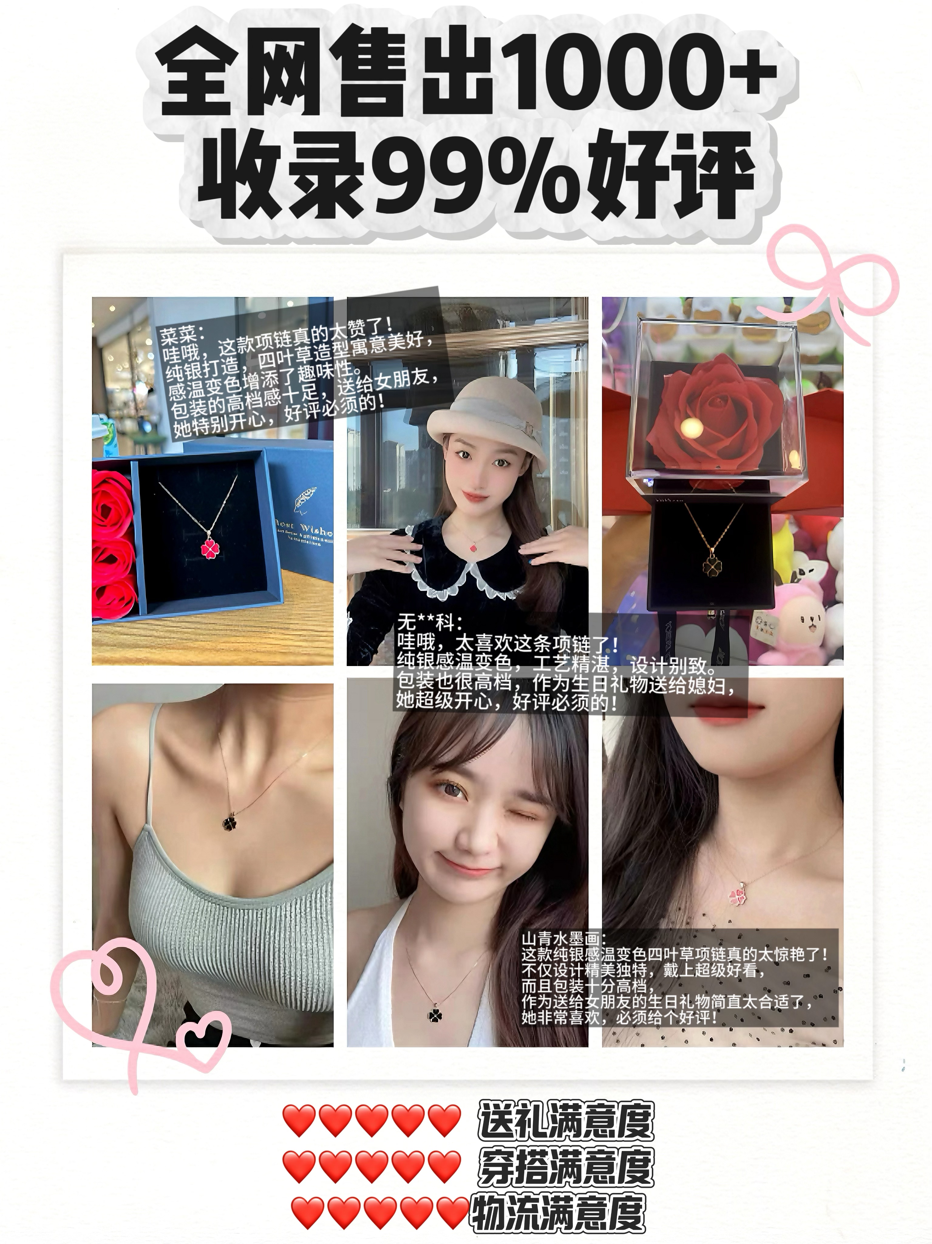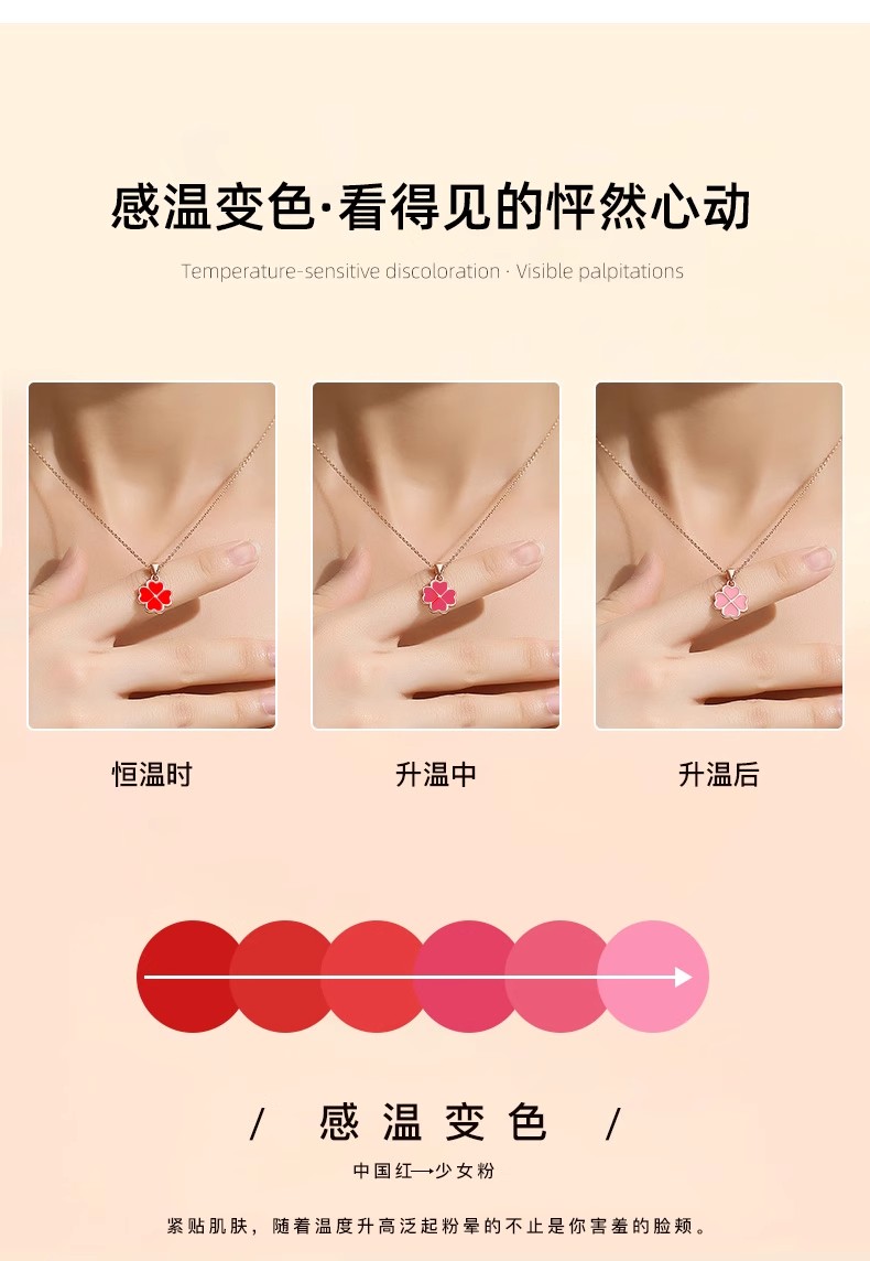Sterling Silver Temperature-Sensitive Color-Changing Four-Leaf Clover Necklace for Women, Light Luxury 2025 New Hot Style, Valentine's Day Birthday Gift for Girlfriend
