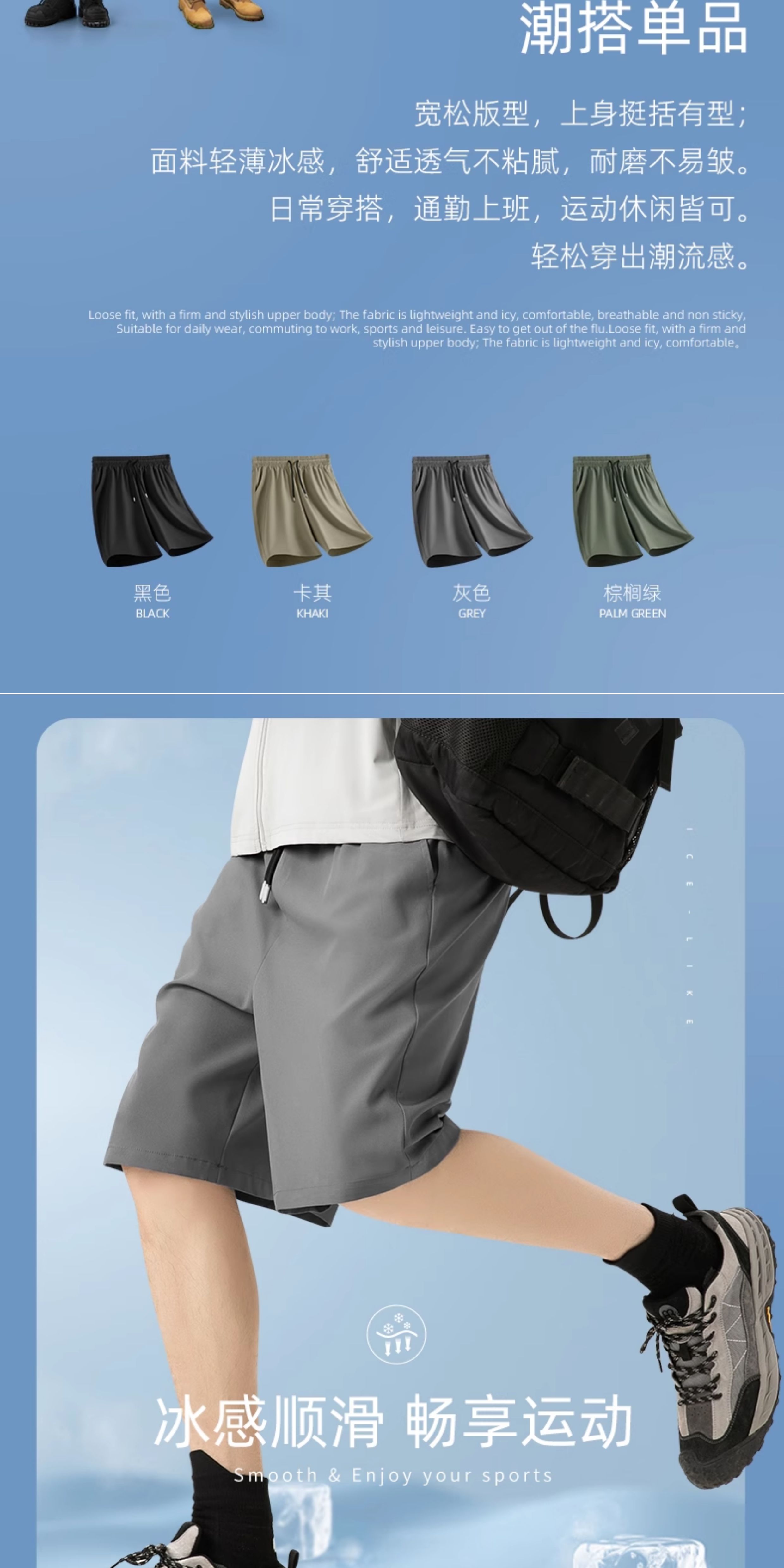 Jeanswest Ice Silk Shorts for Men, Summer Lightweight Quick-Drying Sweat-Absorbing Five-Point Shorts, Men's Outdoor Mountain-Style Casual Sports Pants F