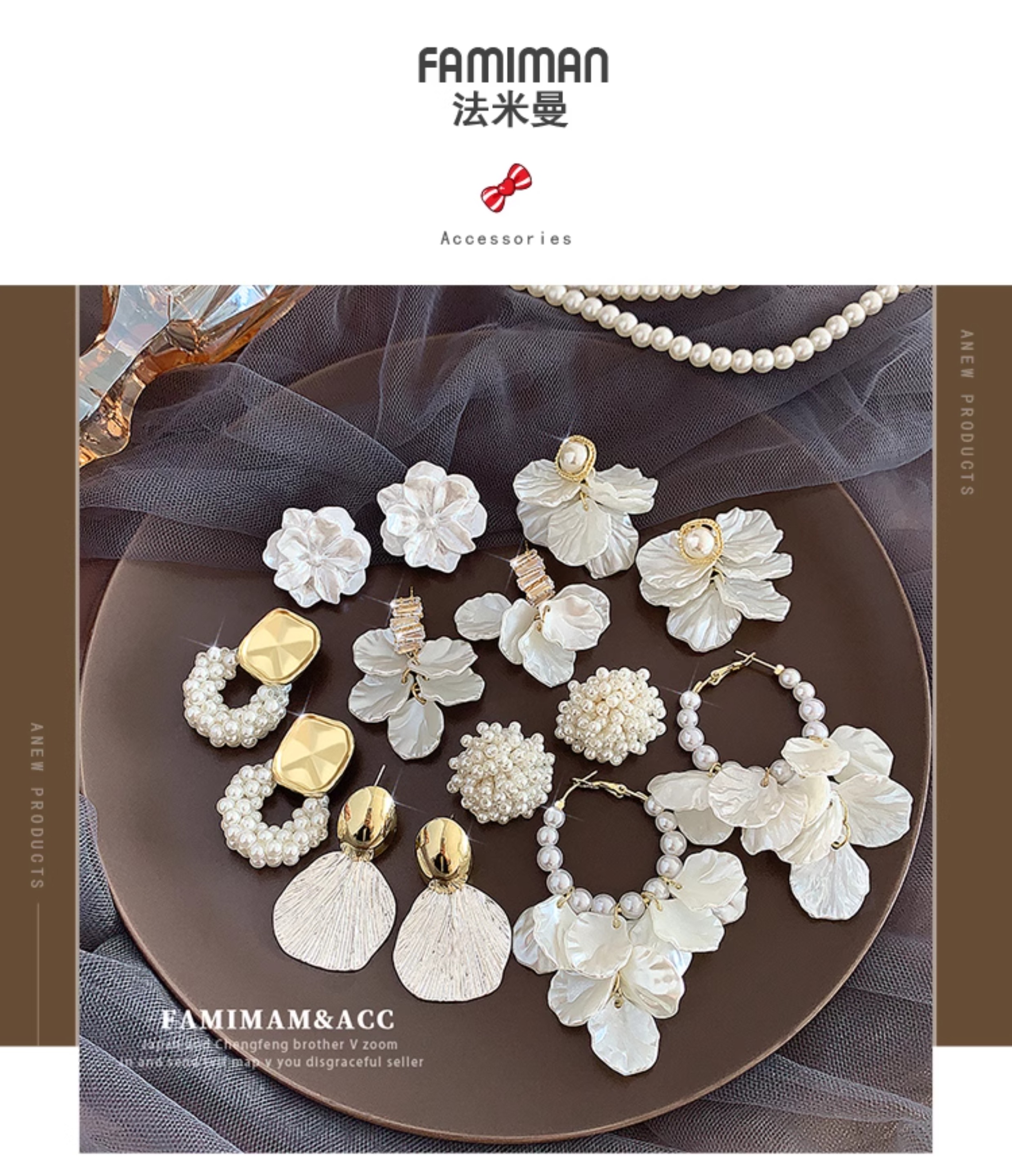 White Flower Tassel Long Earrings 2024 New Popular High-End Beaded Shell Earrings for Women Super Fairy-Like Ear Studs
