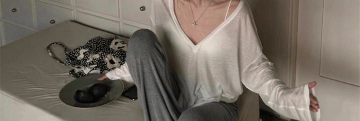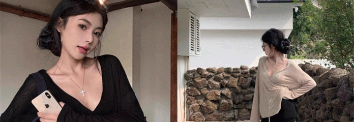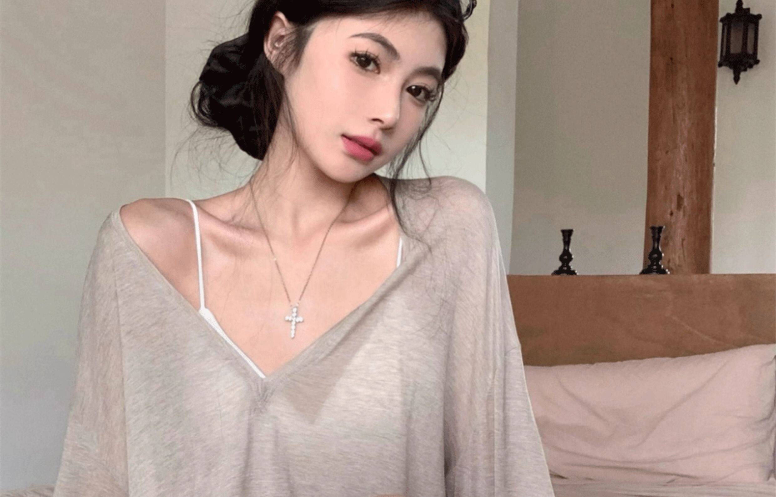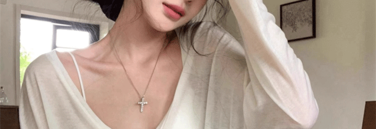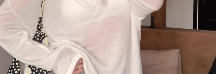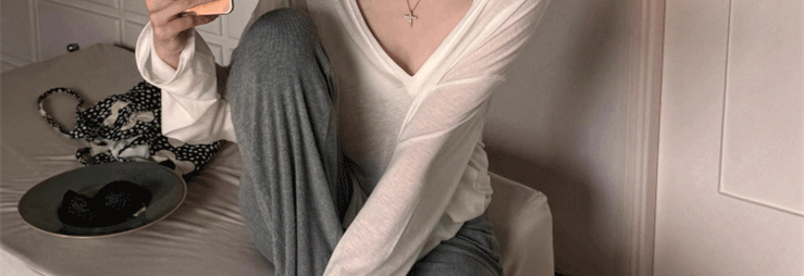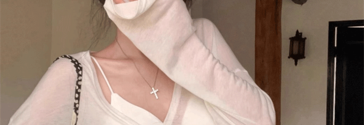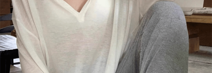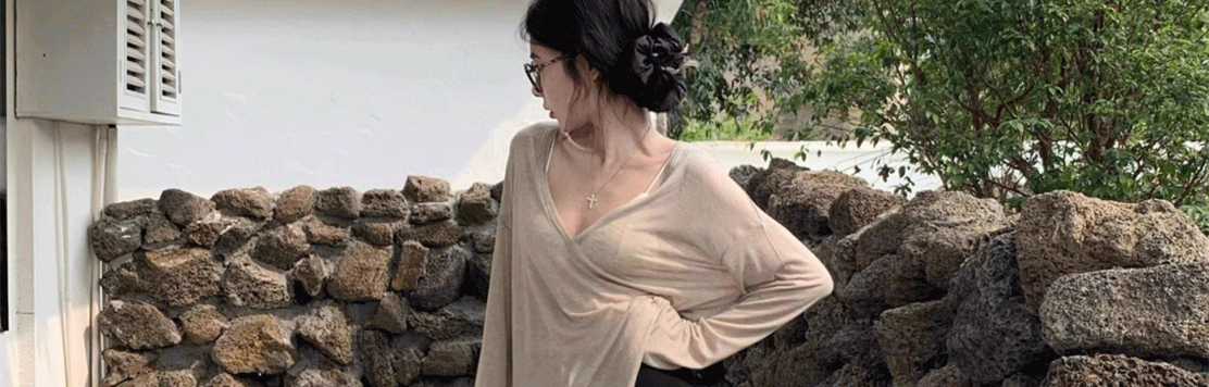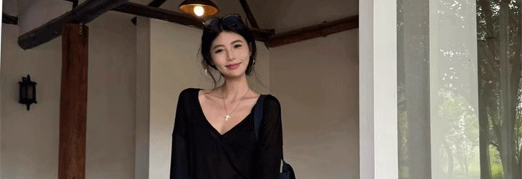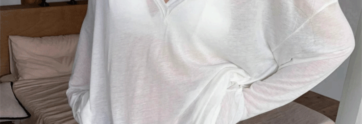 Relaxed and Lazy Style V-Neck Loose Pullover Long-Sleeve Sun-Protective T-Shirt for Women, Summer Thin Cover-Up Air-Conditioning Shirt Top
