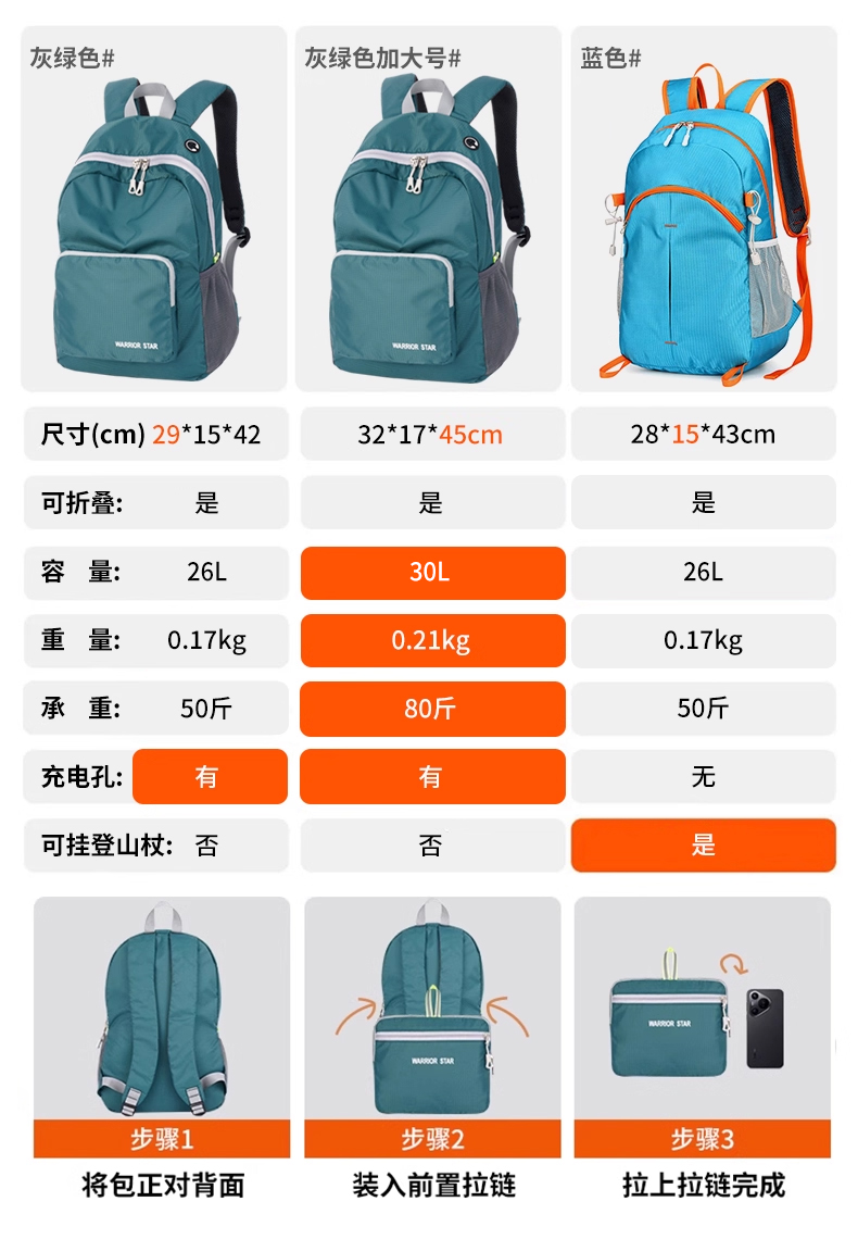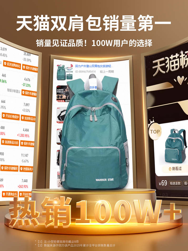Pull-Back Outdoor Mountaineering Backpack for Women, Lightweight, Large-Capacity Travel Backpack, Foldable, Ultra-Light and Waterproof