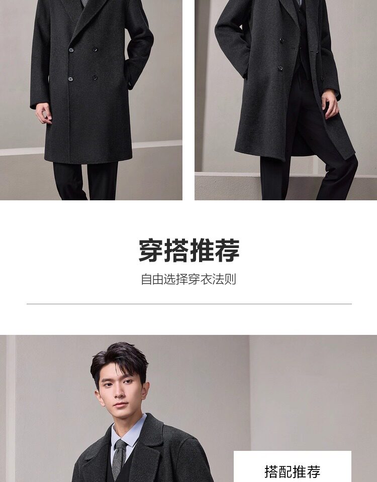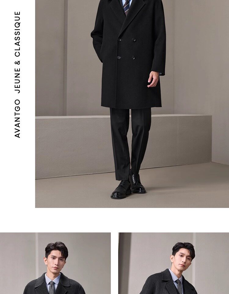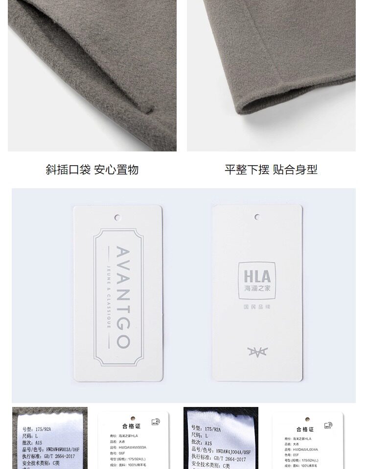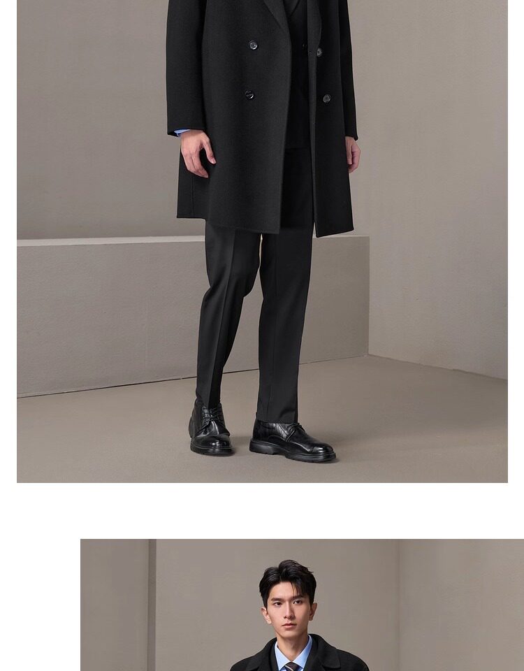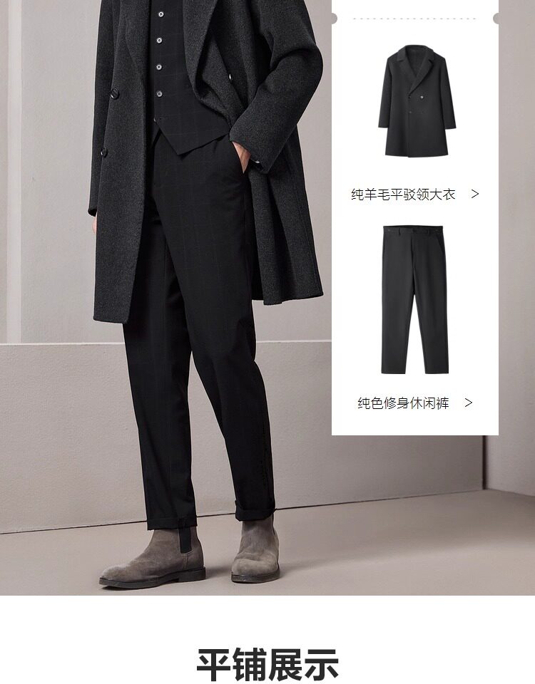Hla/Hailan Home Light Business Long Pure Wool Coat Autumn/Winter New Notched Lapel Warm Thick Black Jacket for Men