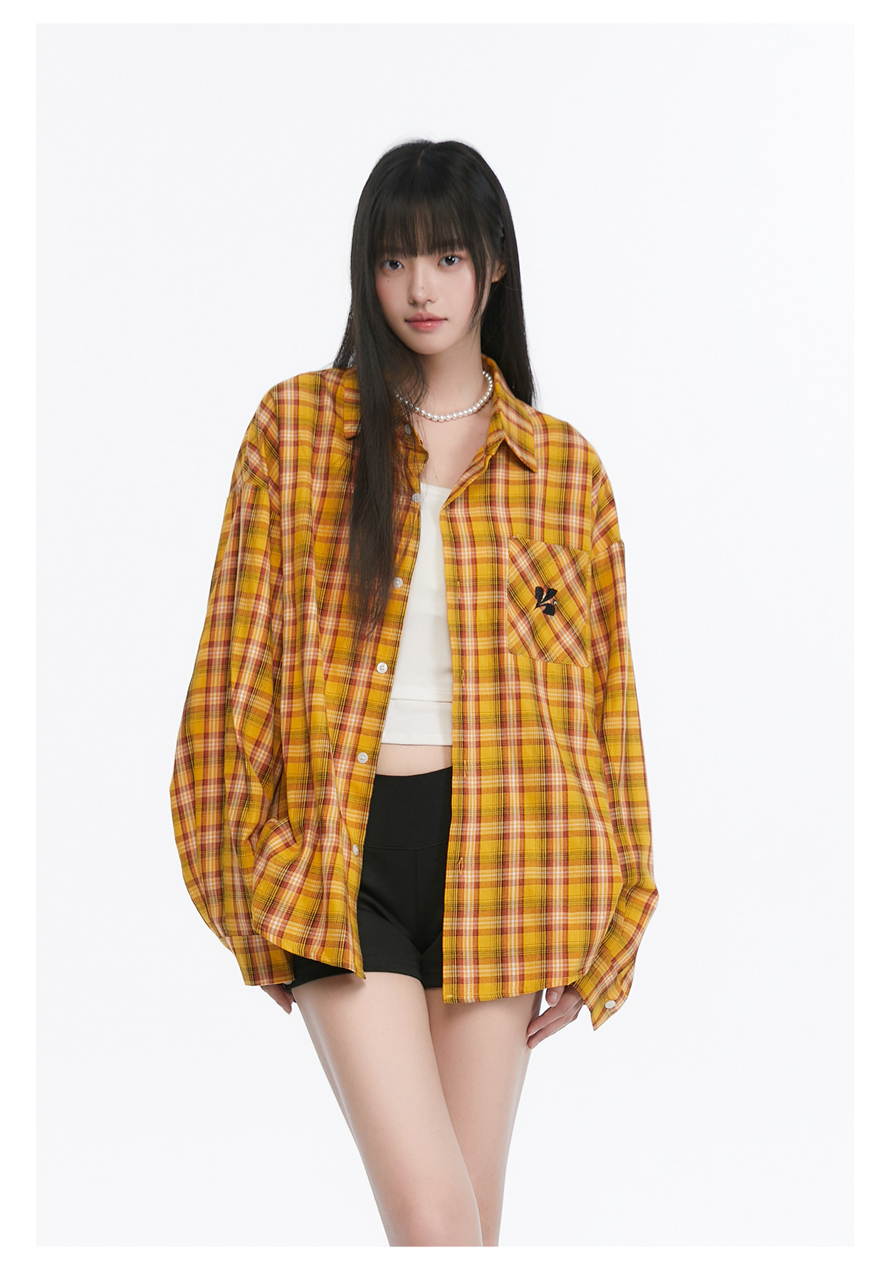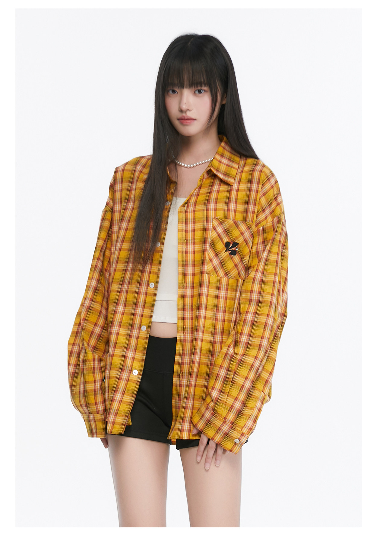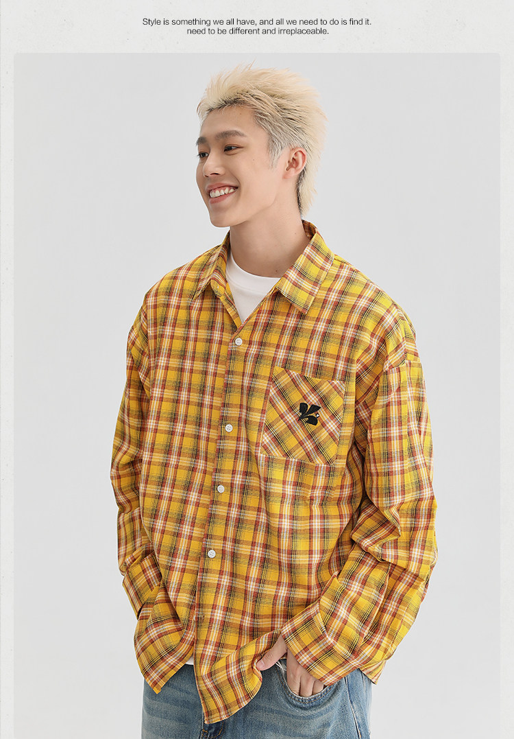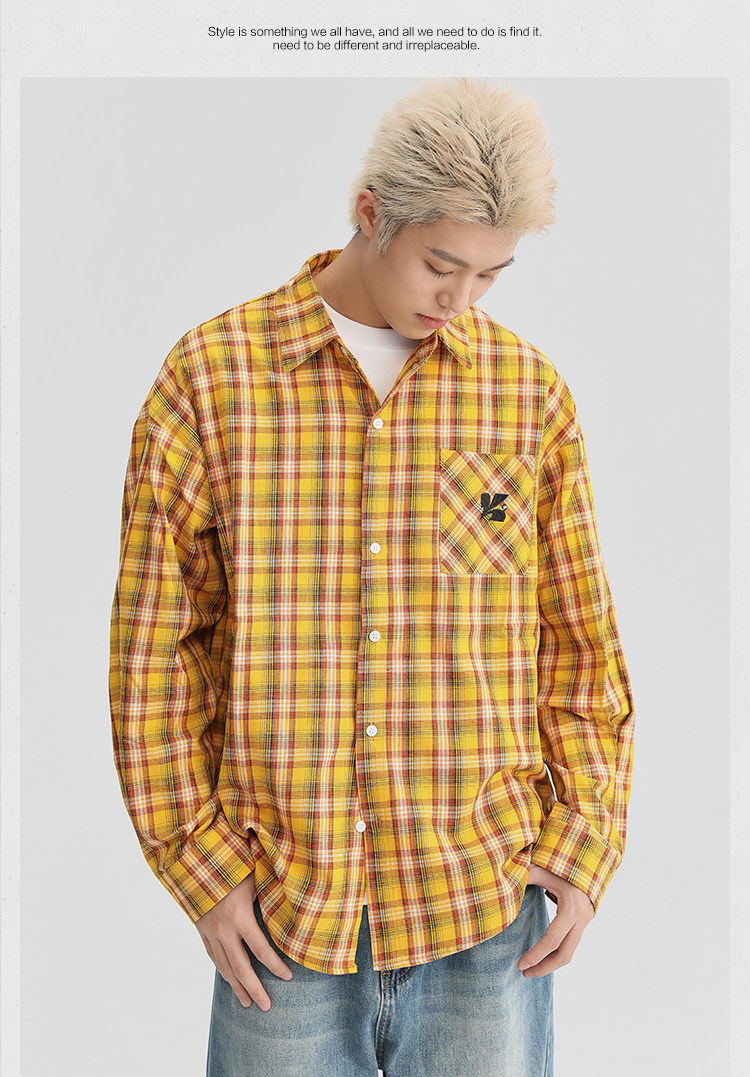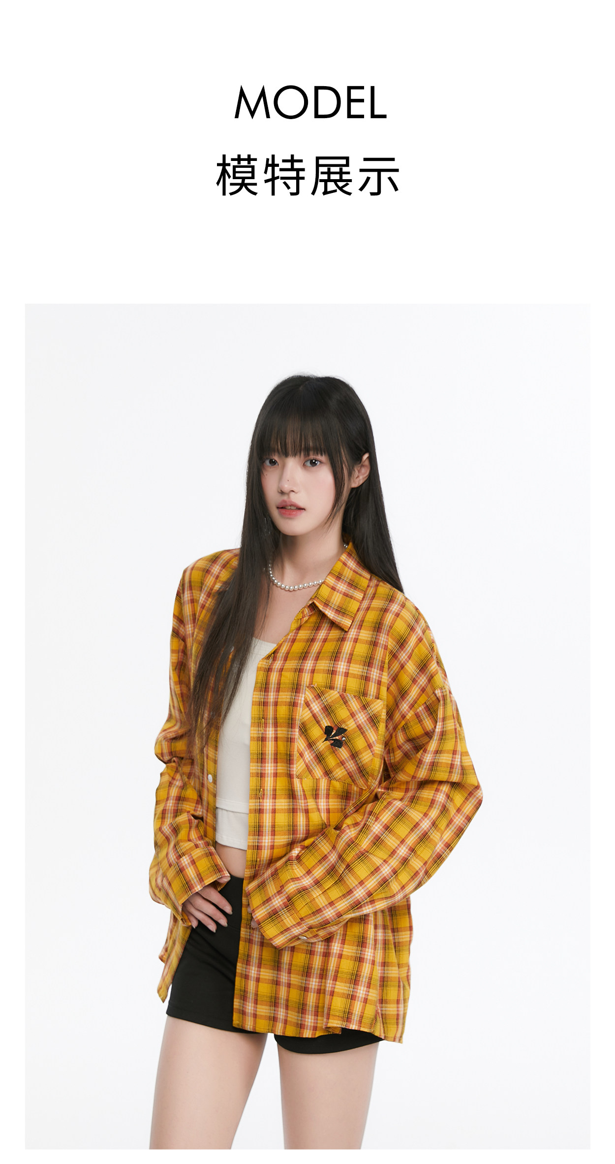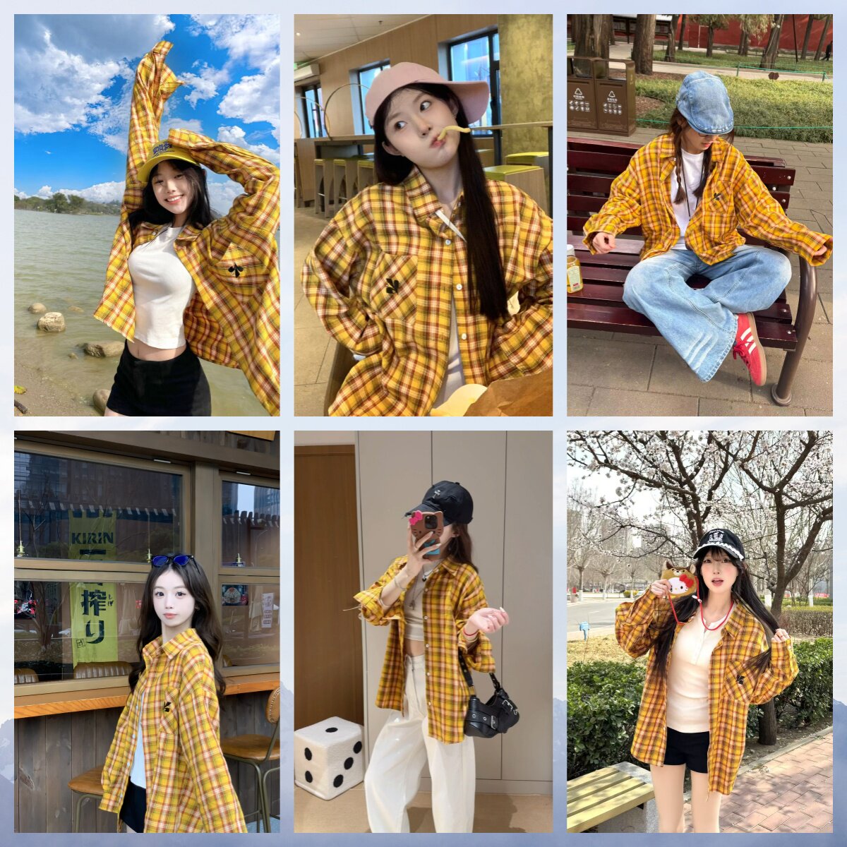 King Prince American Dopamine Yellow Plaid Shirt Unisex Couple Style Cardigan Top Jacket Shirt