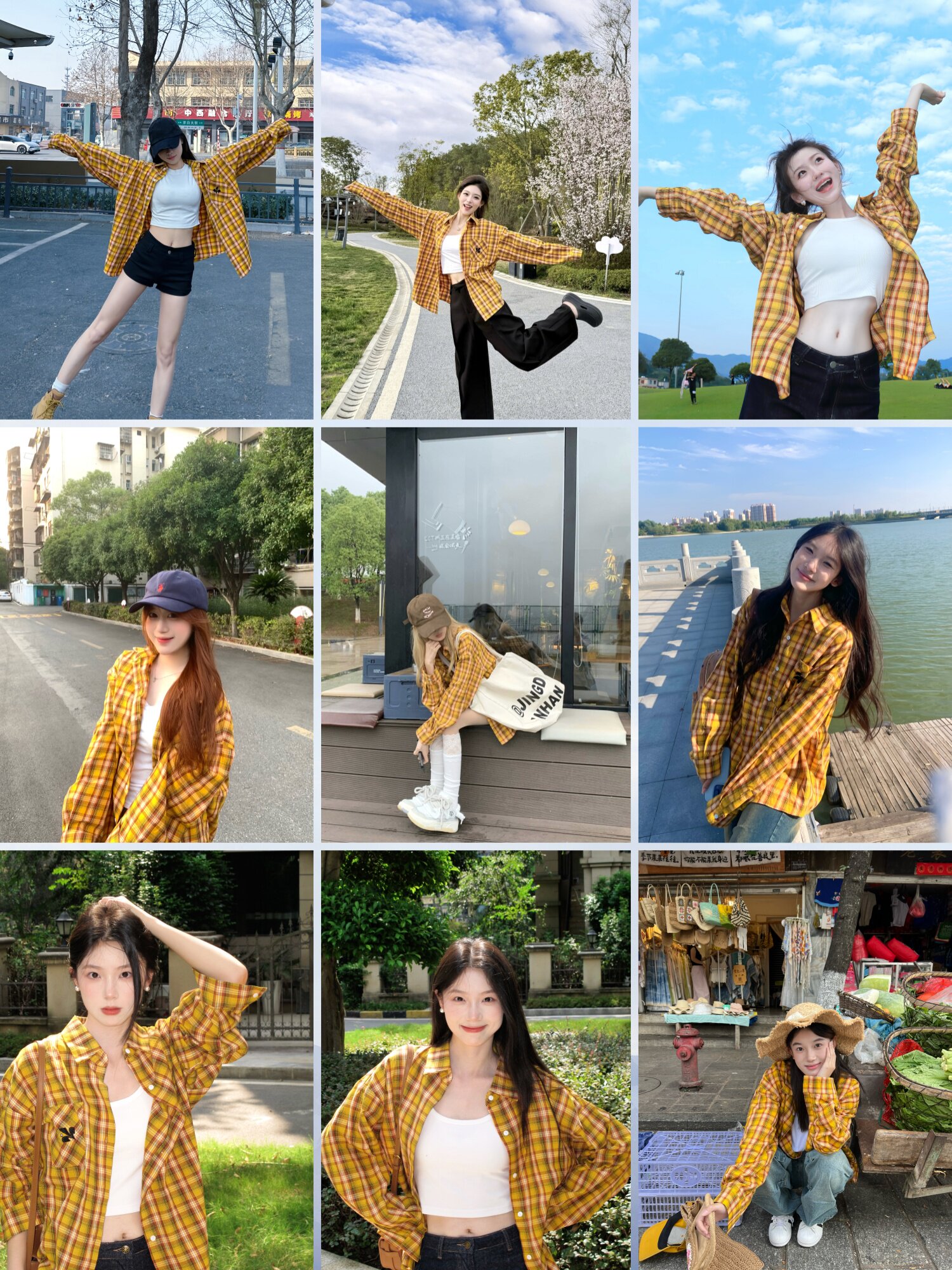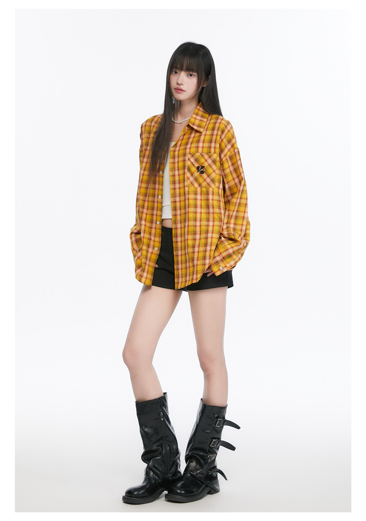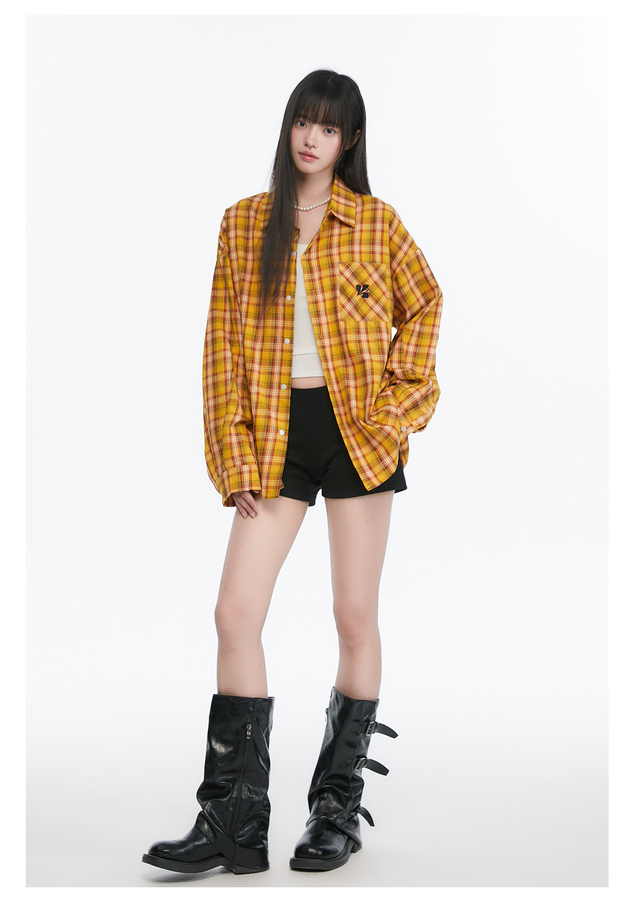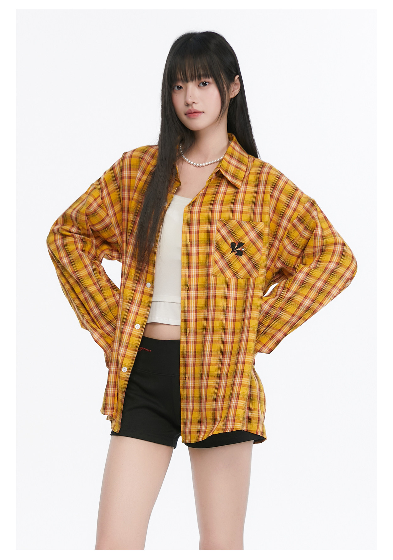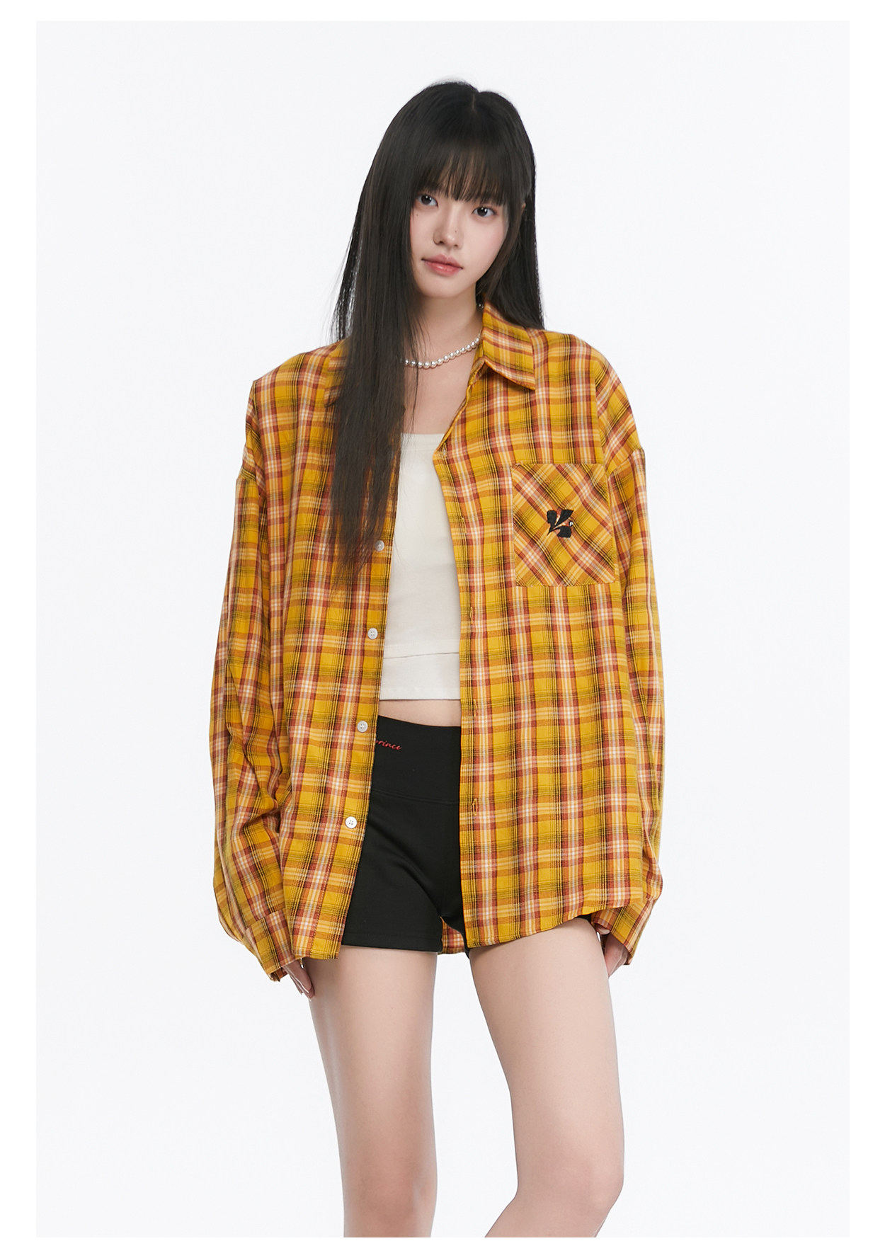King Prince American Dopamine Yellow Plaid Shirt Unisex Couple Style Cardigan Top Jacket Shirt