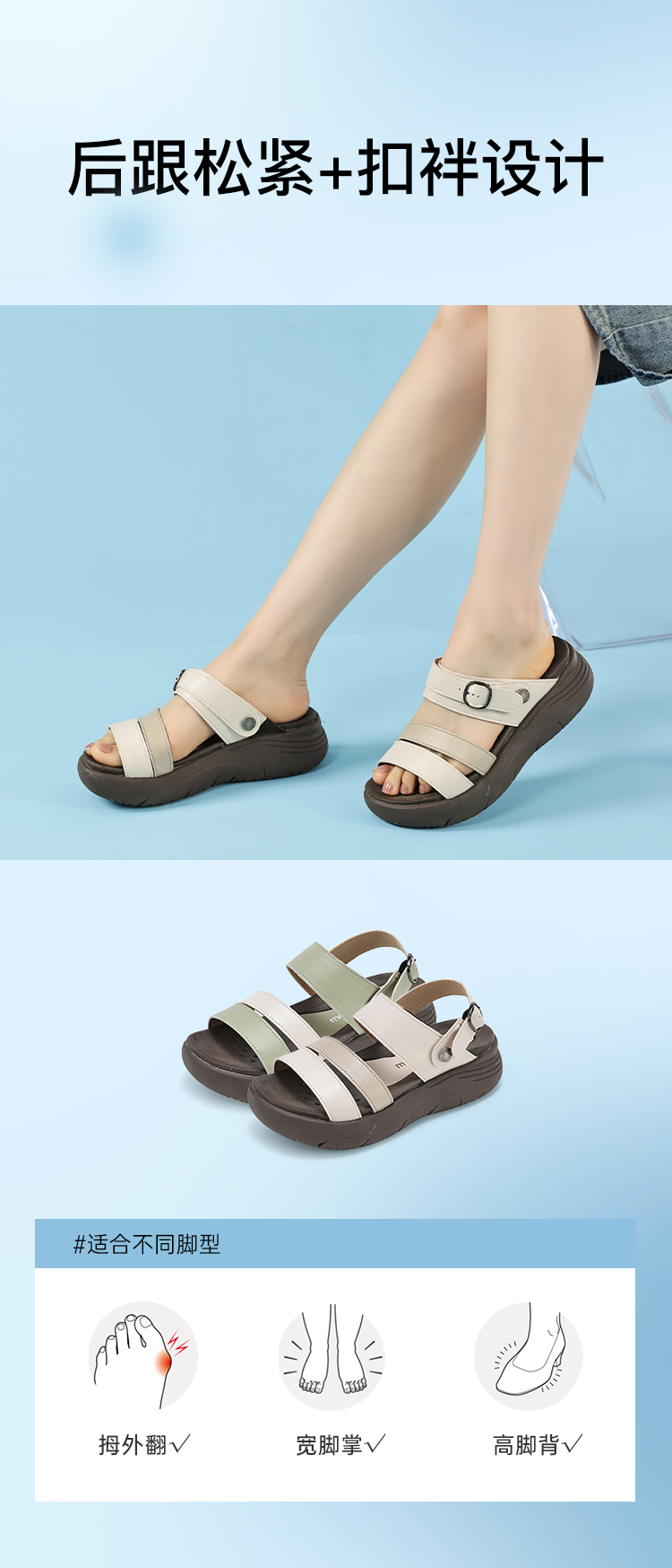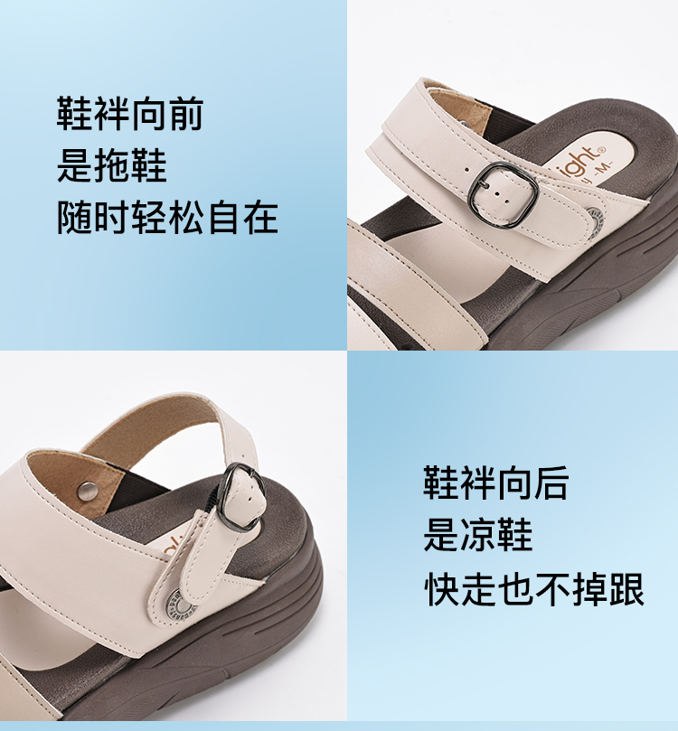 Pansy Japanese Women's Sandals Summer Thick-Soled Lightweight Comfortable Casual Two-Way Sandals and Slippers with Velcro Mom Shoes