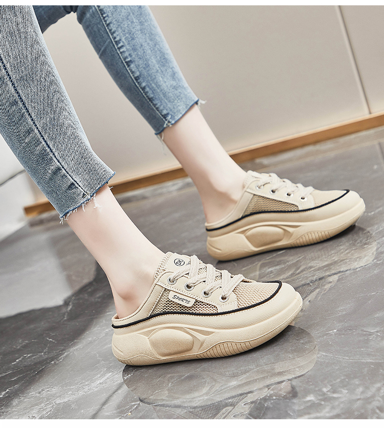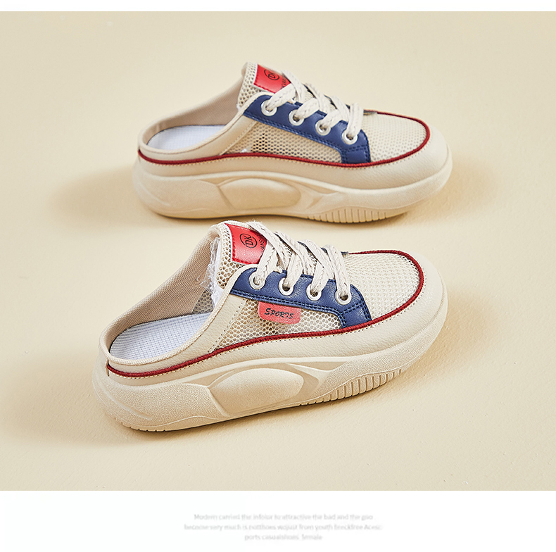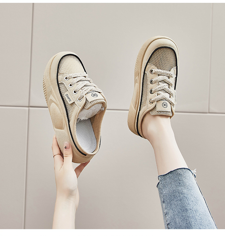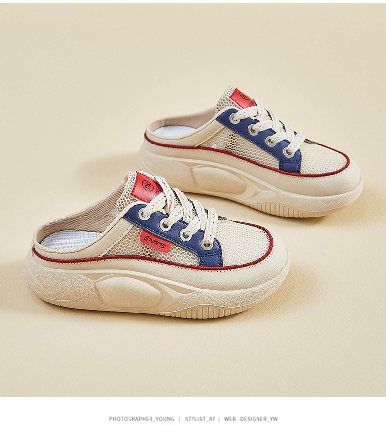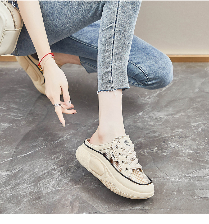 Women's Shoes That Don'T Tire the Feet, Mesh Summer Slippers for Pregnant Women, Closed-Toe Outdoor Wear, Thick-Soled Breathable Half-Slippers Sandals