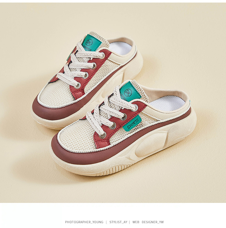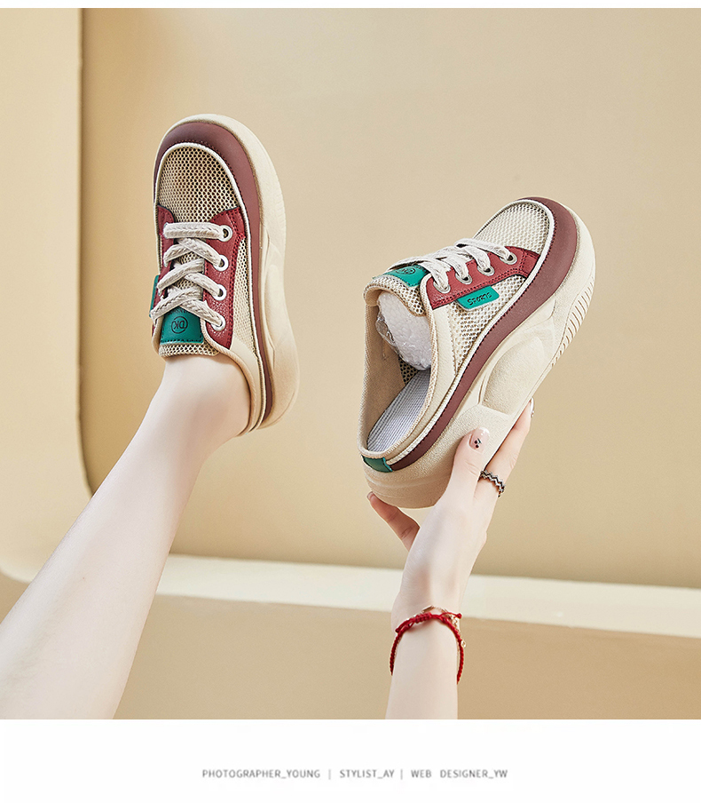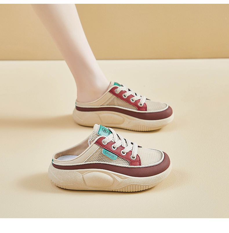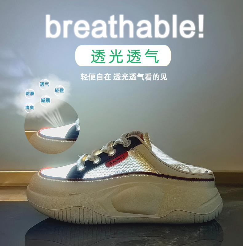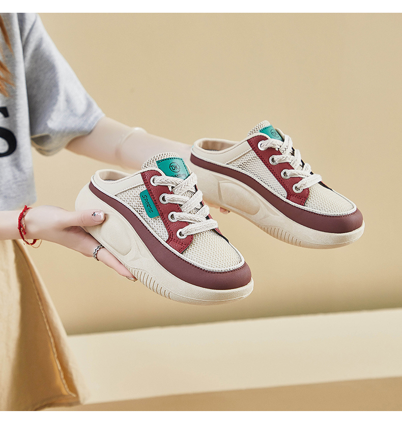 Women's Shoes That Don'T Tire the Feet, Mesh Summer Slippers for Pregnant Women, Closed-Toe Outdoor Wear, Thick-Soled Breathable Half-Slippers Sandals