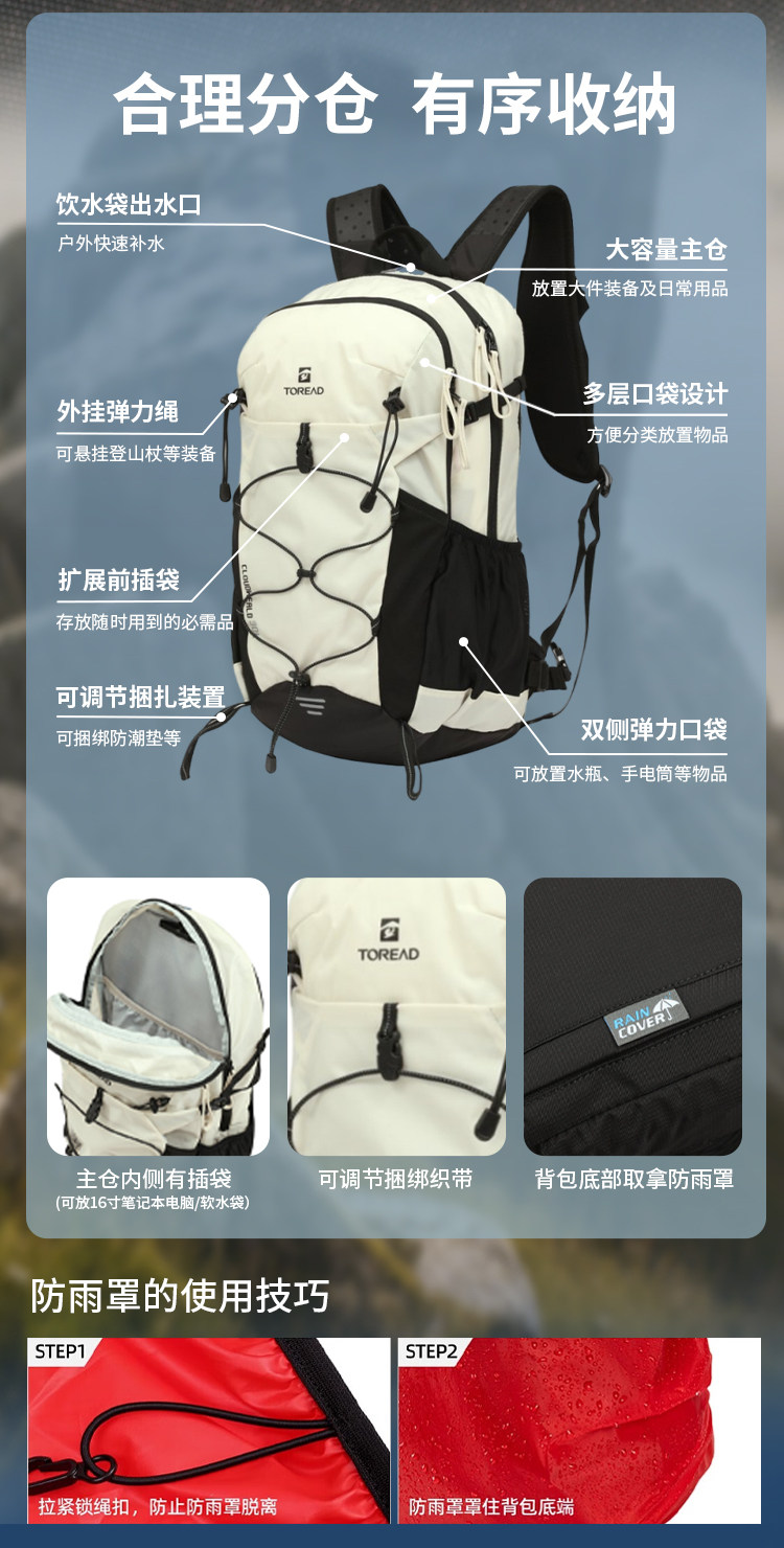 Pathfinder Outdoor Hiking Backpack 30 Liters Lightweight Water-Repellent Camping Mountaineering Travel Commuter Backpack
